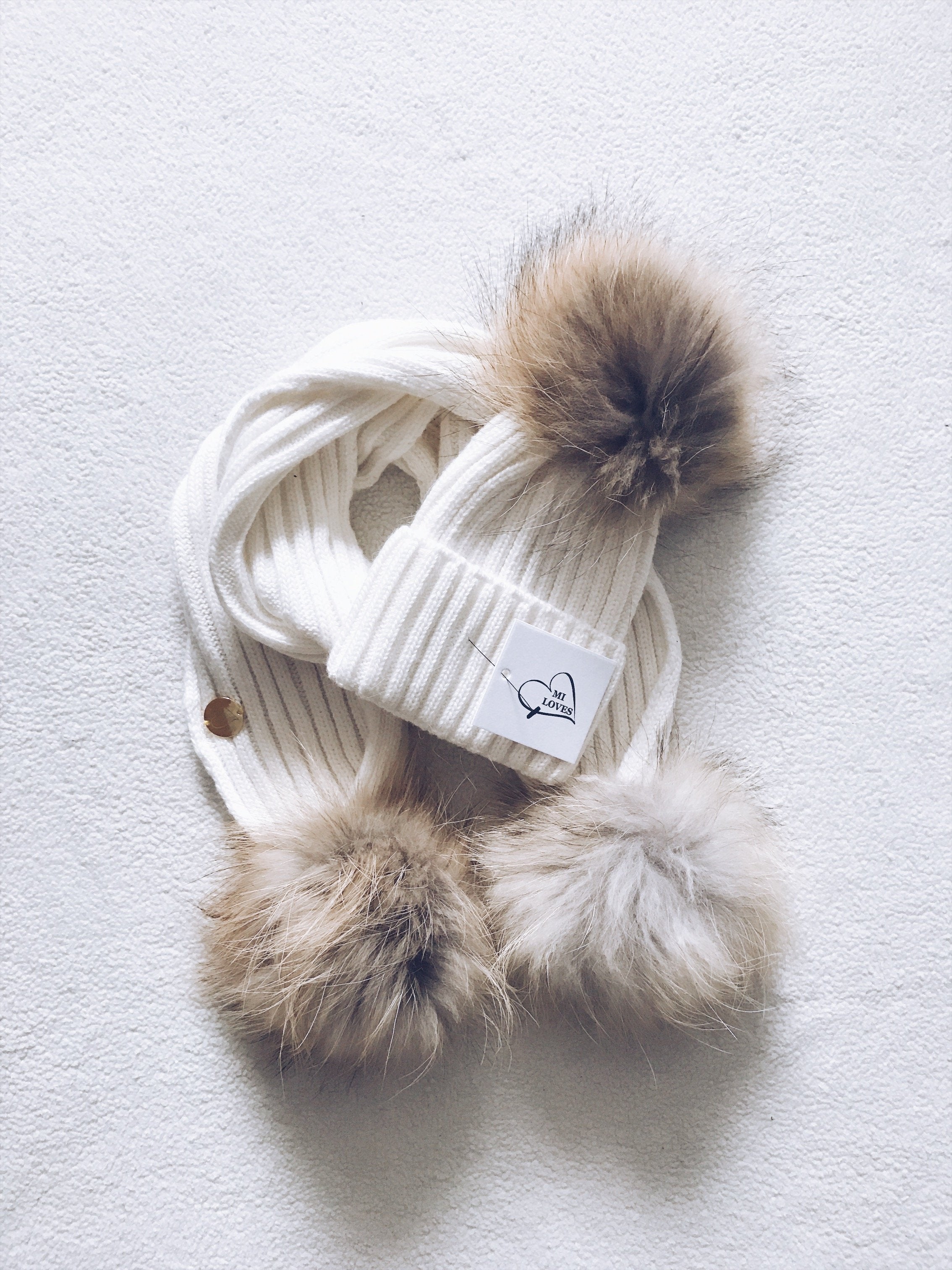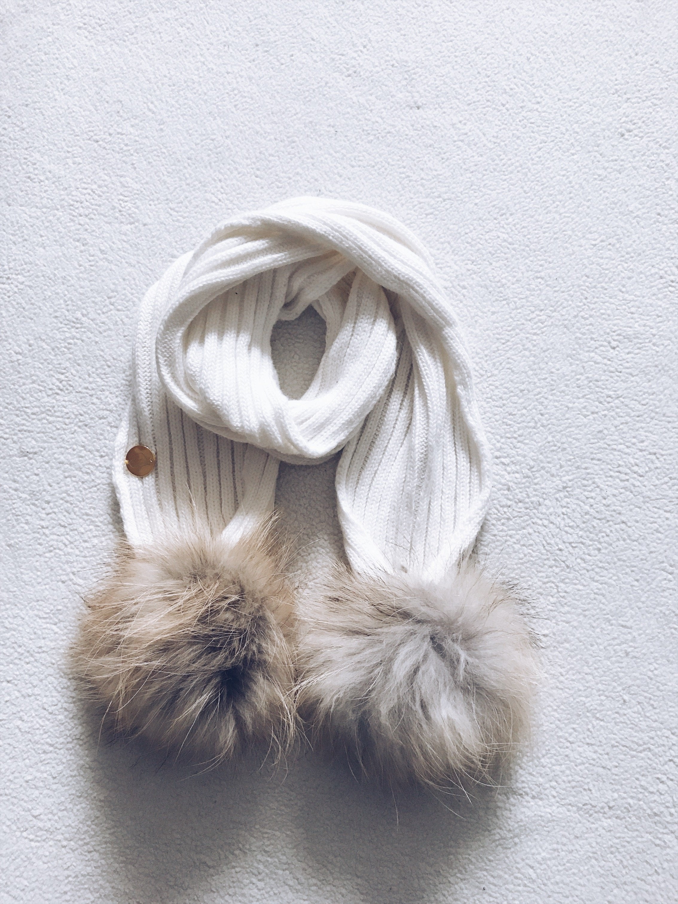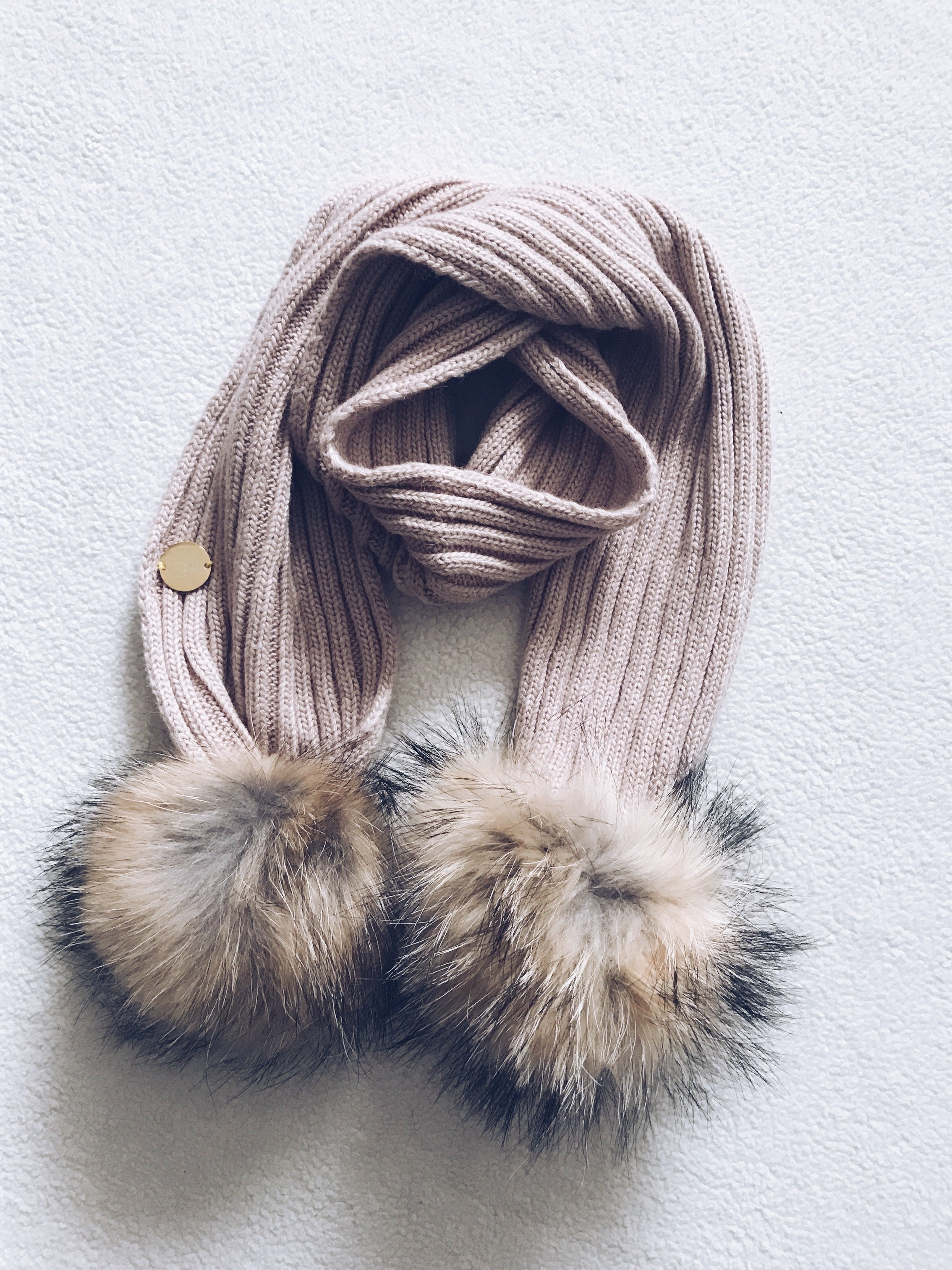 MILOVES SIGNATURE CASHMERE COLLECTION Scarf with 2 Racoon fur pom-poms!!Fits from 0-5 years old kids!!