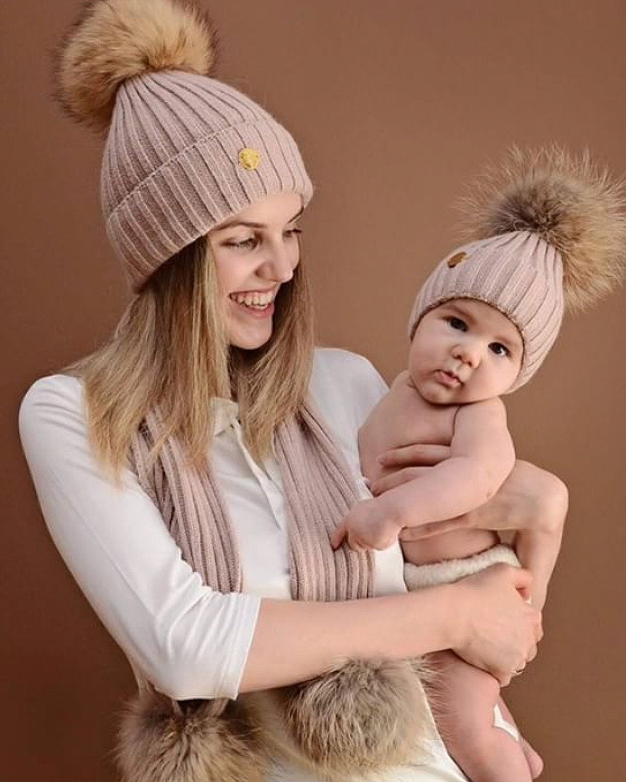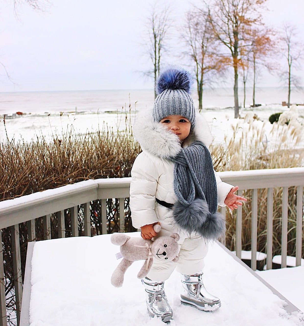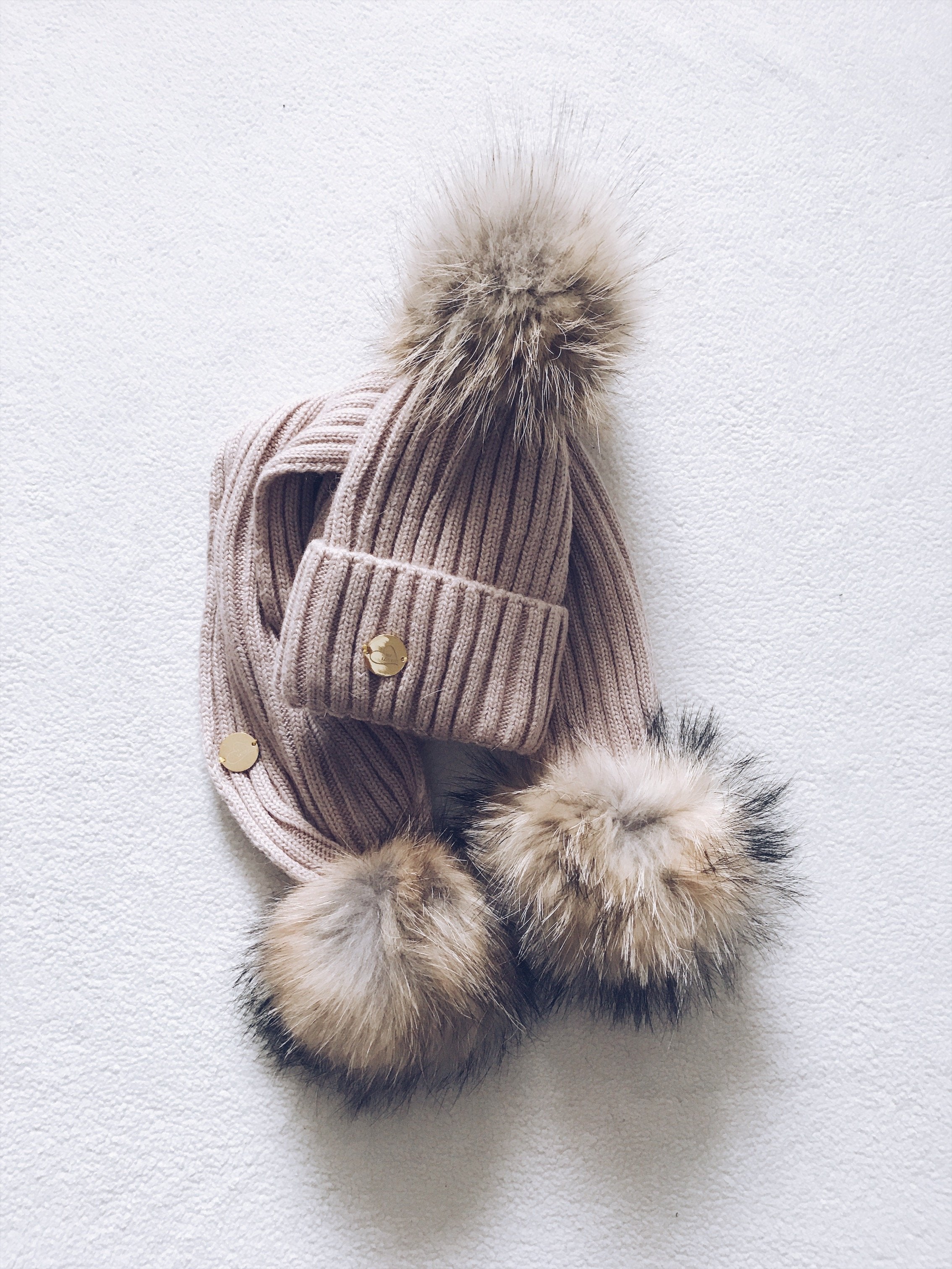 MILOVES SIGNATURE CASHMERE COLLECTION Scarf with 2 Racoon fur pom-poms!!Fits from 0-5 years old kids!!