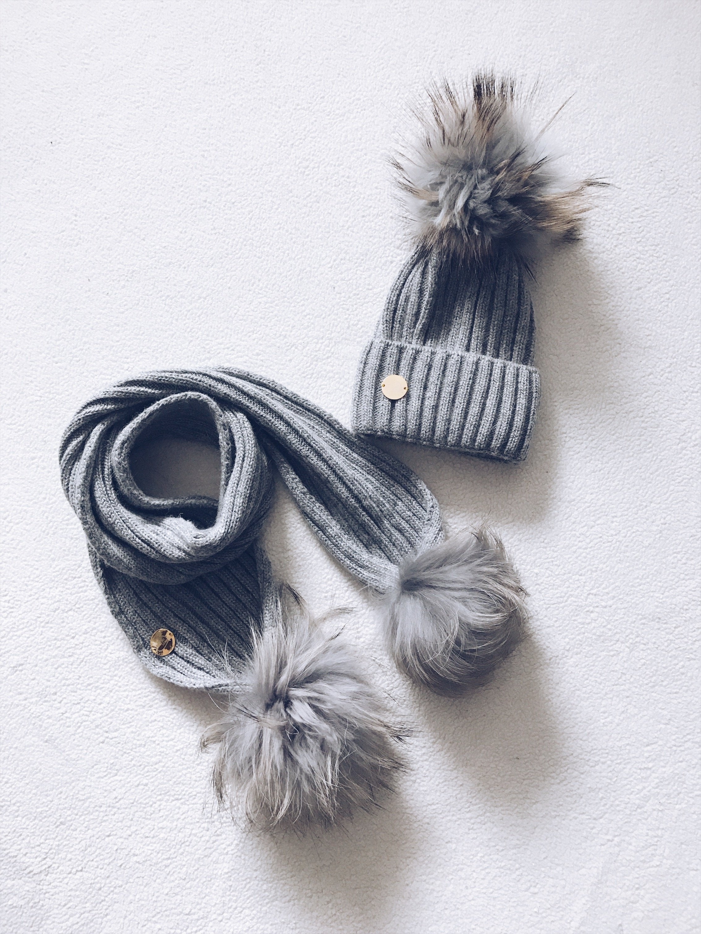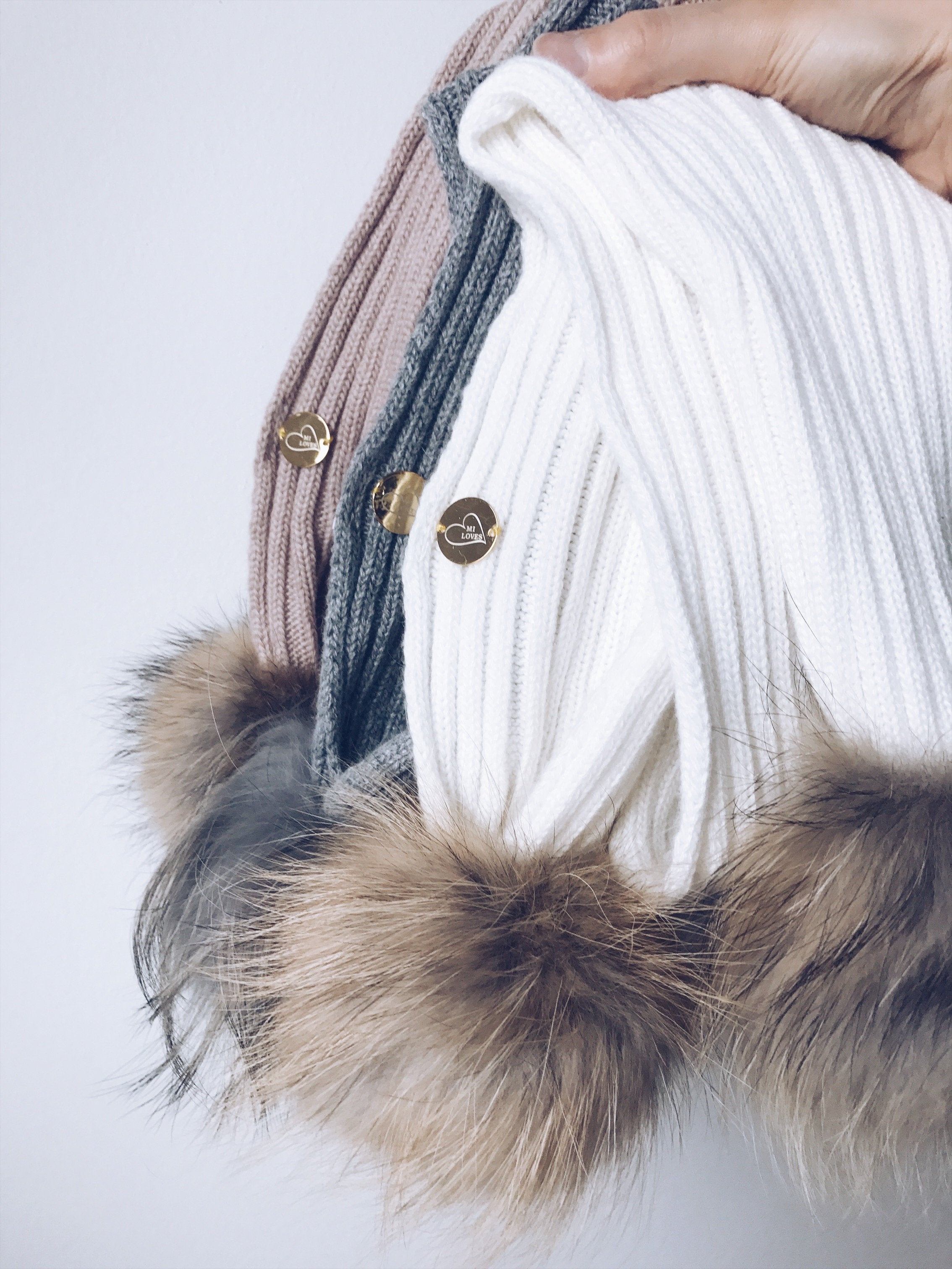 30% Cashmere ,70% Acrylic,Racoon Fur pompoms!!
