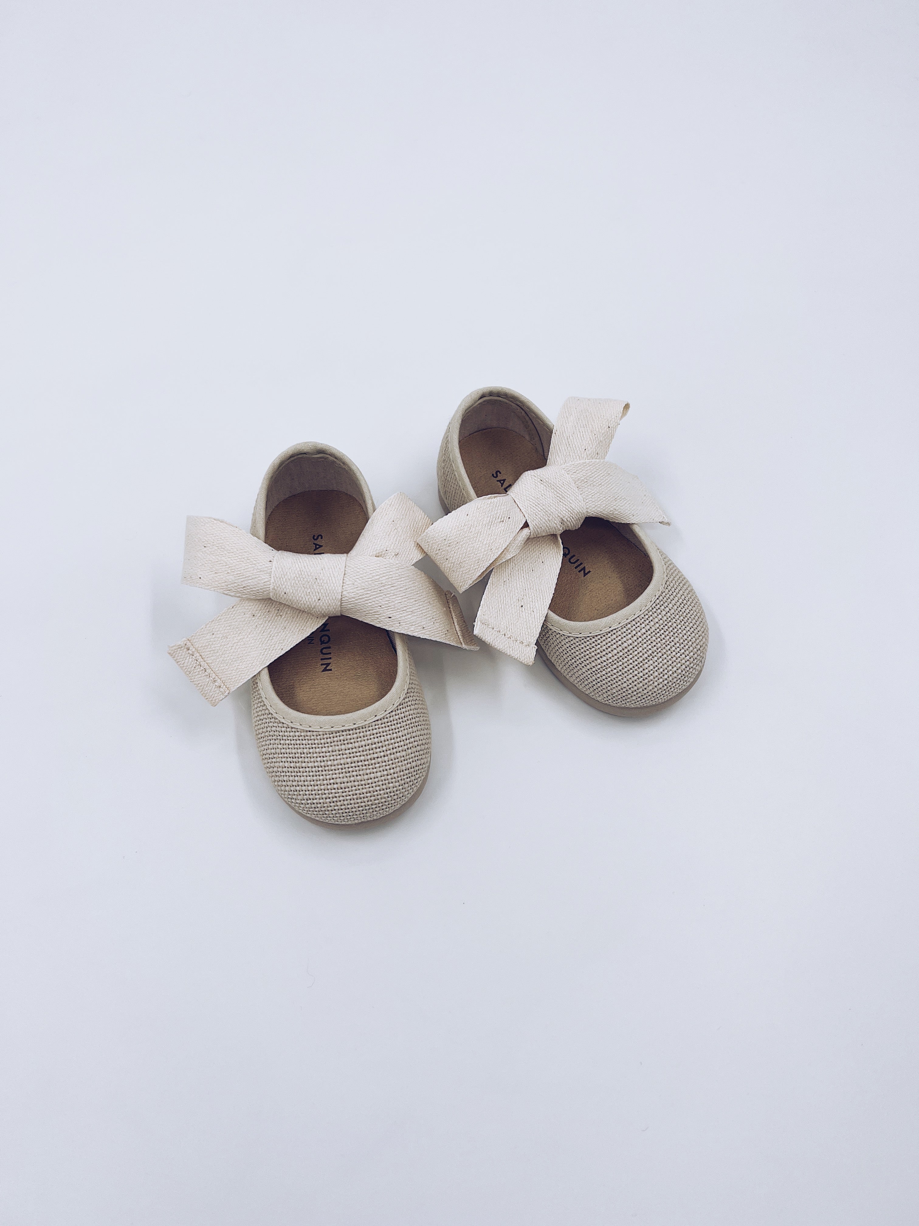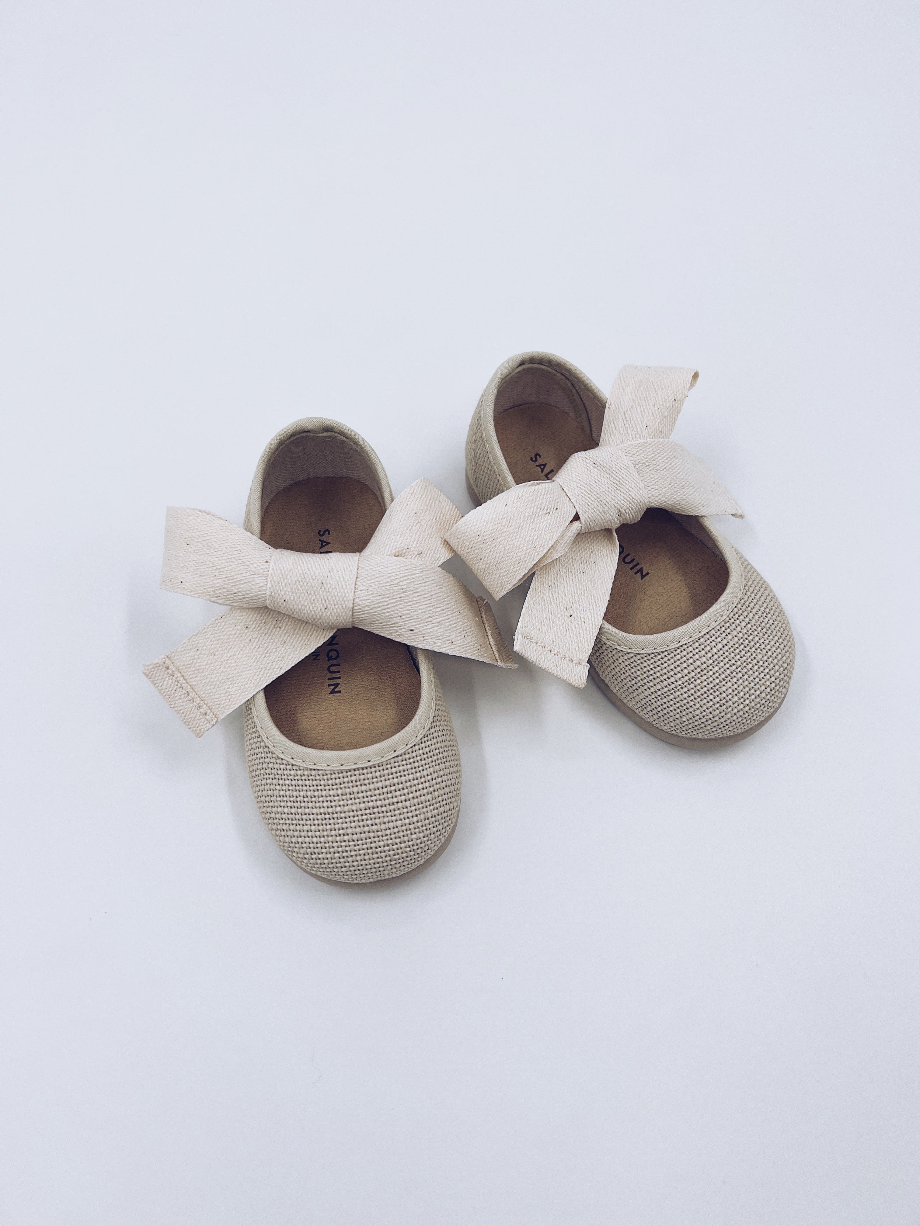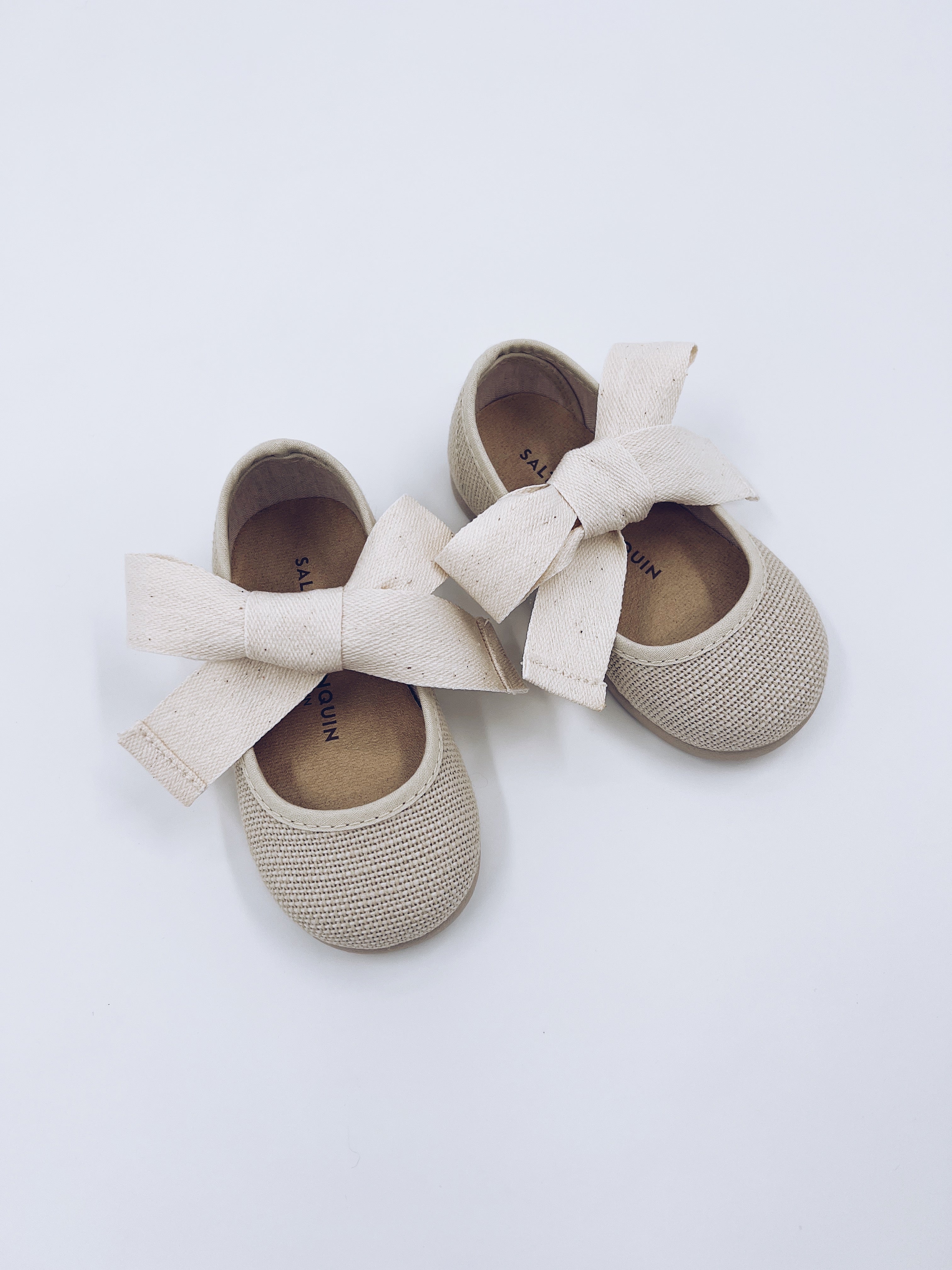 MI LOVES Cream/Ivory Linen pumps with bow details.