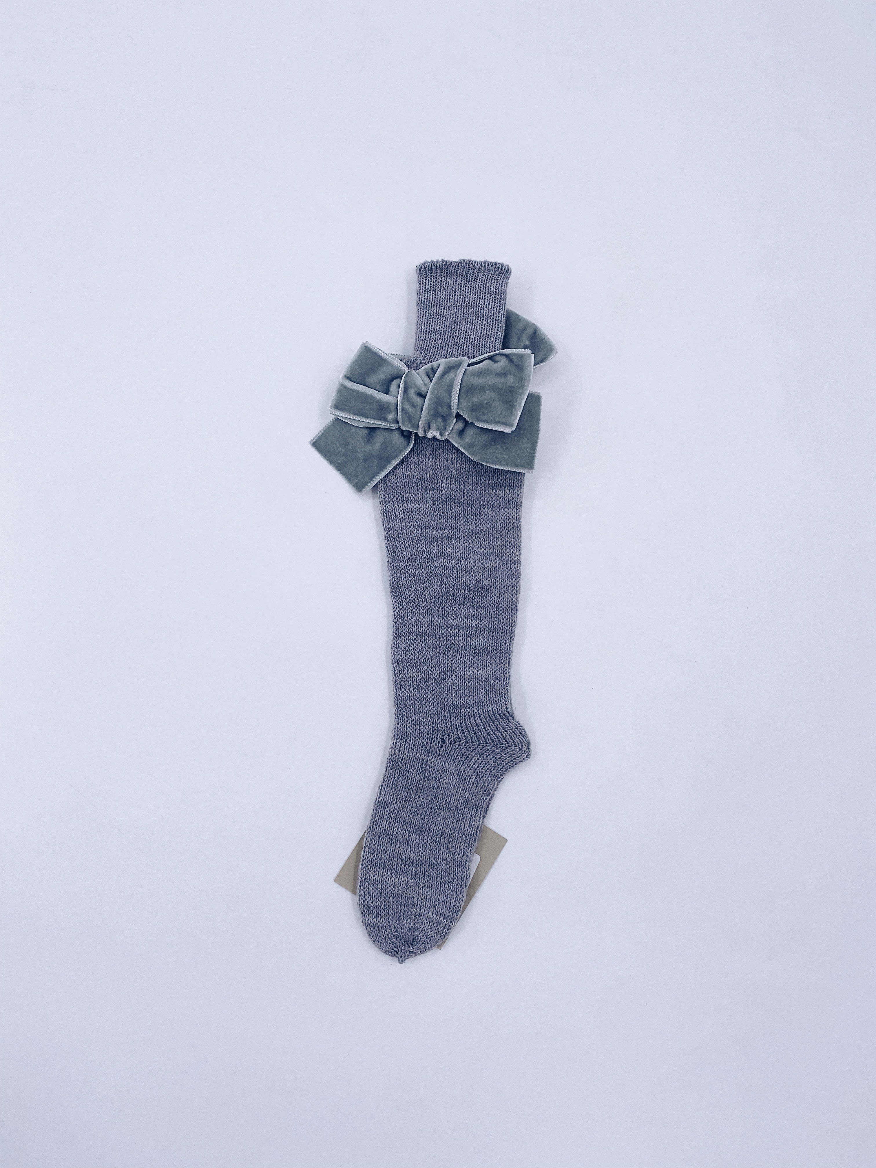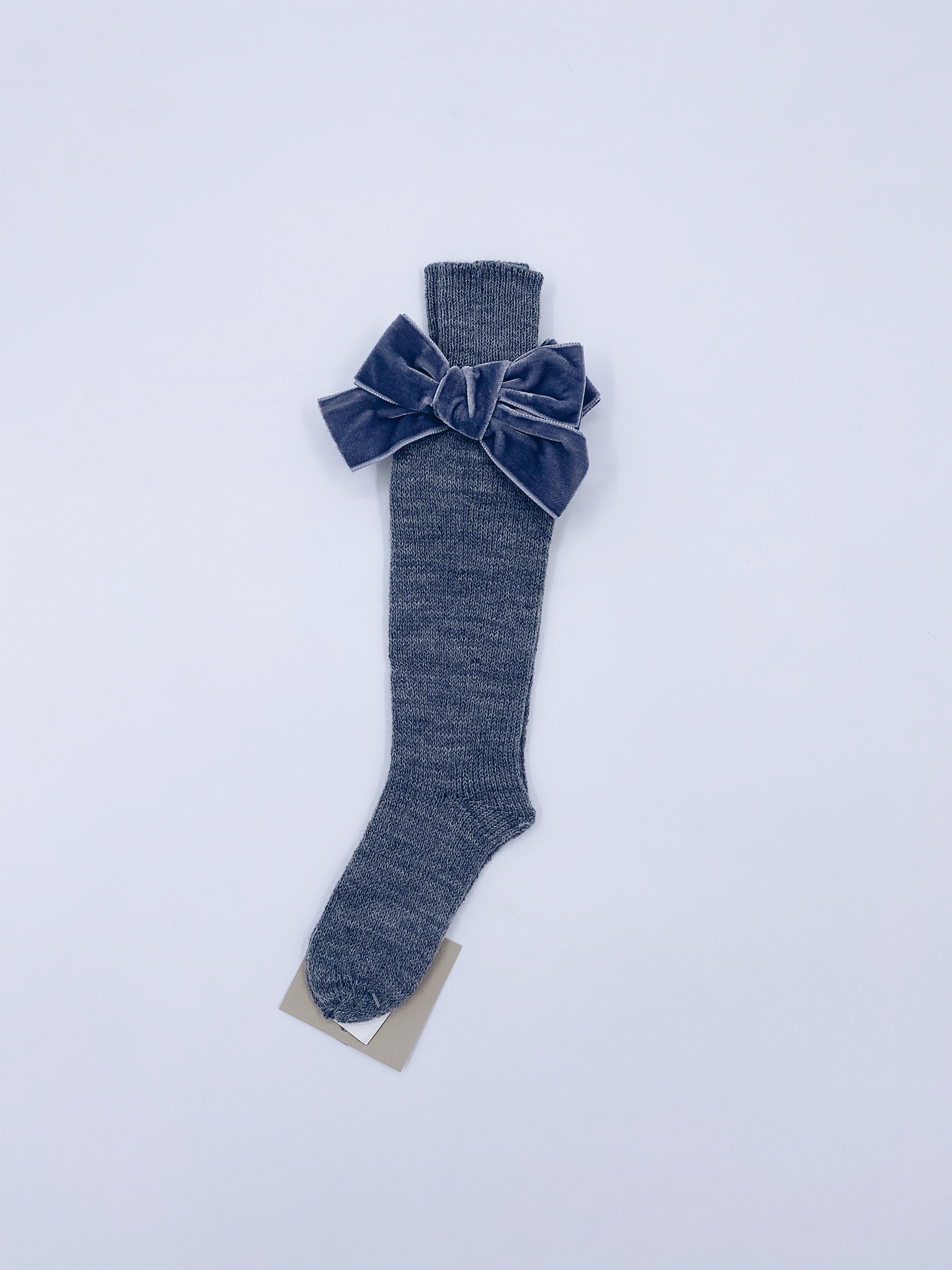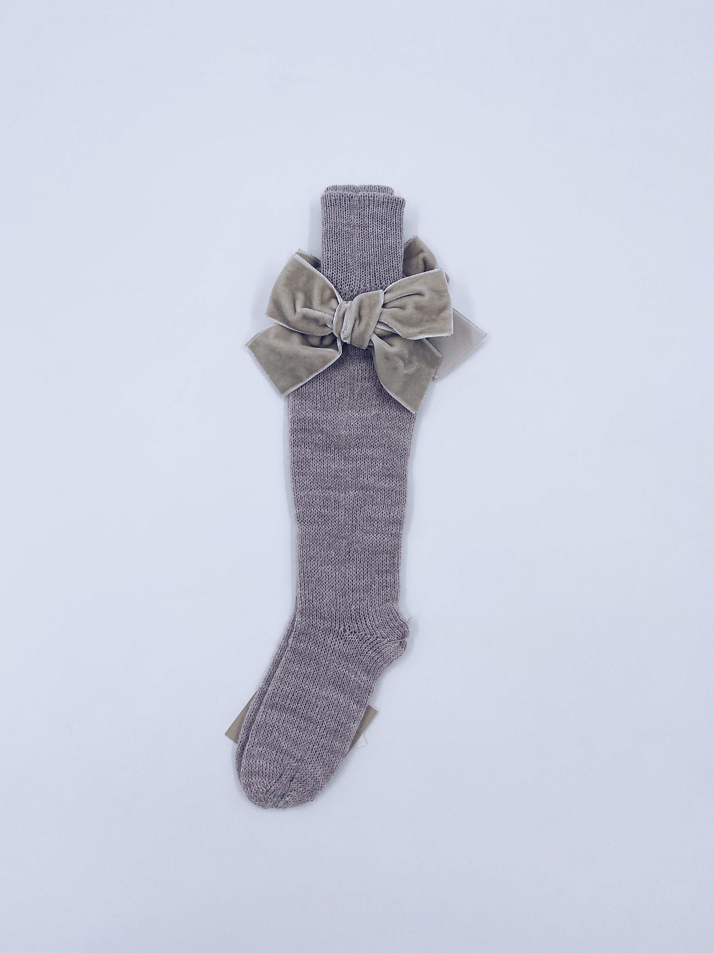 Beautiful high knee Knitted socks with Luxurious velvet bows(7009)