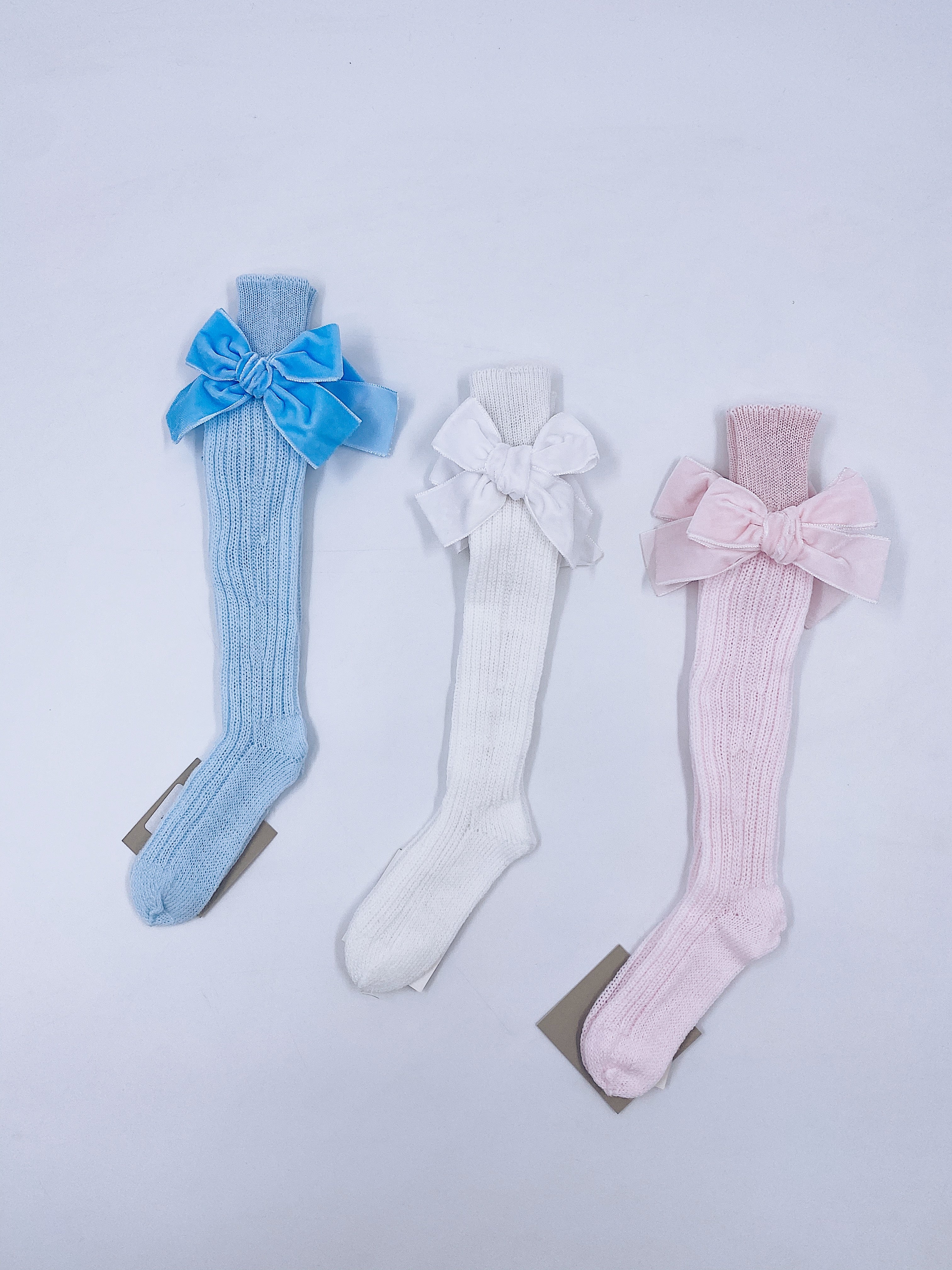 Beautiful high knee Knitted socks with Luxurious velvet bows(7051)
