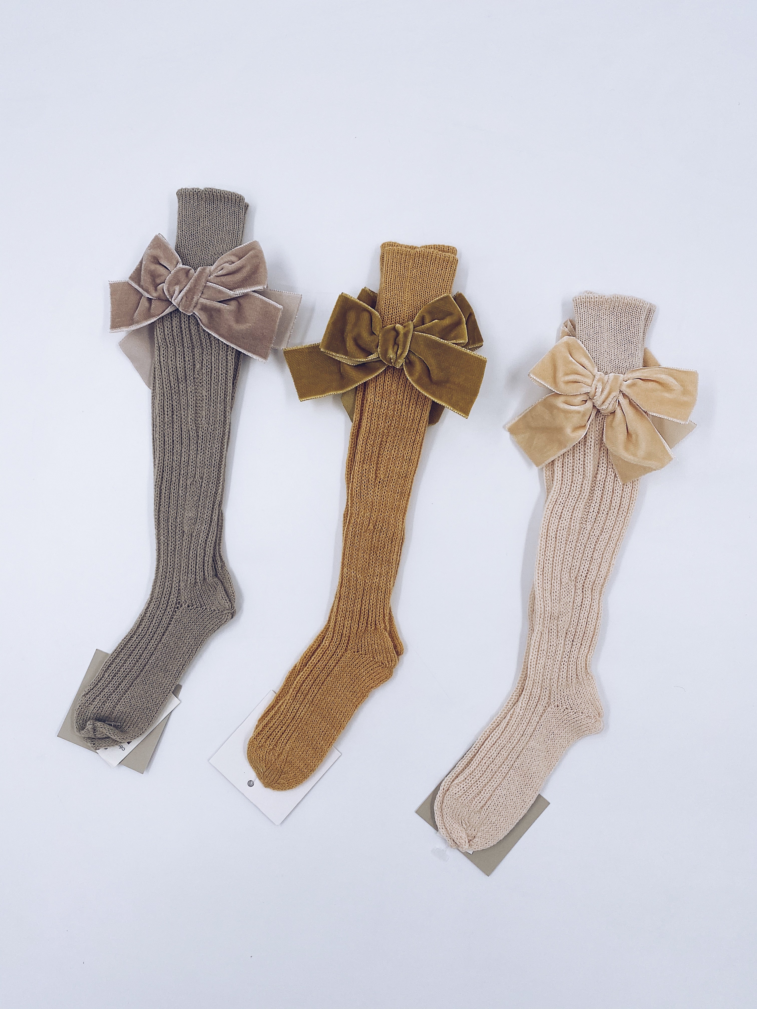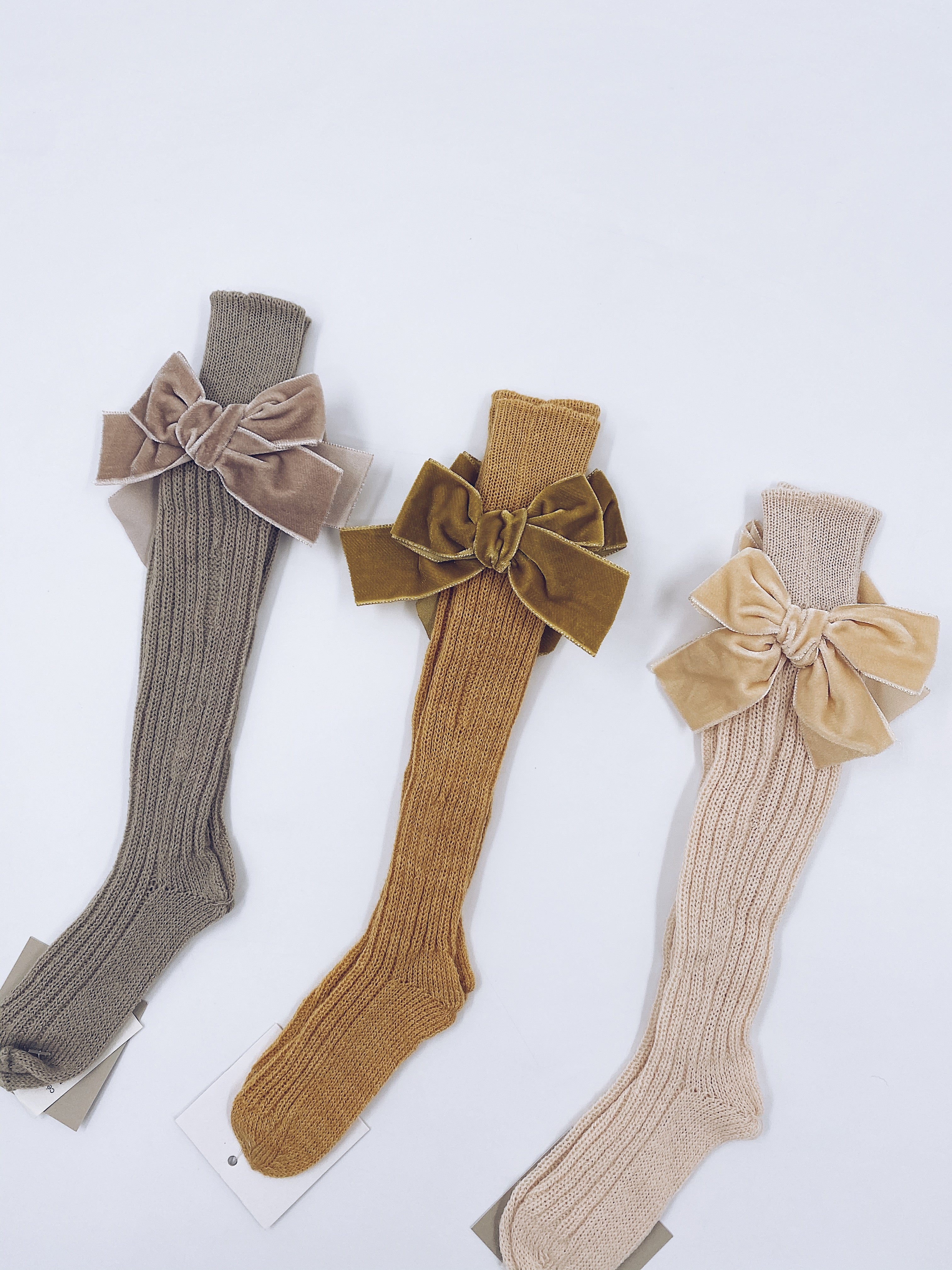 Beautiful high knee Knitted socks with Luxurious velvet bows(7051)