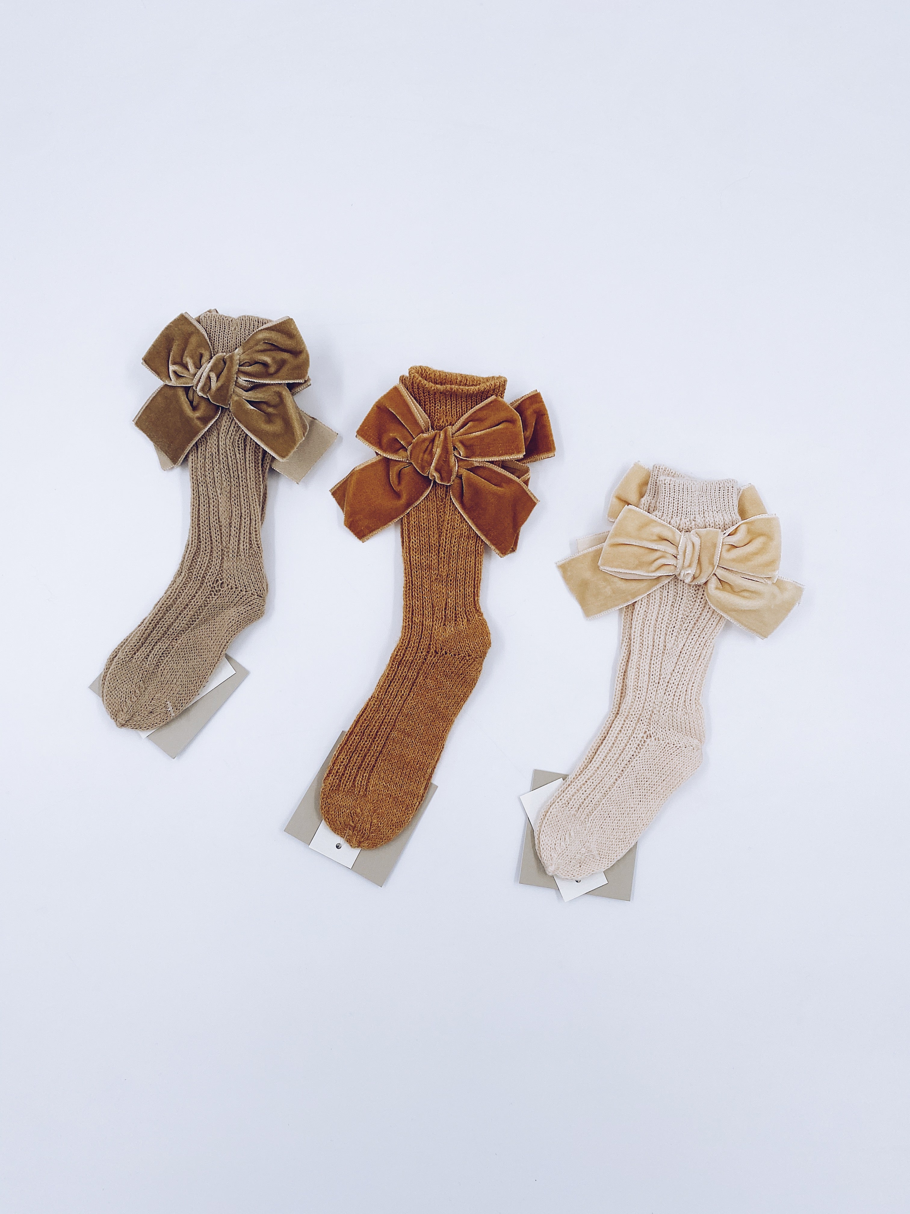 MI LOVES SIGNATURE KNITTED HIGH KNEE SOCKS WITH VELVET BOW