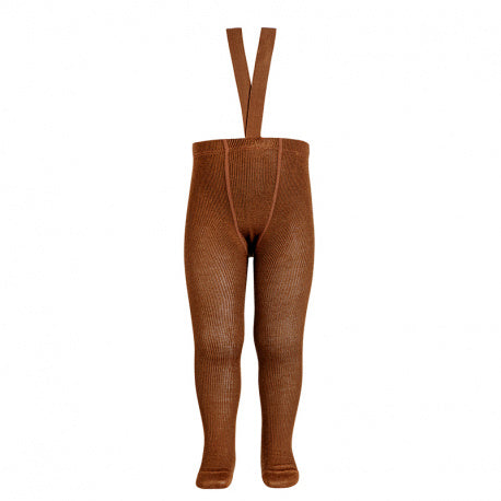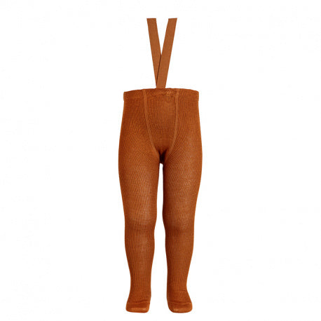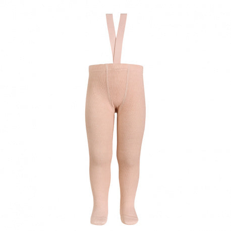 MI LOVES Signature RIB TIGHTS WITH ELASTIC SUSPENDERS PALE ROSE(544)