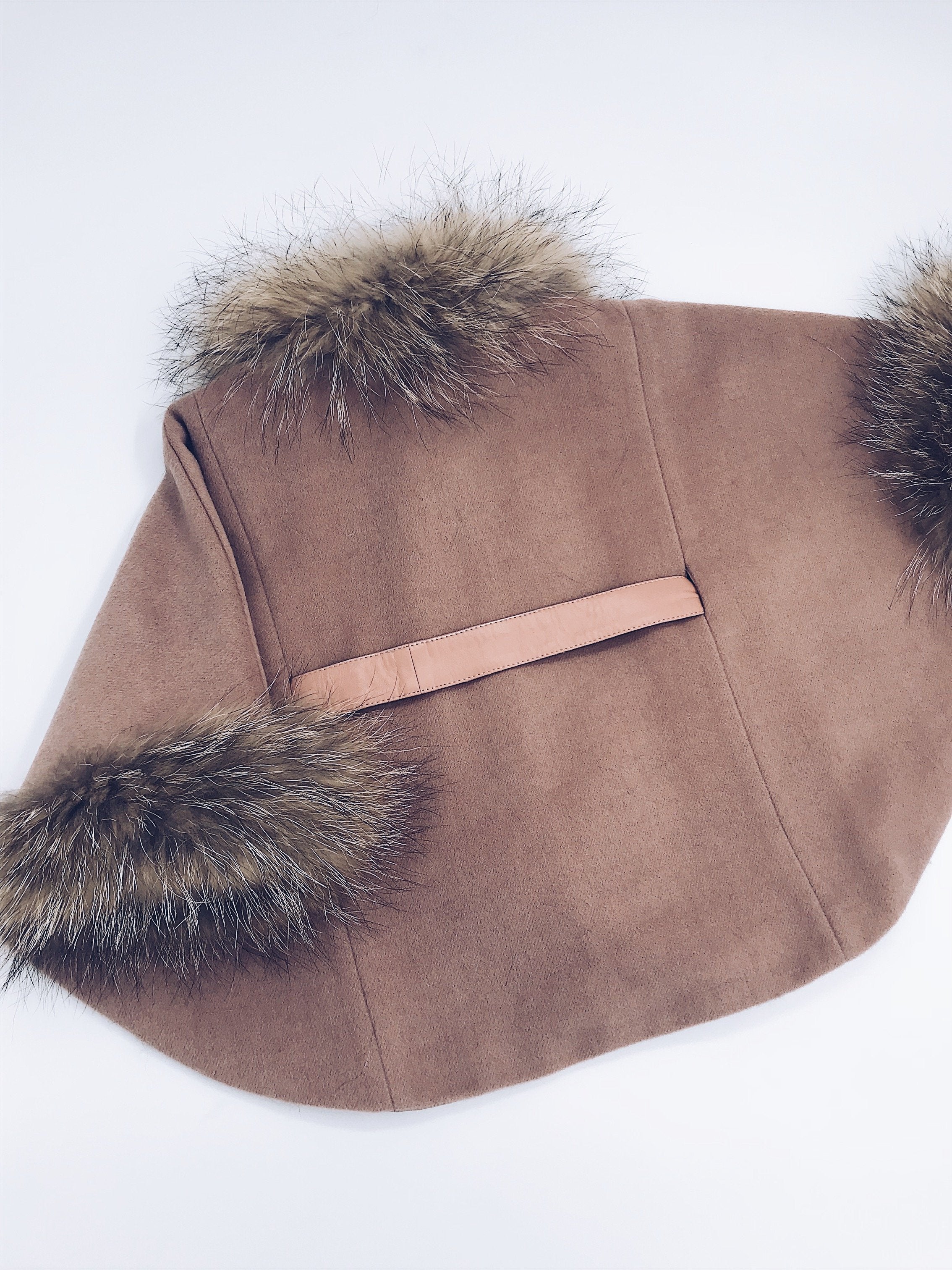 PRE-Order (Delivery in 2-3 weeks)ADULT MILOVES SIGNATURE RACOON fur trim/Cuffs poncho