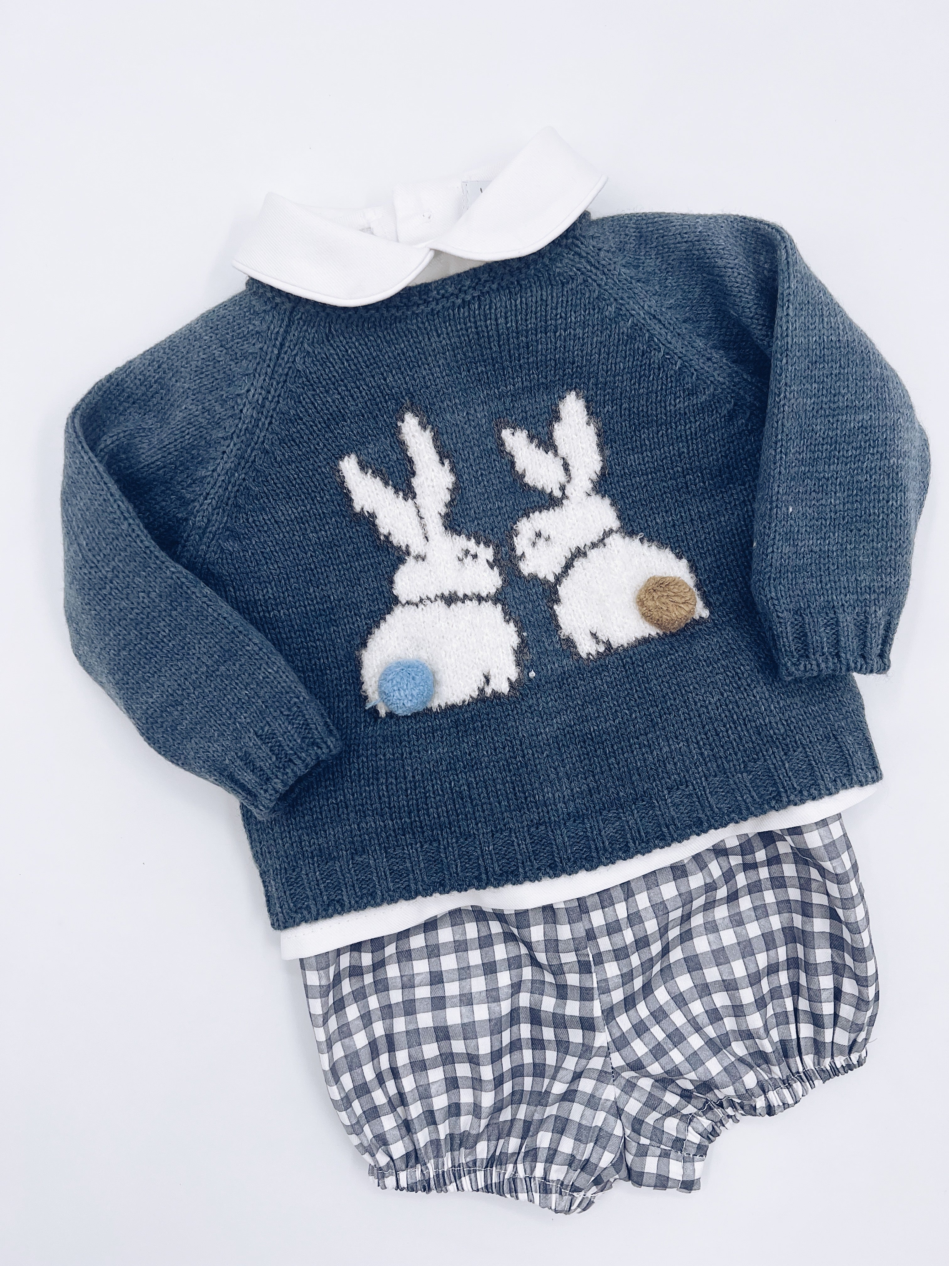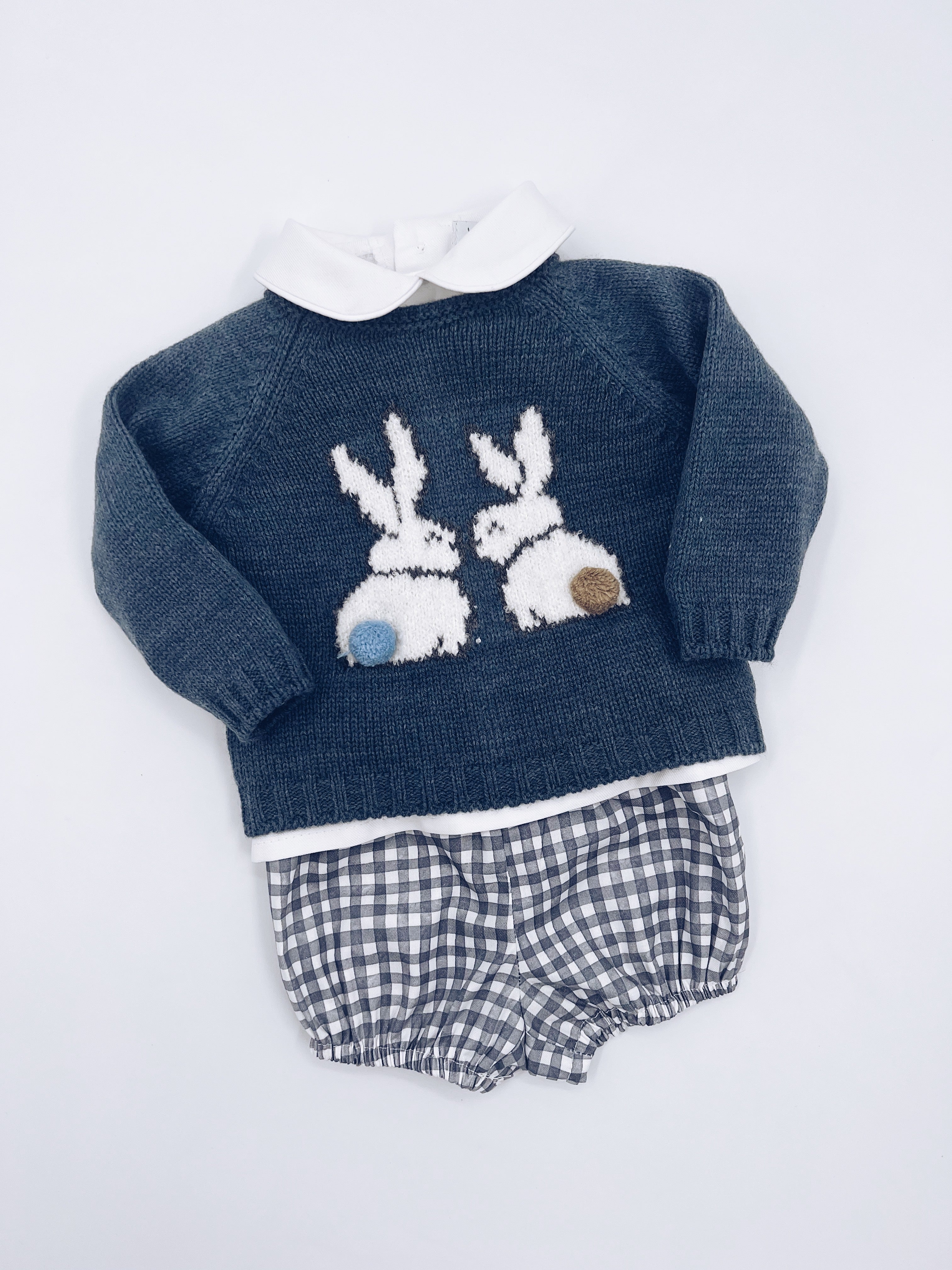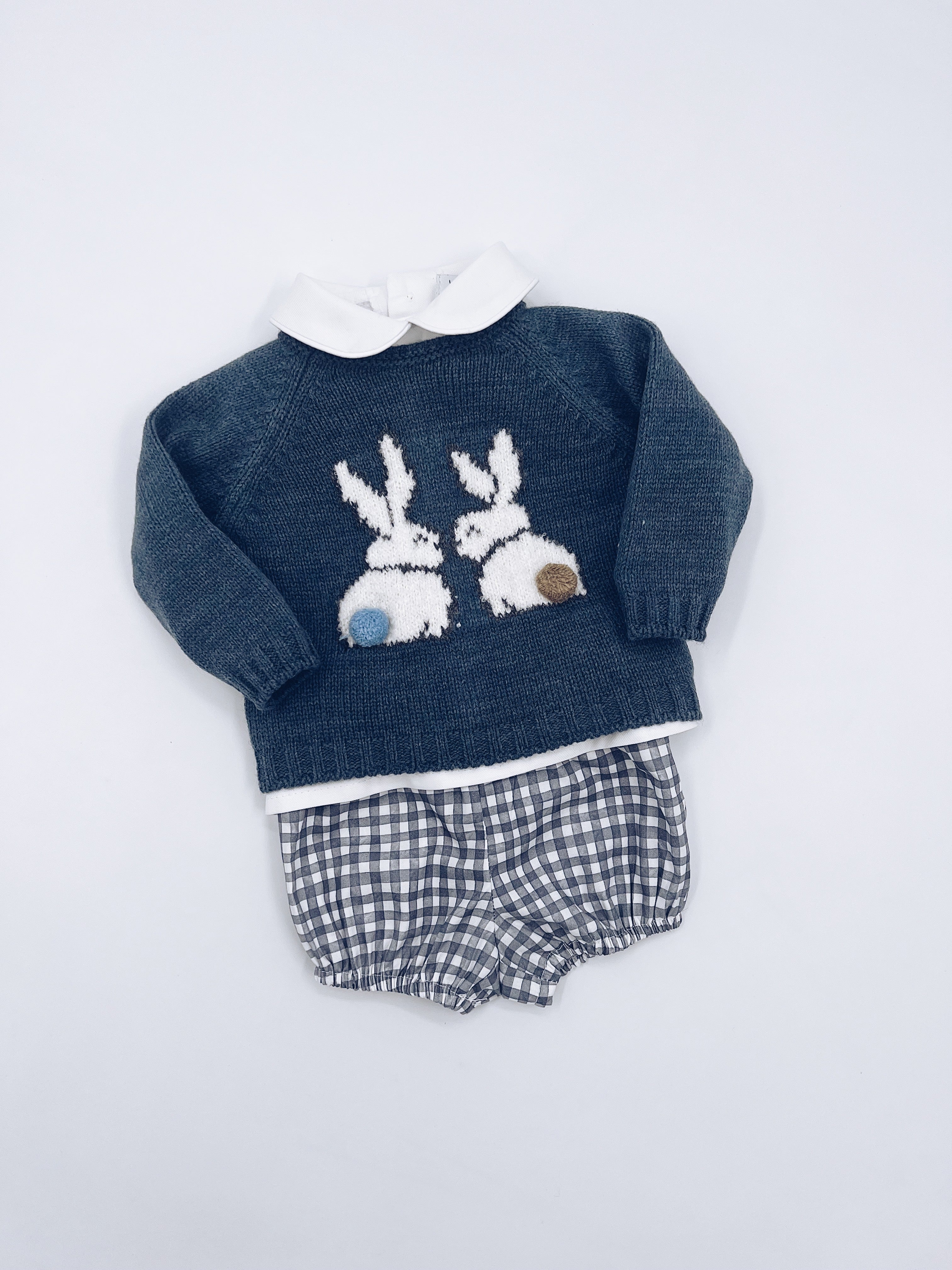 Beautiful Deep blue Baby Boy Knitted jumper/Shirt/Shorts 3 piece set with lovely Peter Pan Collar