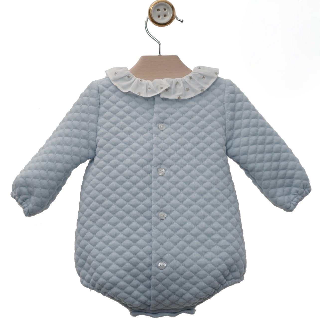 Beautiful Baby blue Romper with pompom and star details on the collar.