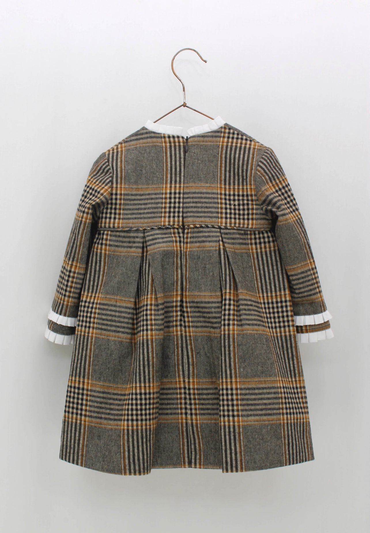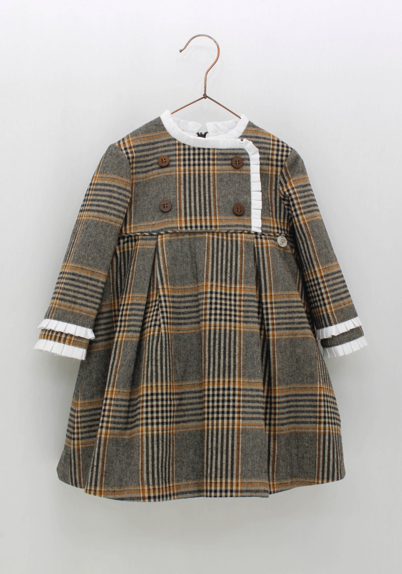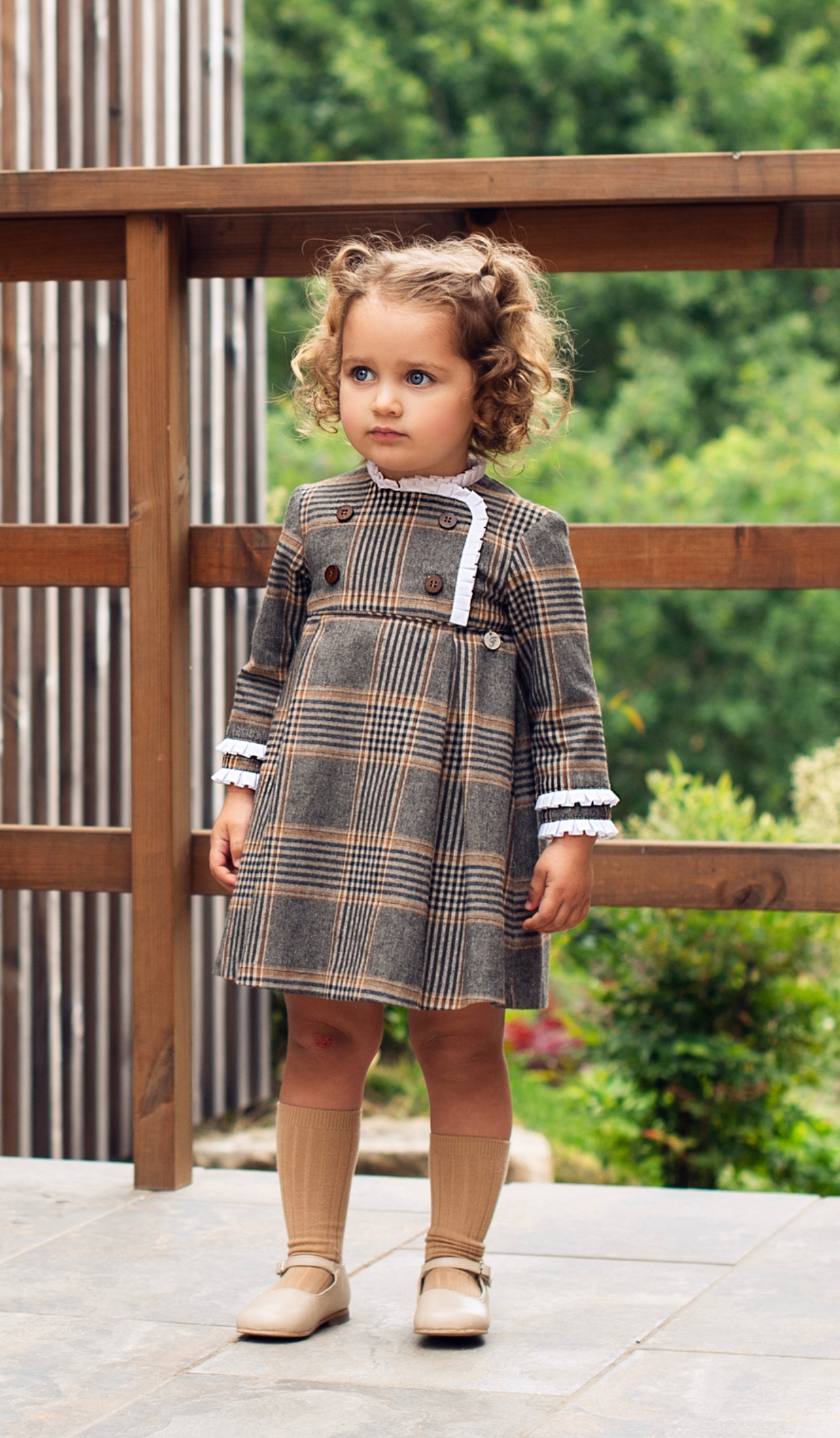 Beautiful Classic Brown Checked Dress with Beautiful white frill details.