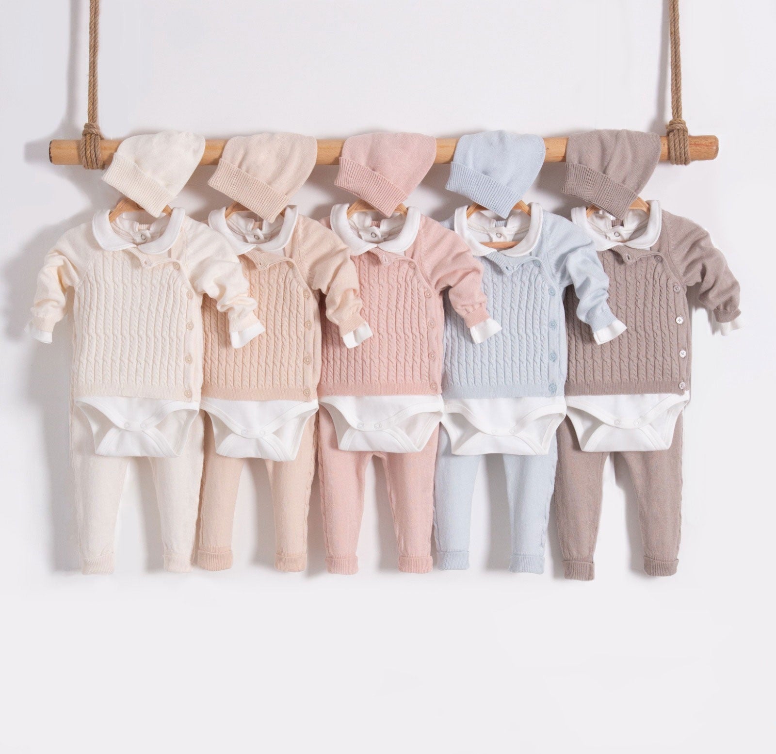 Beautiful Cream Knitted Baby 4 piece set(Jumper/Trousers/Hat/Bodysuit)
