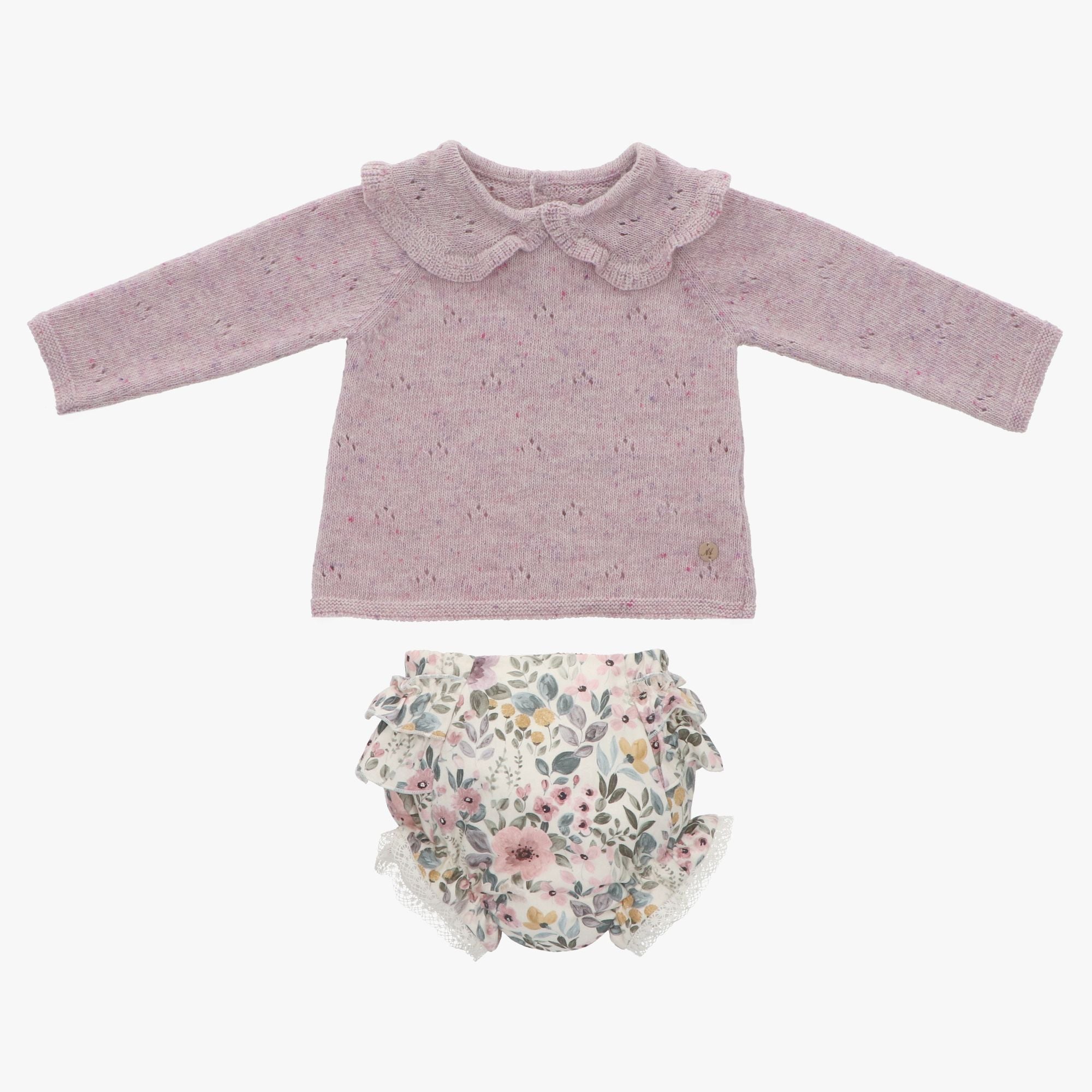 Beautiful Dusty lilac Knitted jumper and floral print bloomers 2 piece set