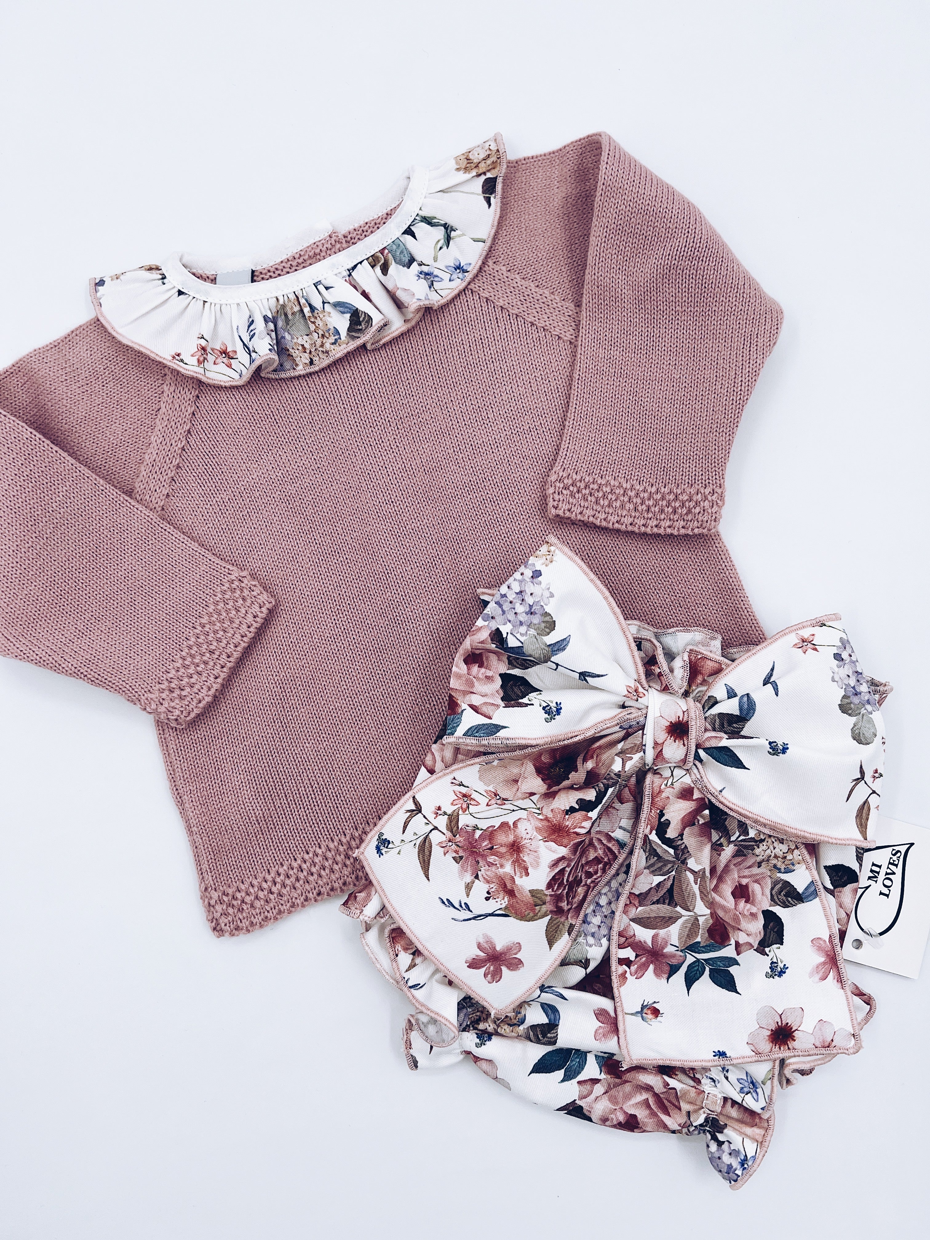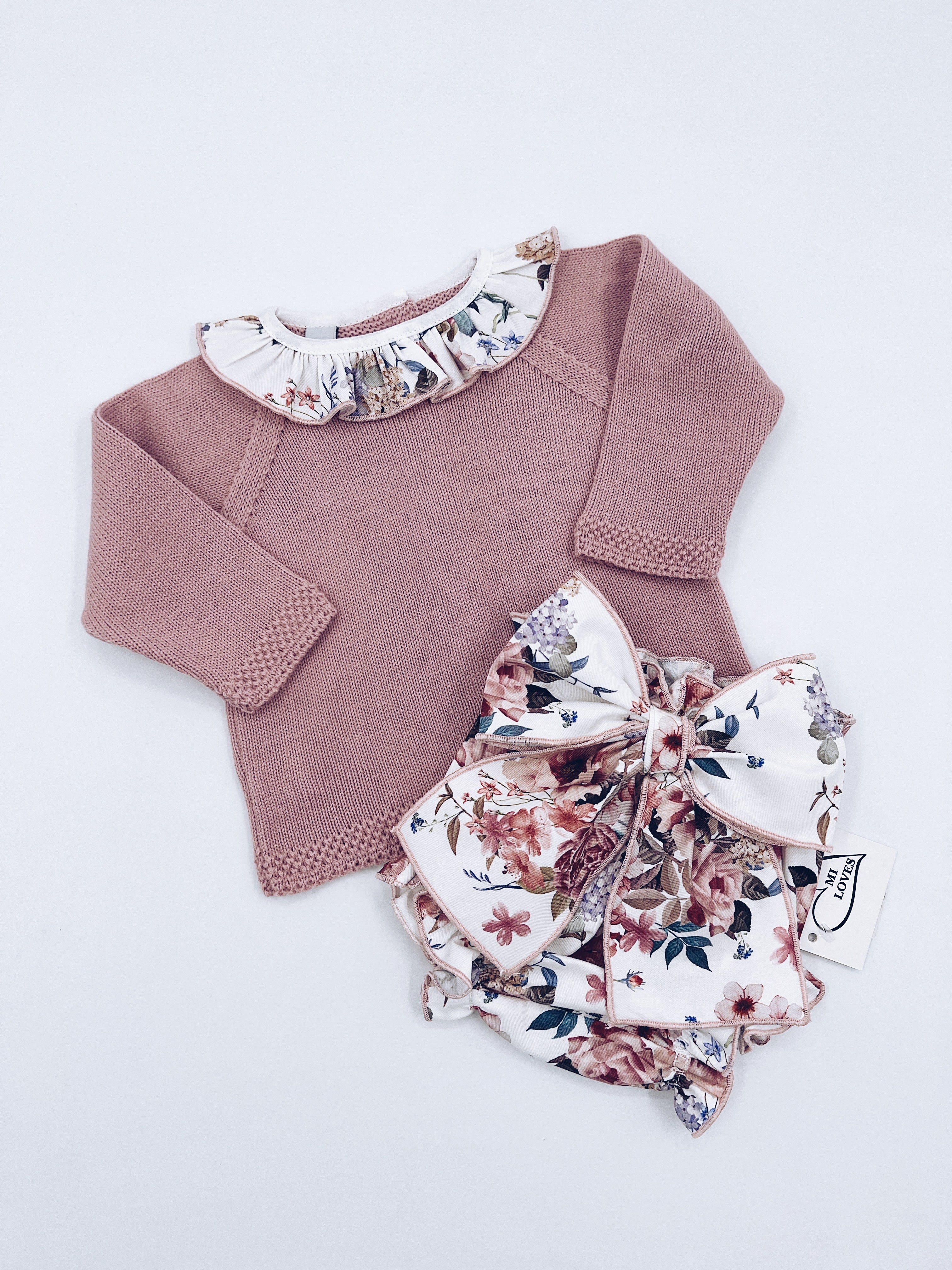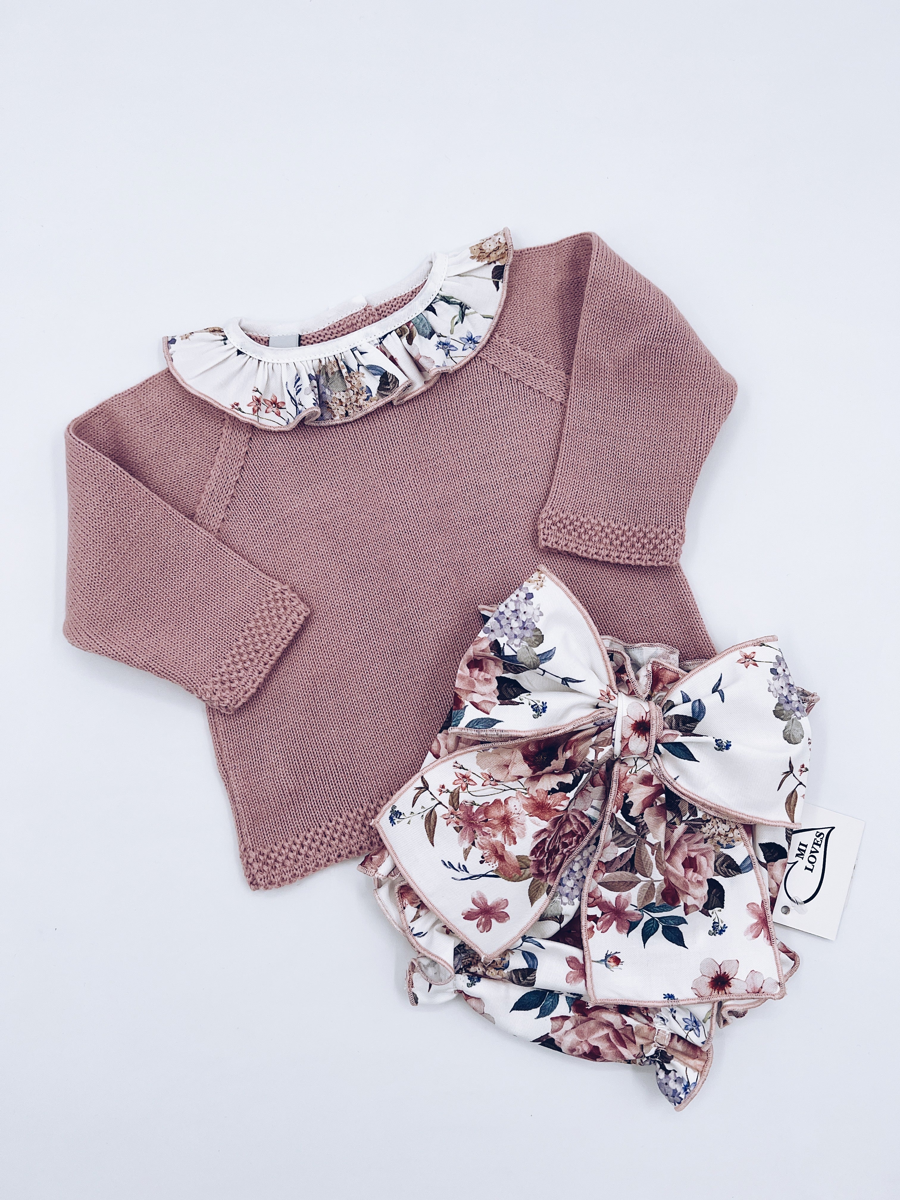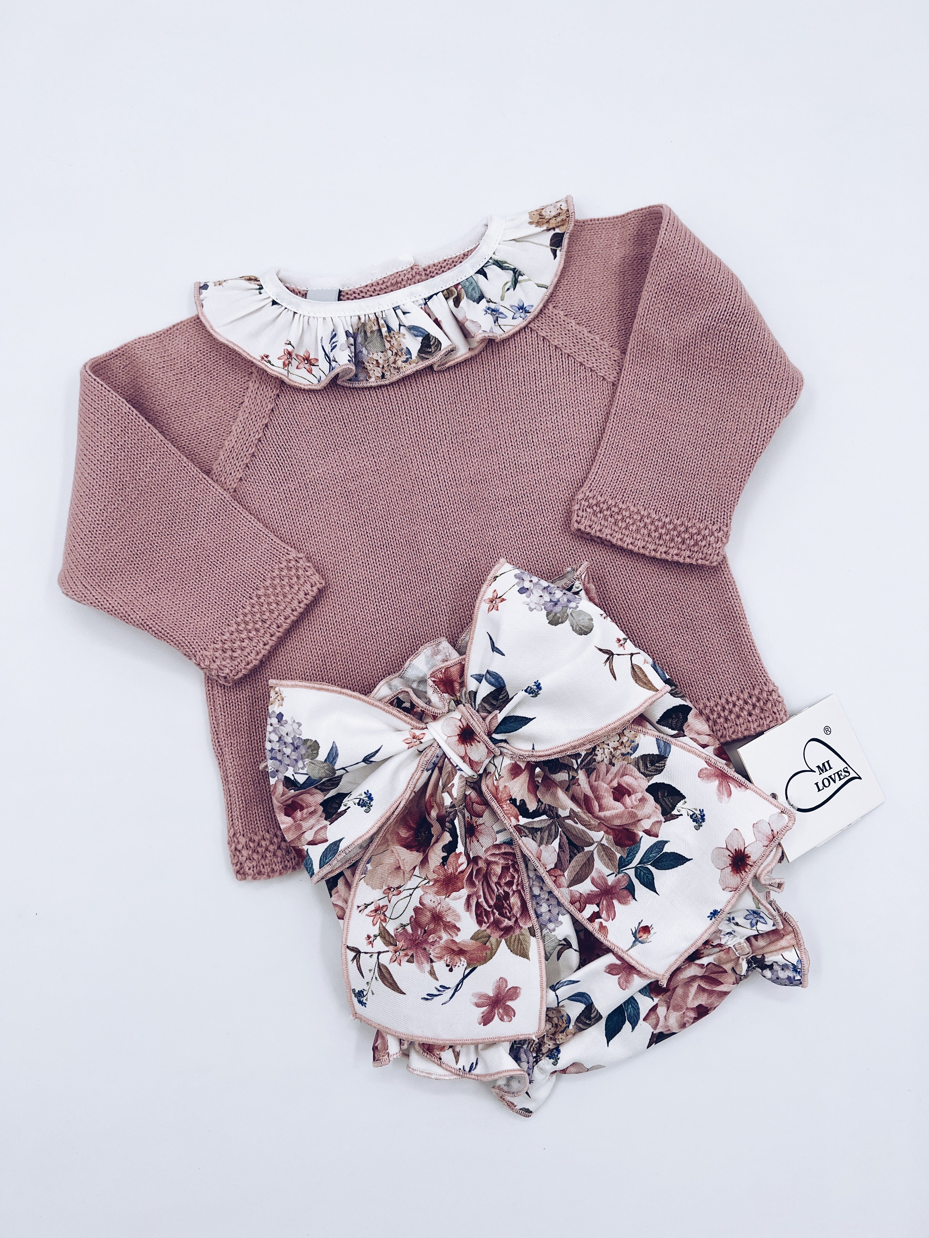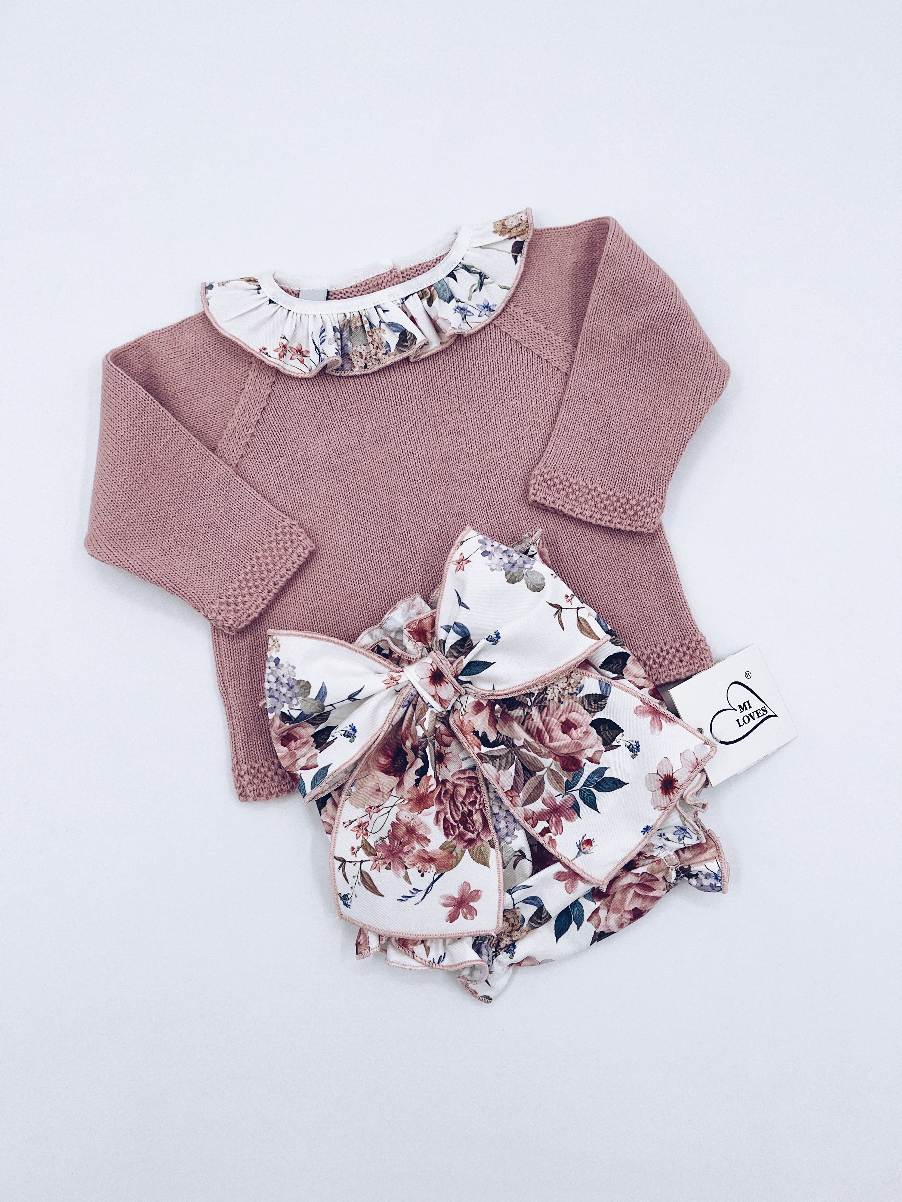 Beautiful Dusty pink 2 piece baby set with pretty Bloomers with Bow details.