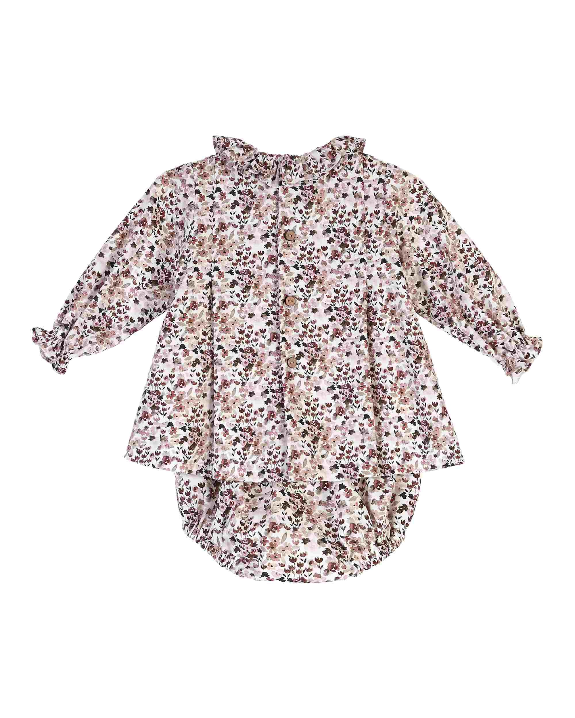 Beautiful floral print Dress/Bloomers 2 piece set with pompom details.