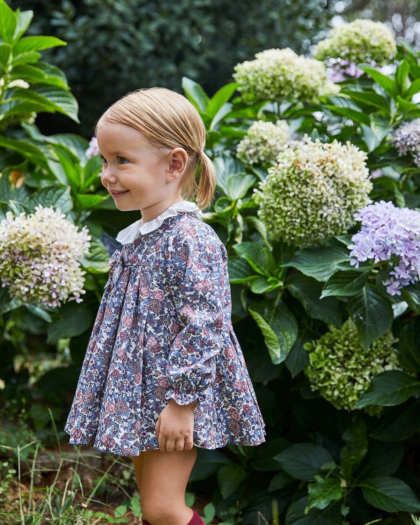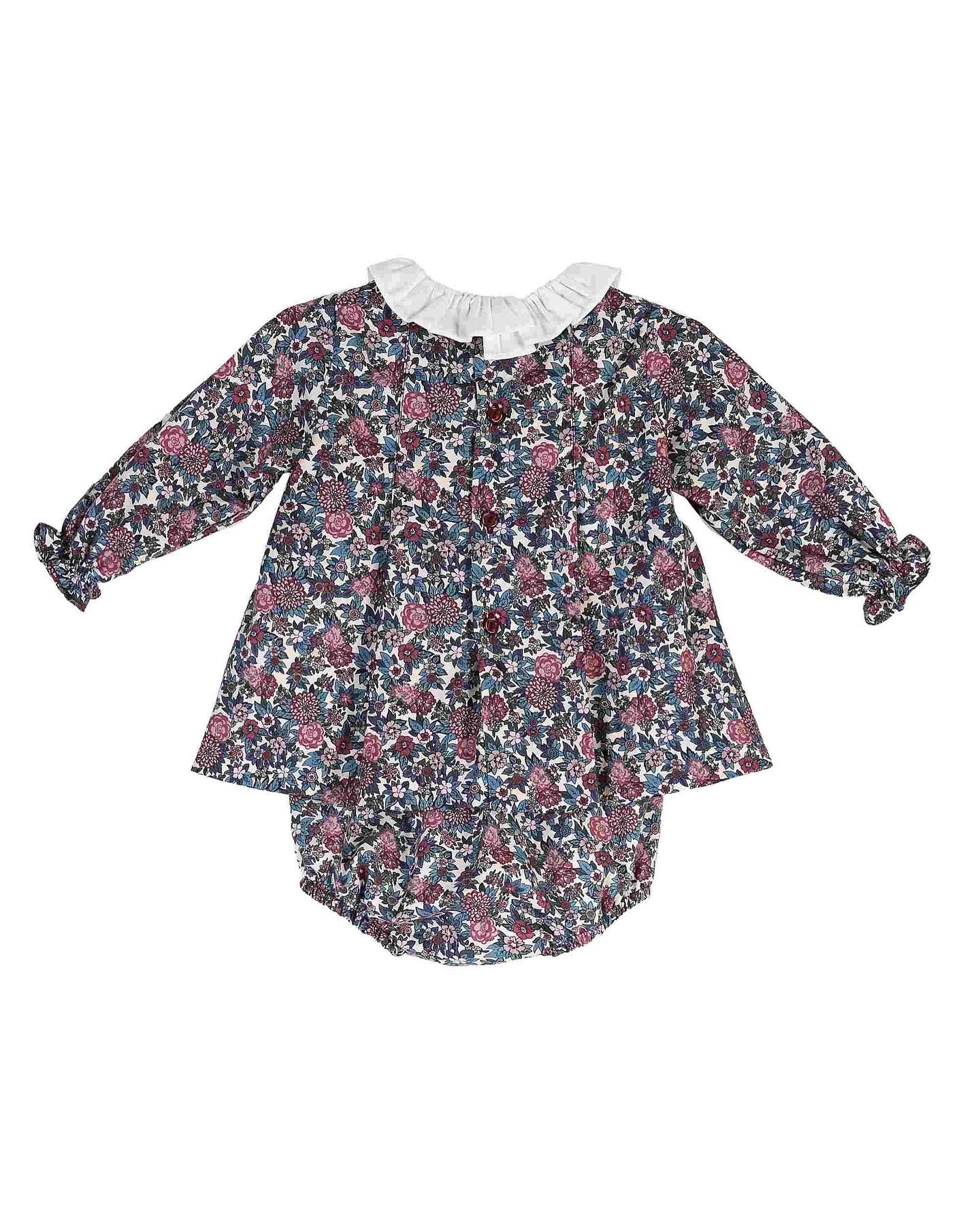 Beautiful floral print Dress/Bloomers 2 piece set with white frilly collar details.