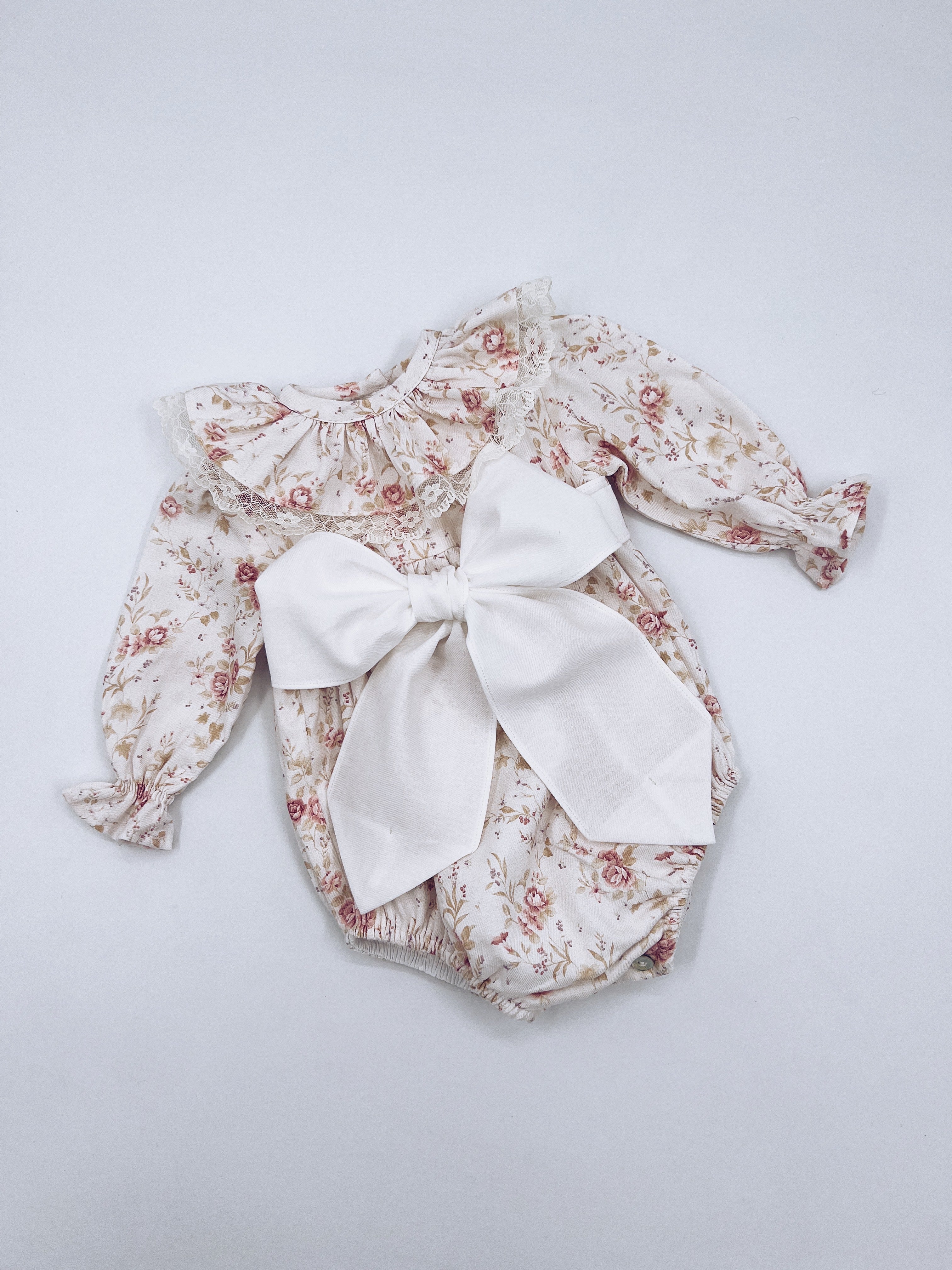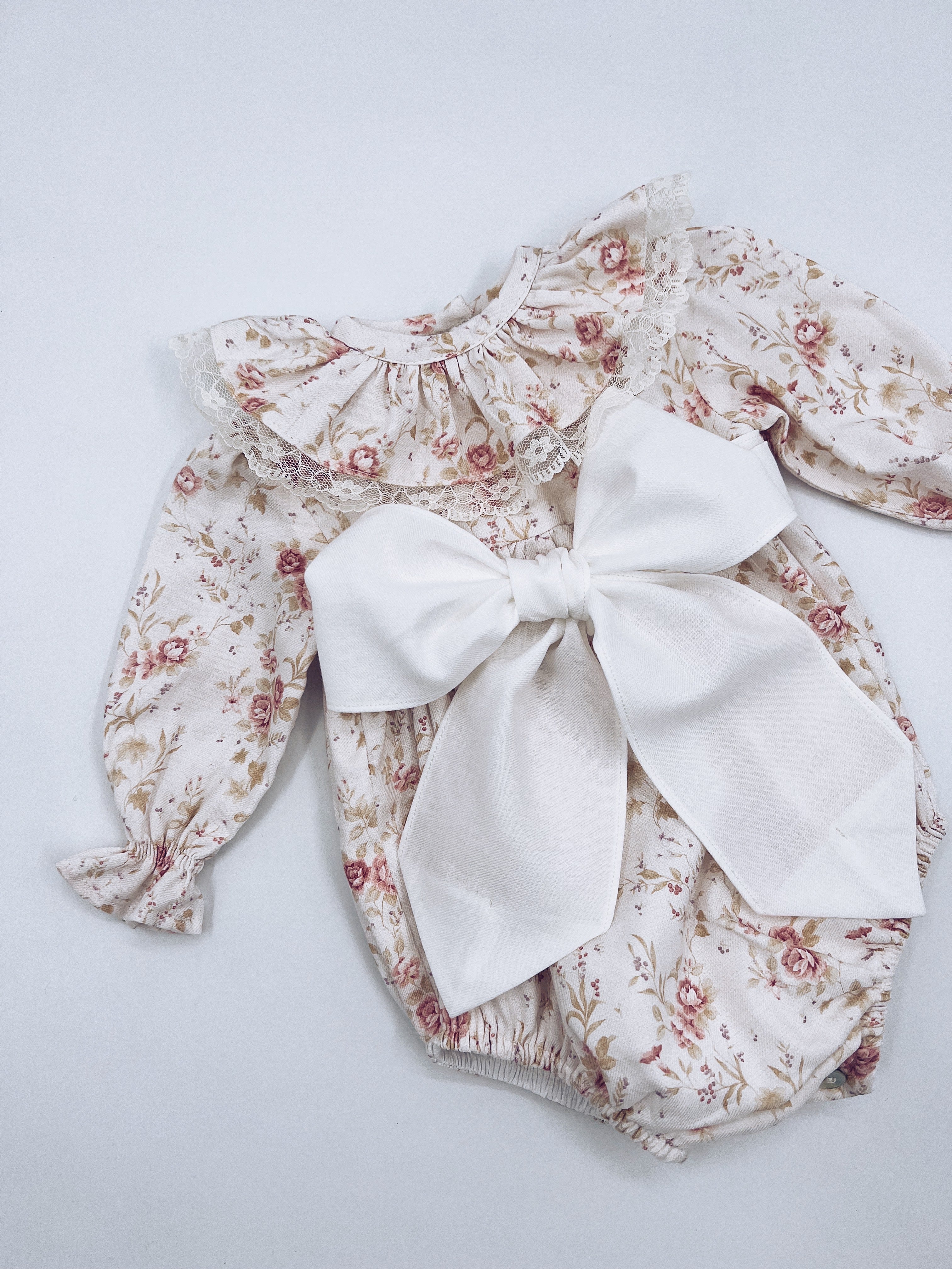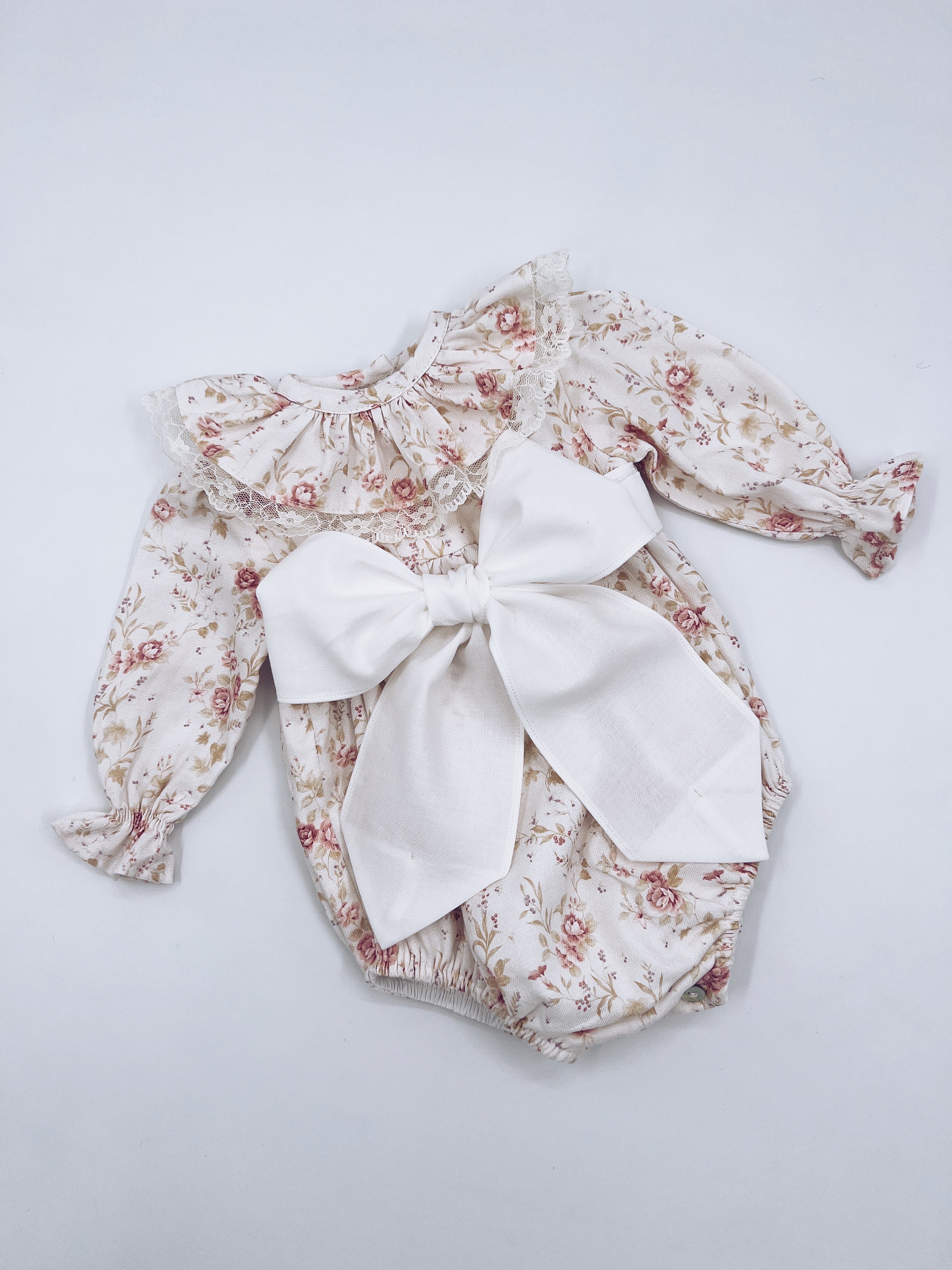 Beautiful Floral print Romper with Frill and Big Bow details.