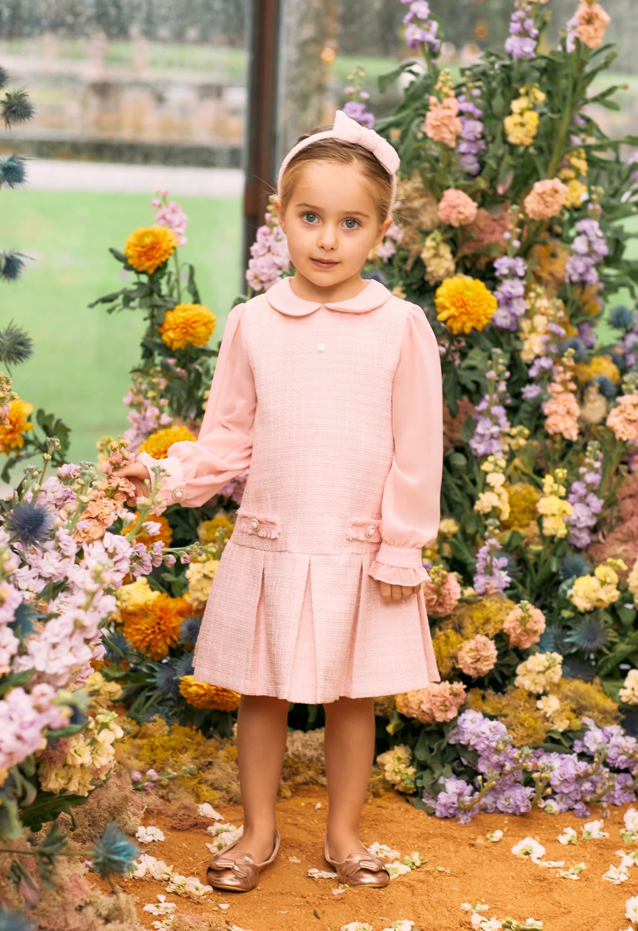 Beautiful Girls Pink Tweed Dress.Beautiful,Classic and Feminine design that doesn't go out of style.