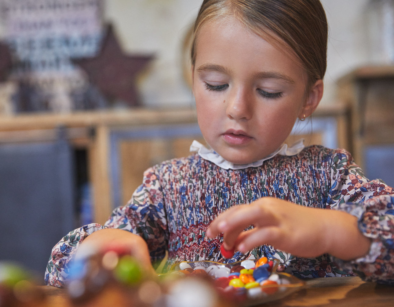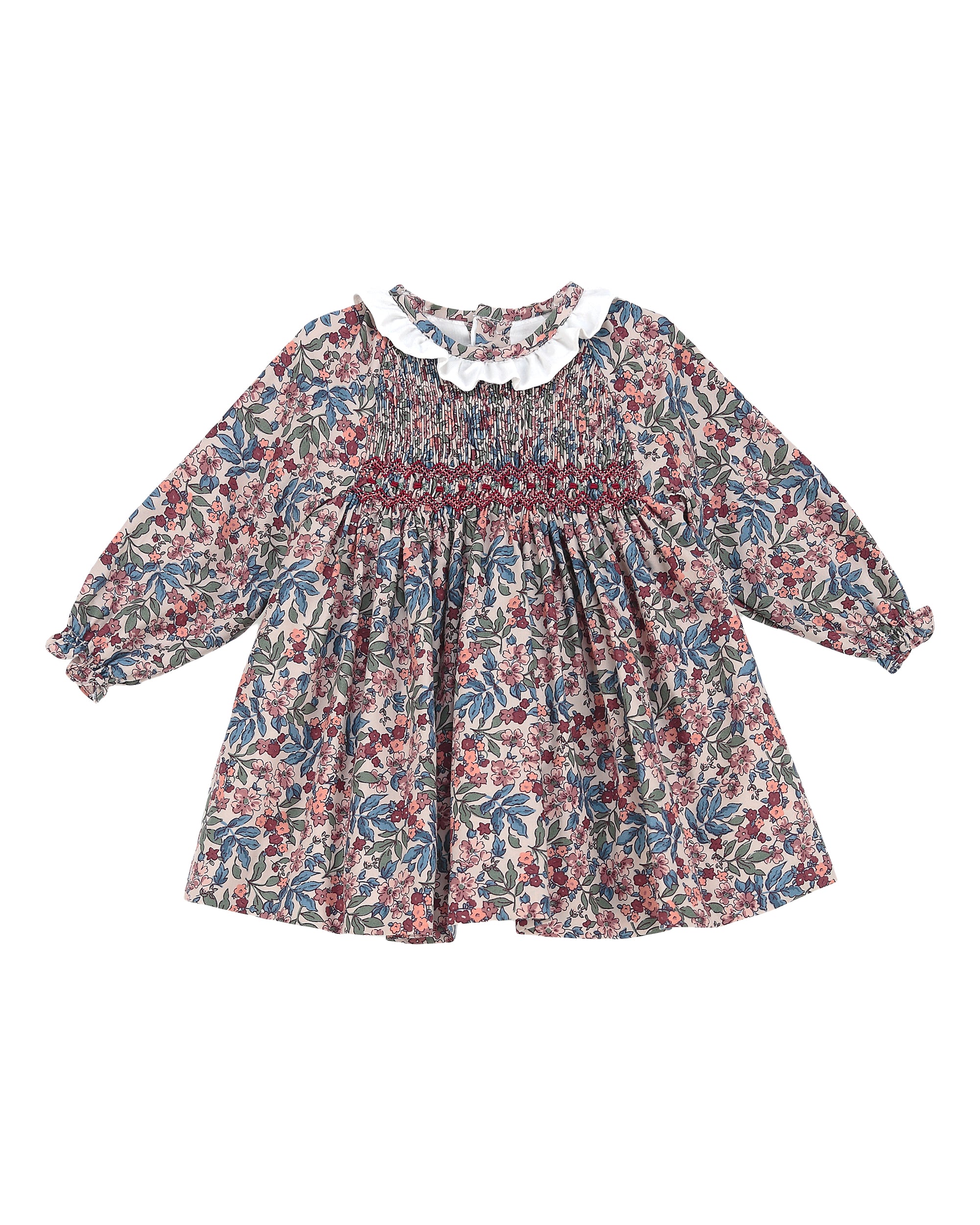 Beautiful Hand smoked Dress and bloomers with floral print details.