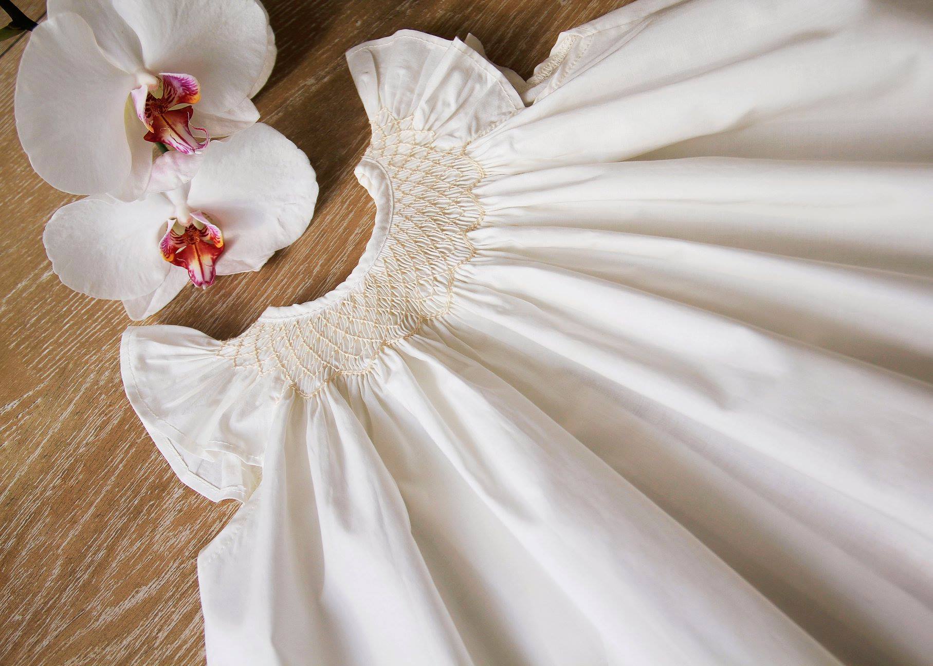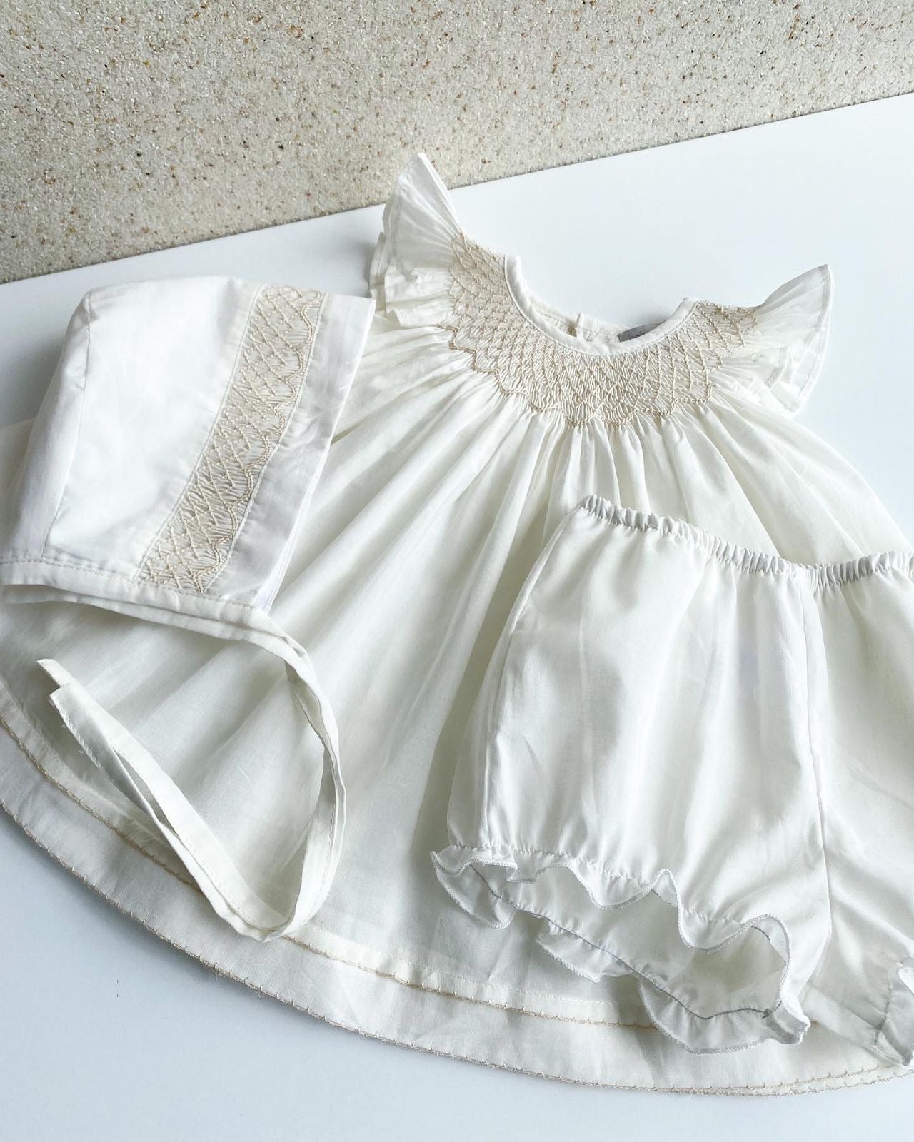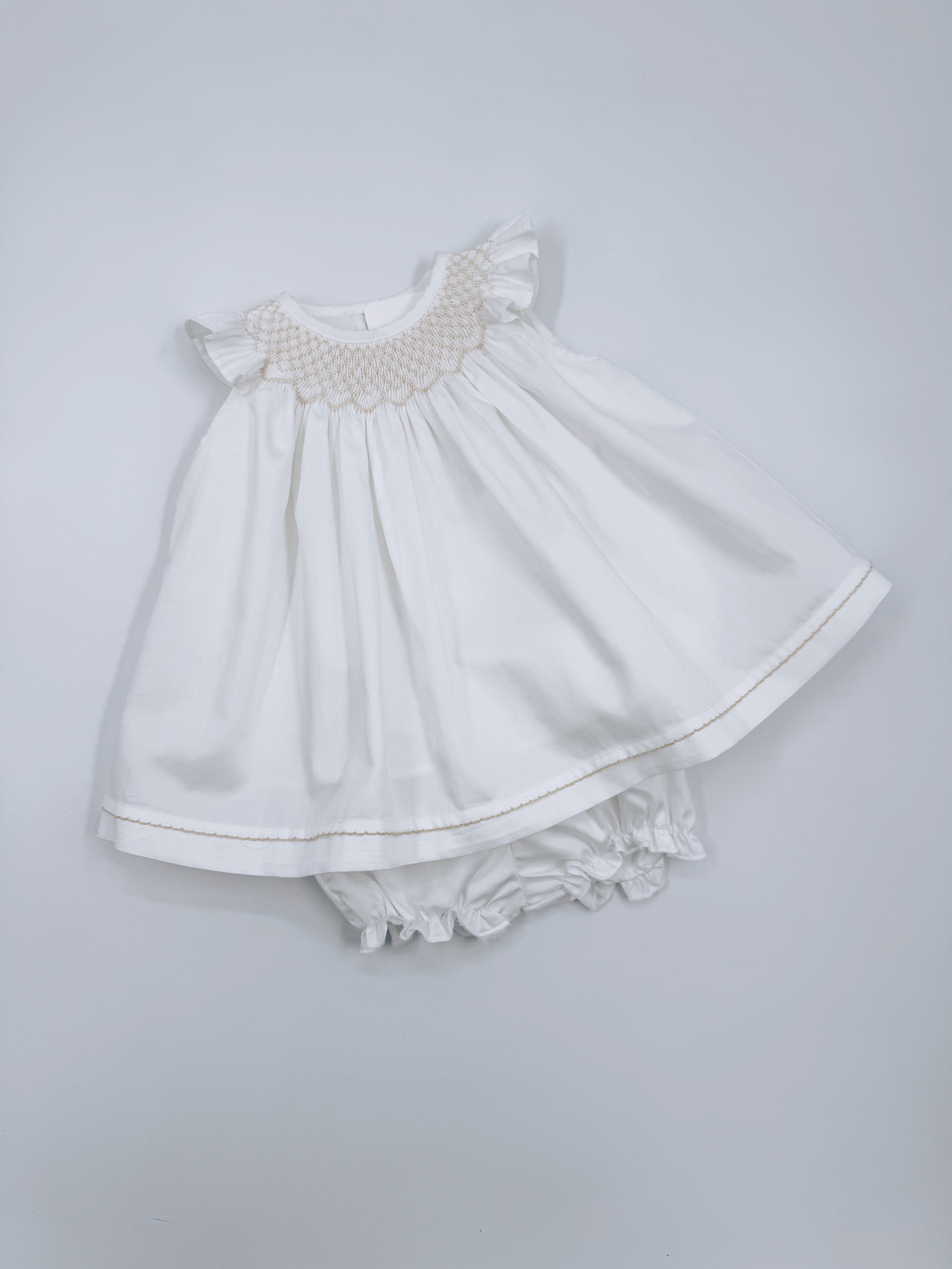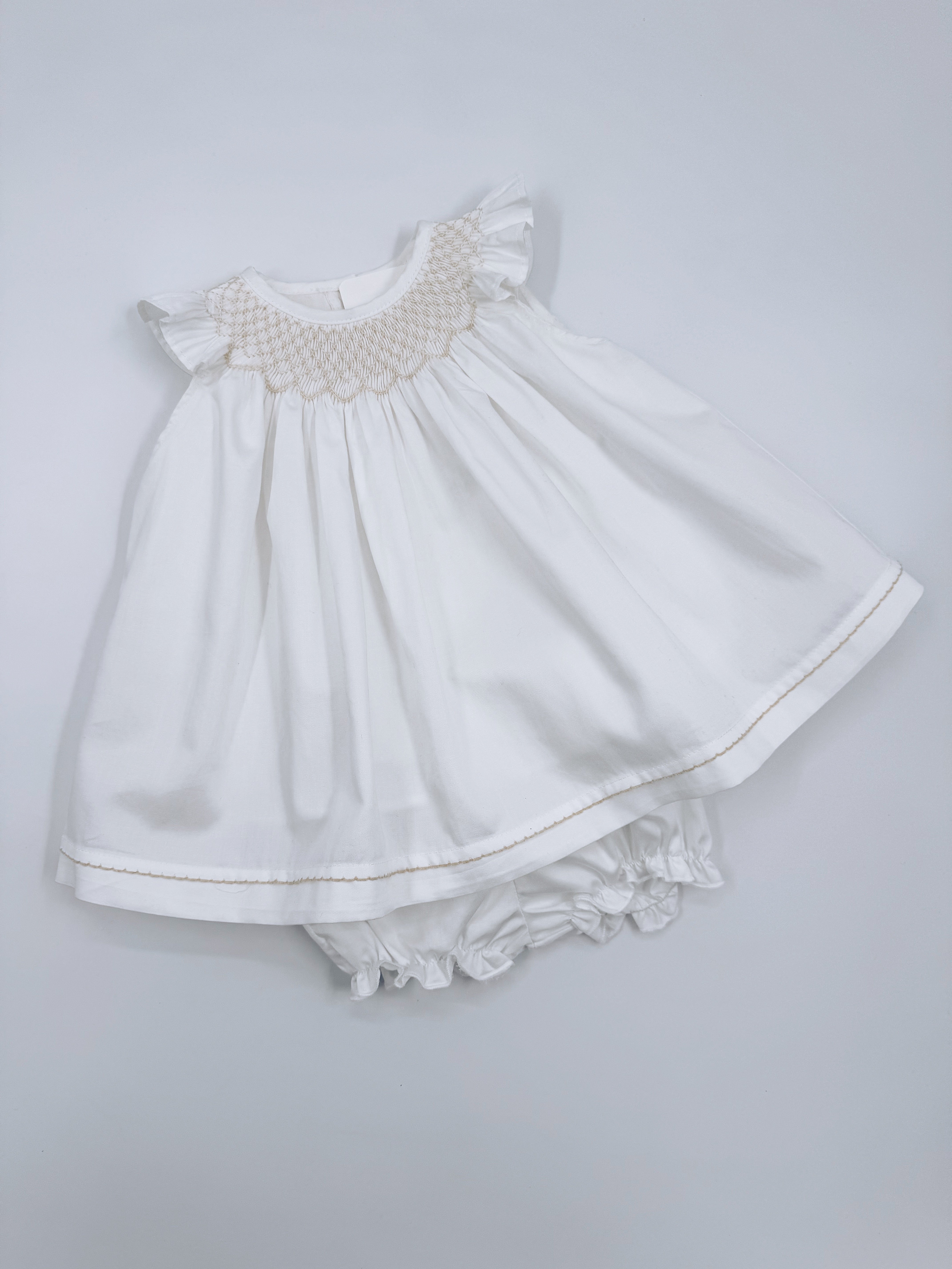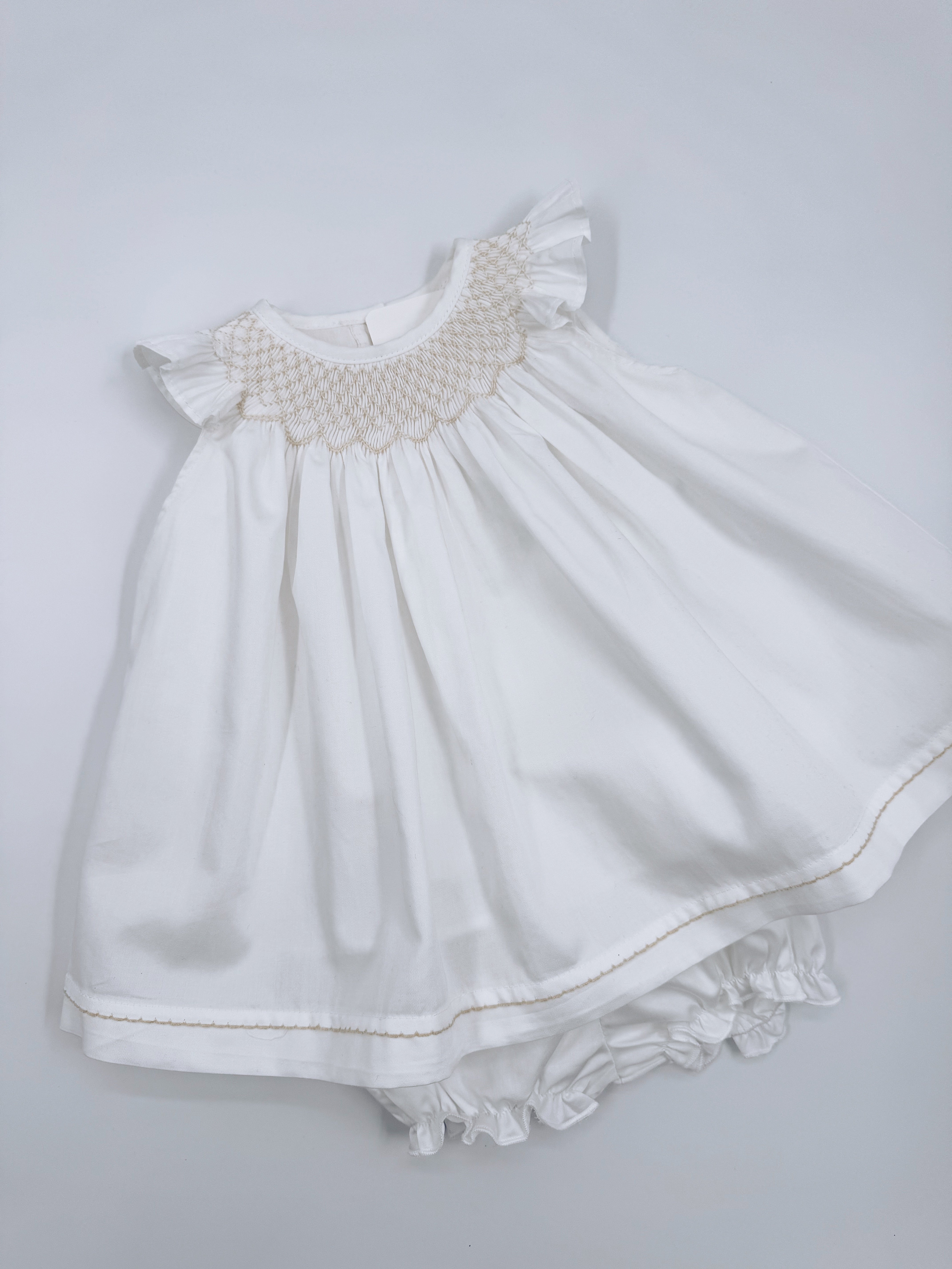 Beautiful Ivory Hand Smoked dress and bloomers 2 piece set.