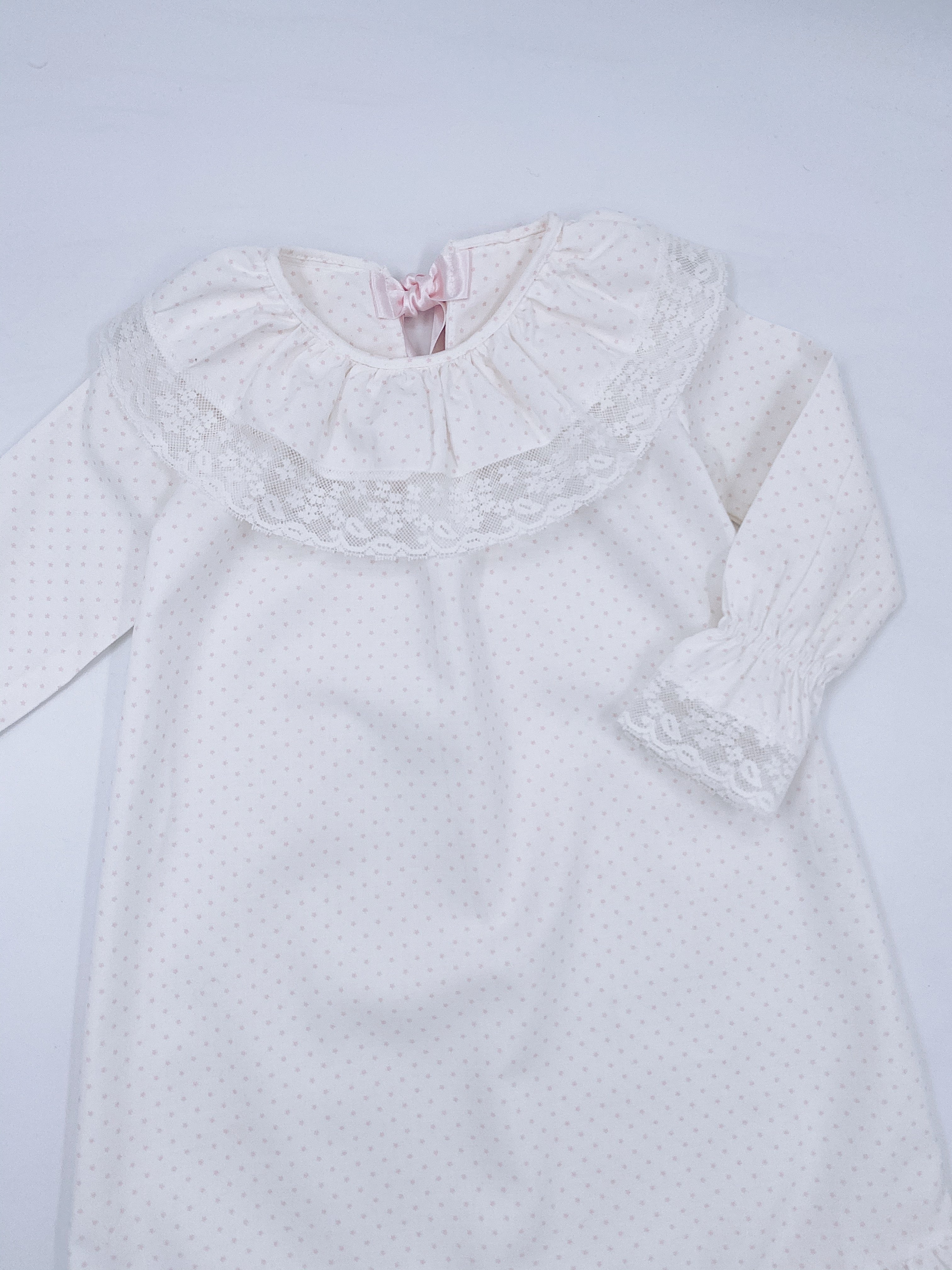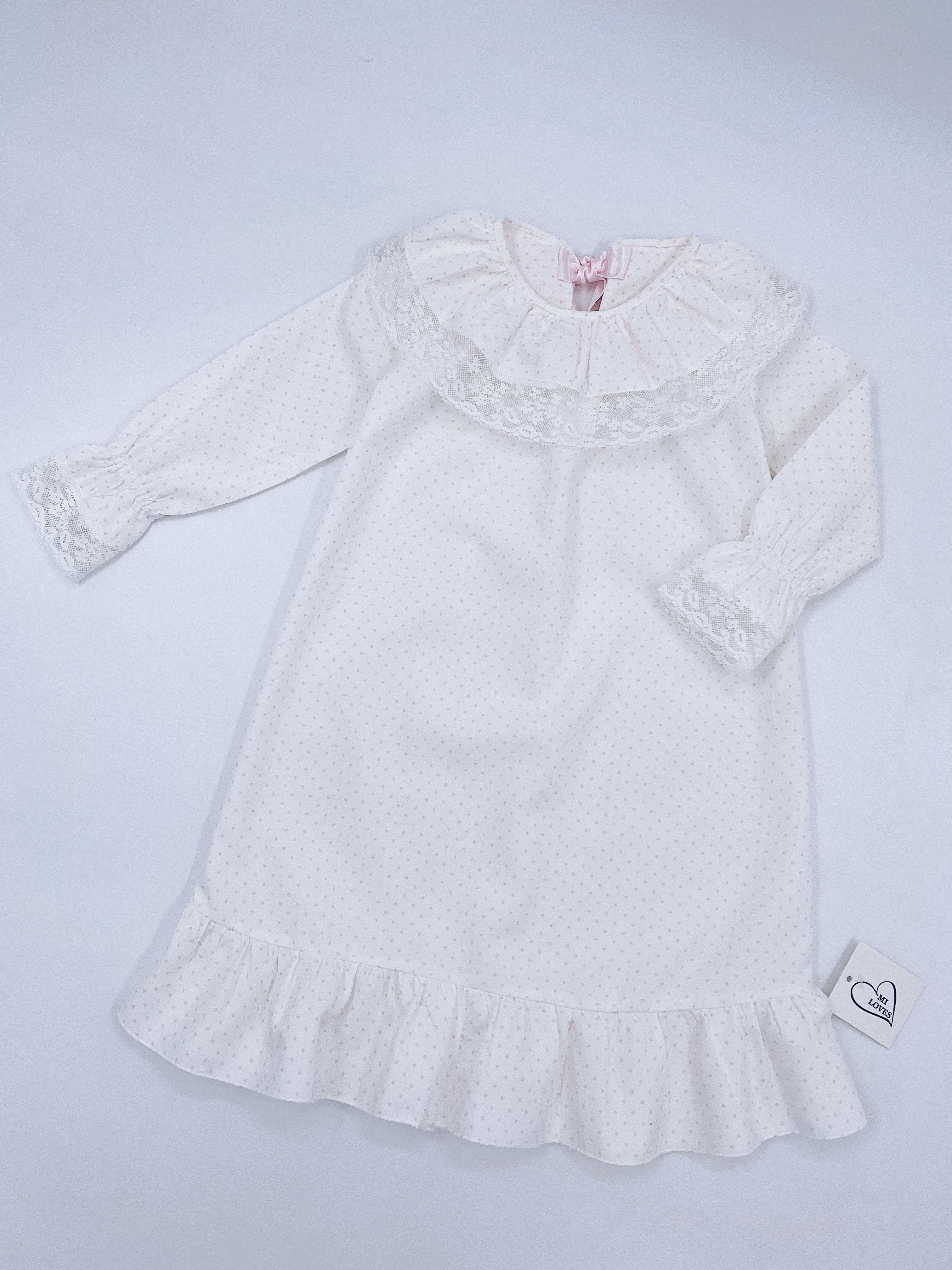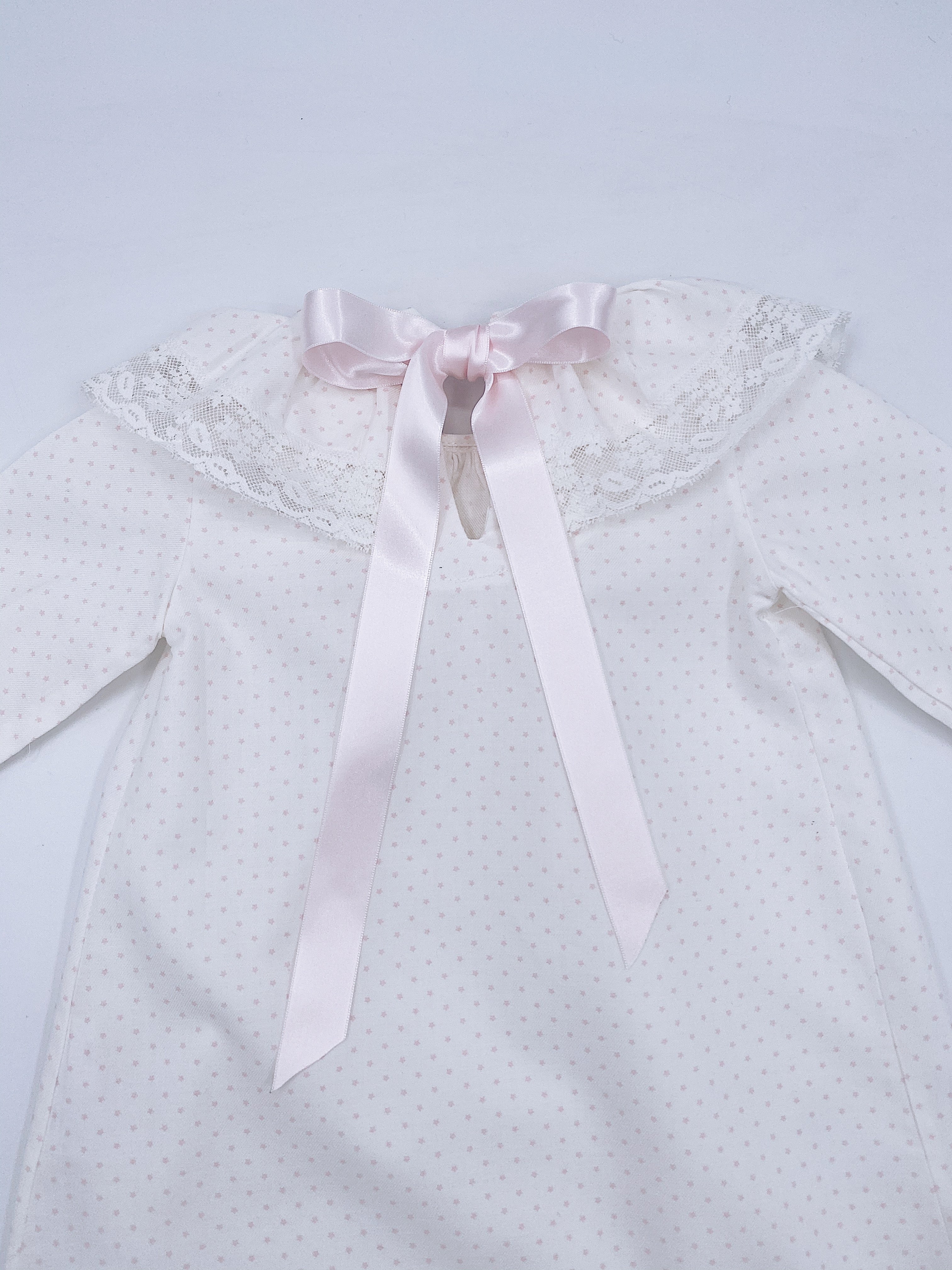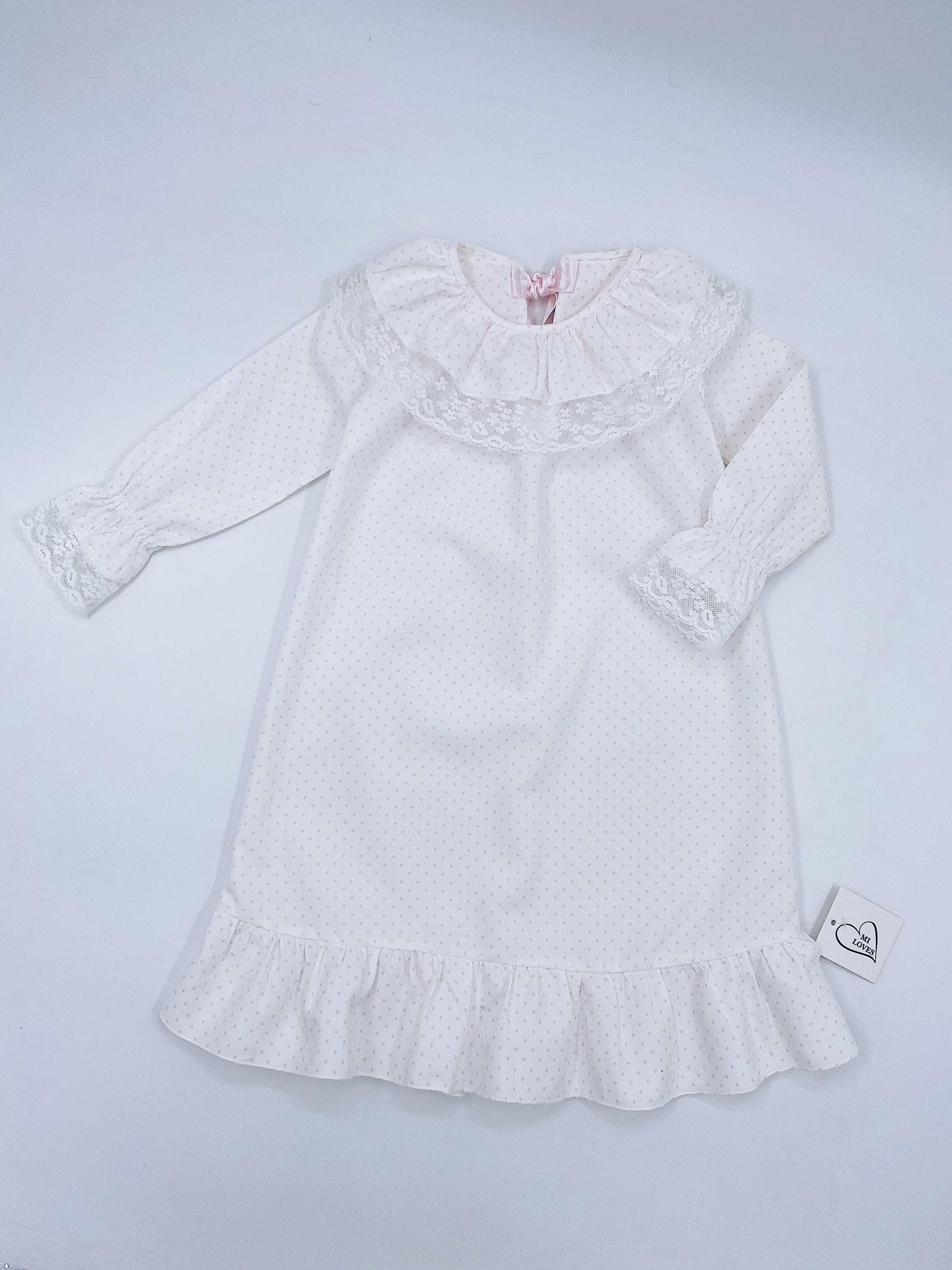 Beautiful ivory nightgown with pretty lace and pink stars details