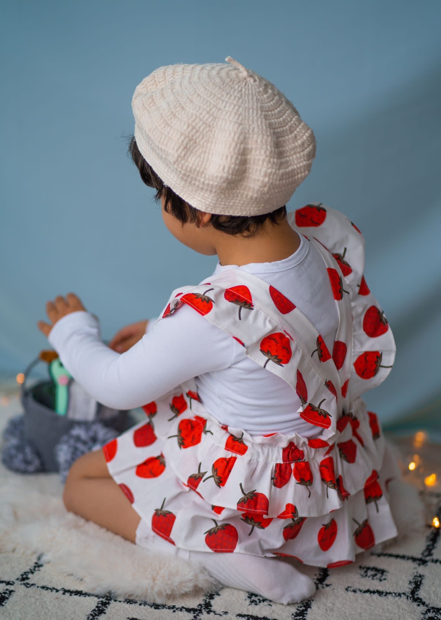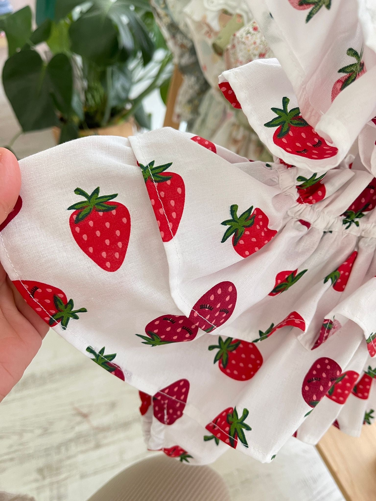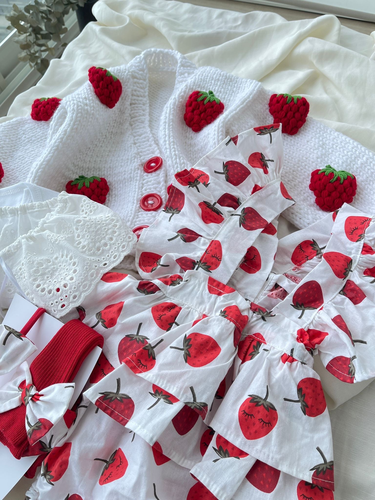 Beautiful Jam pants 5 piece set with Strawberry print details.Set includes Jam pants,Socks,Headband,Bodysuit and Collar.
