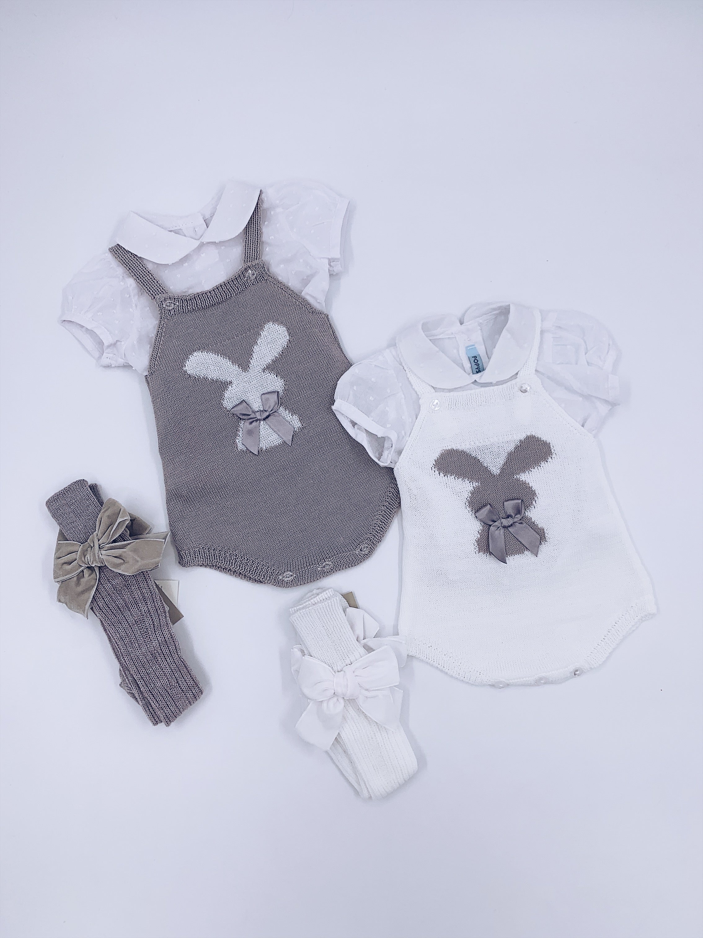 Beautiful knitted bunny romper and blouse 2 piece set