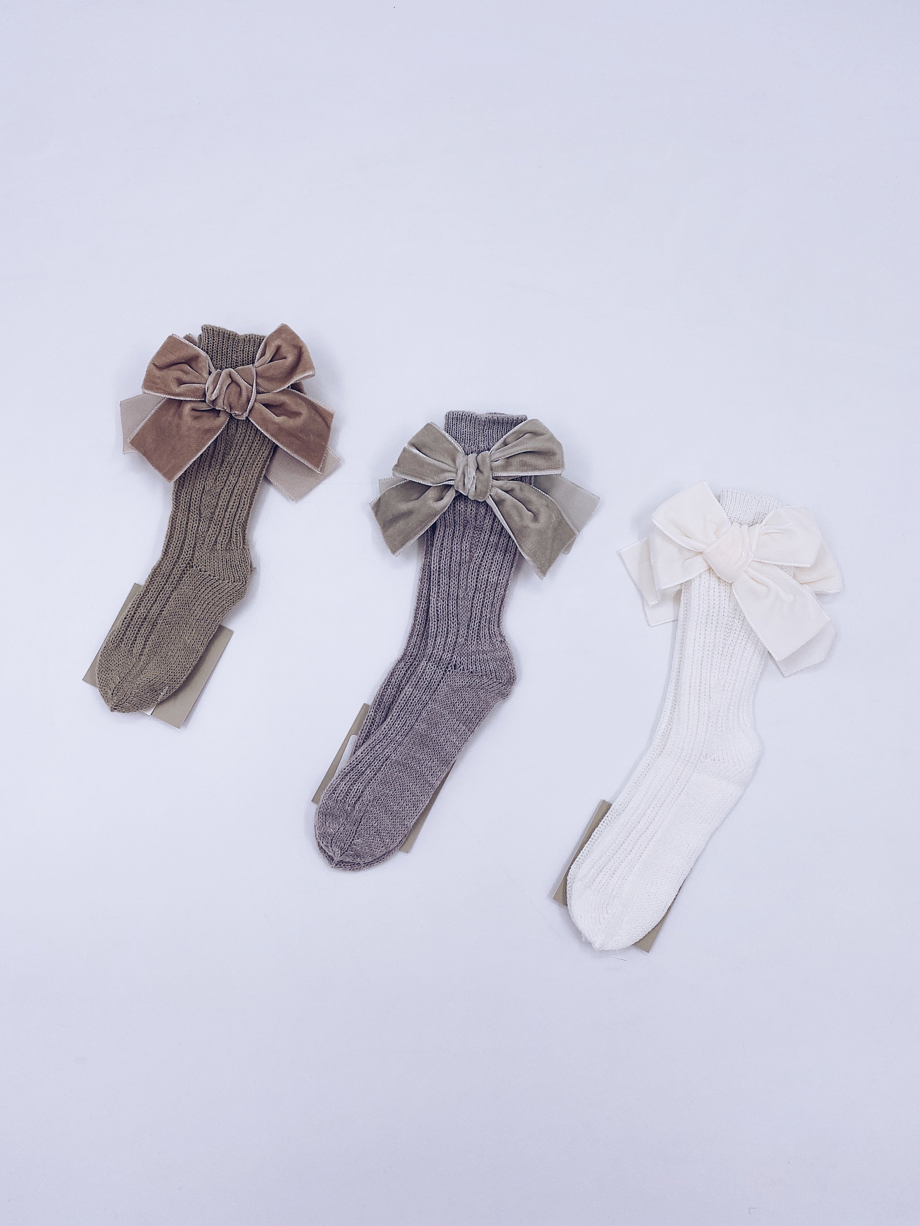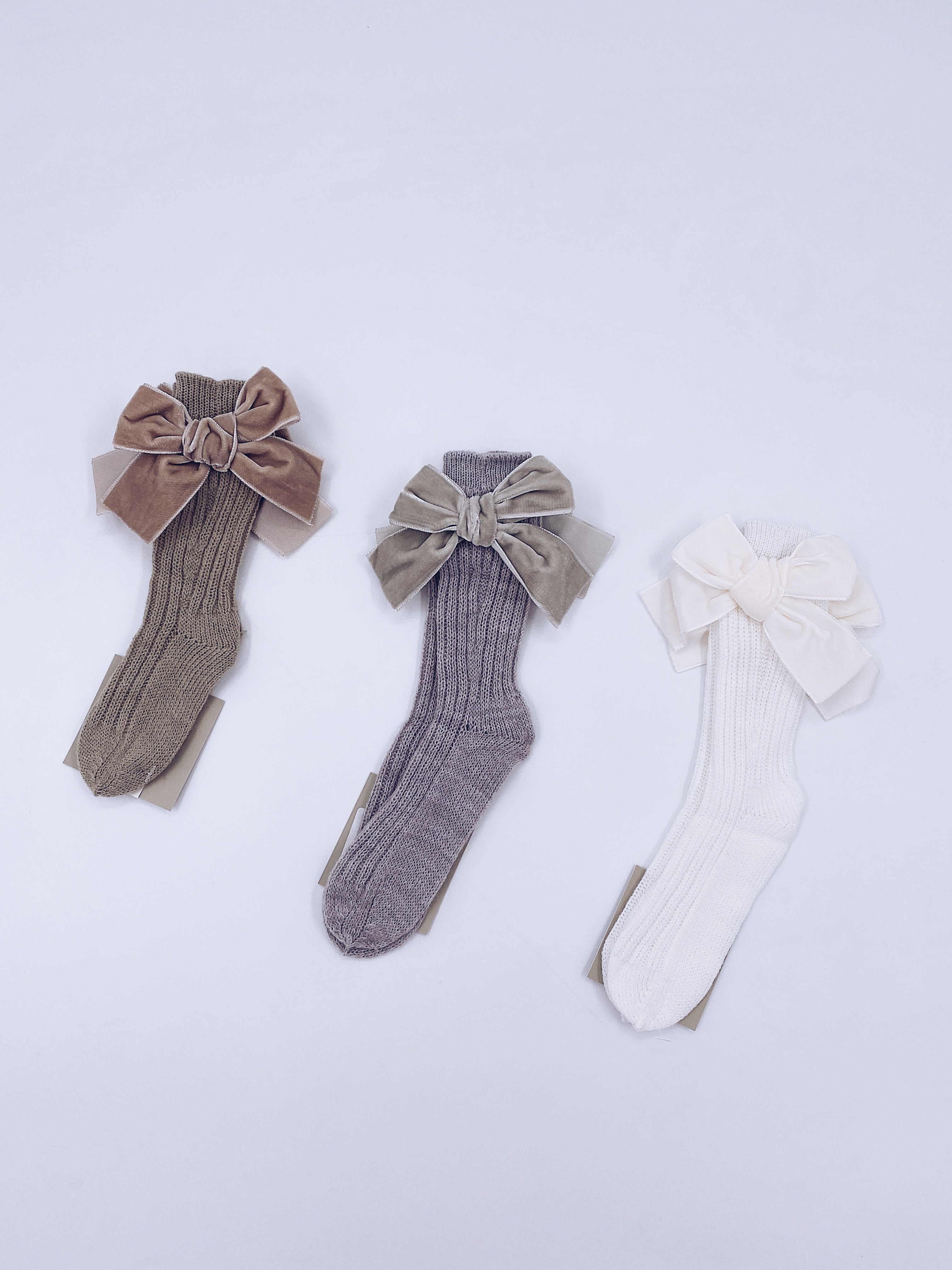Beautiful knitted socks with Luxurious velvet bows