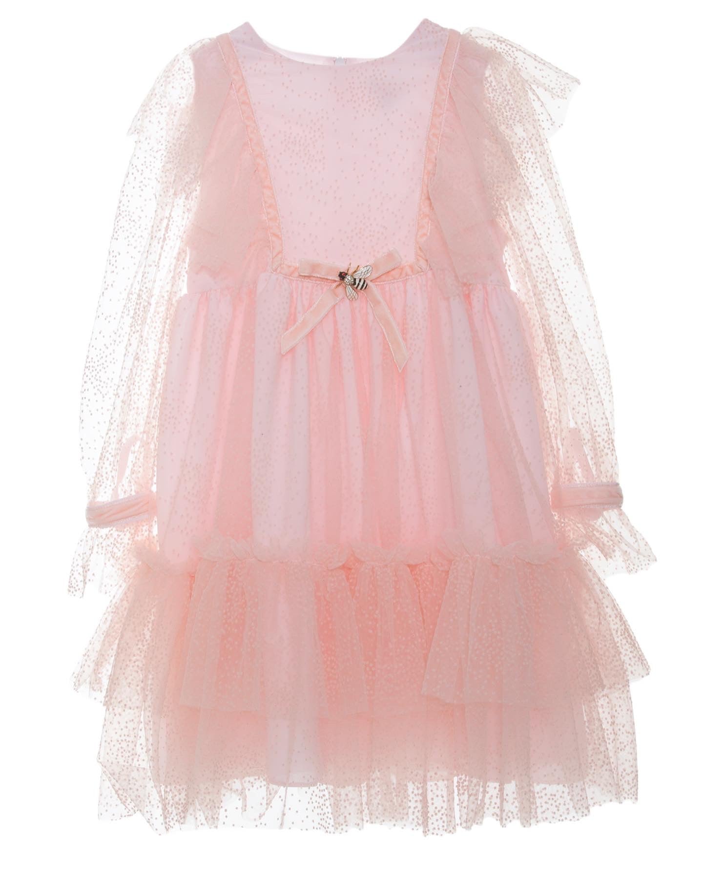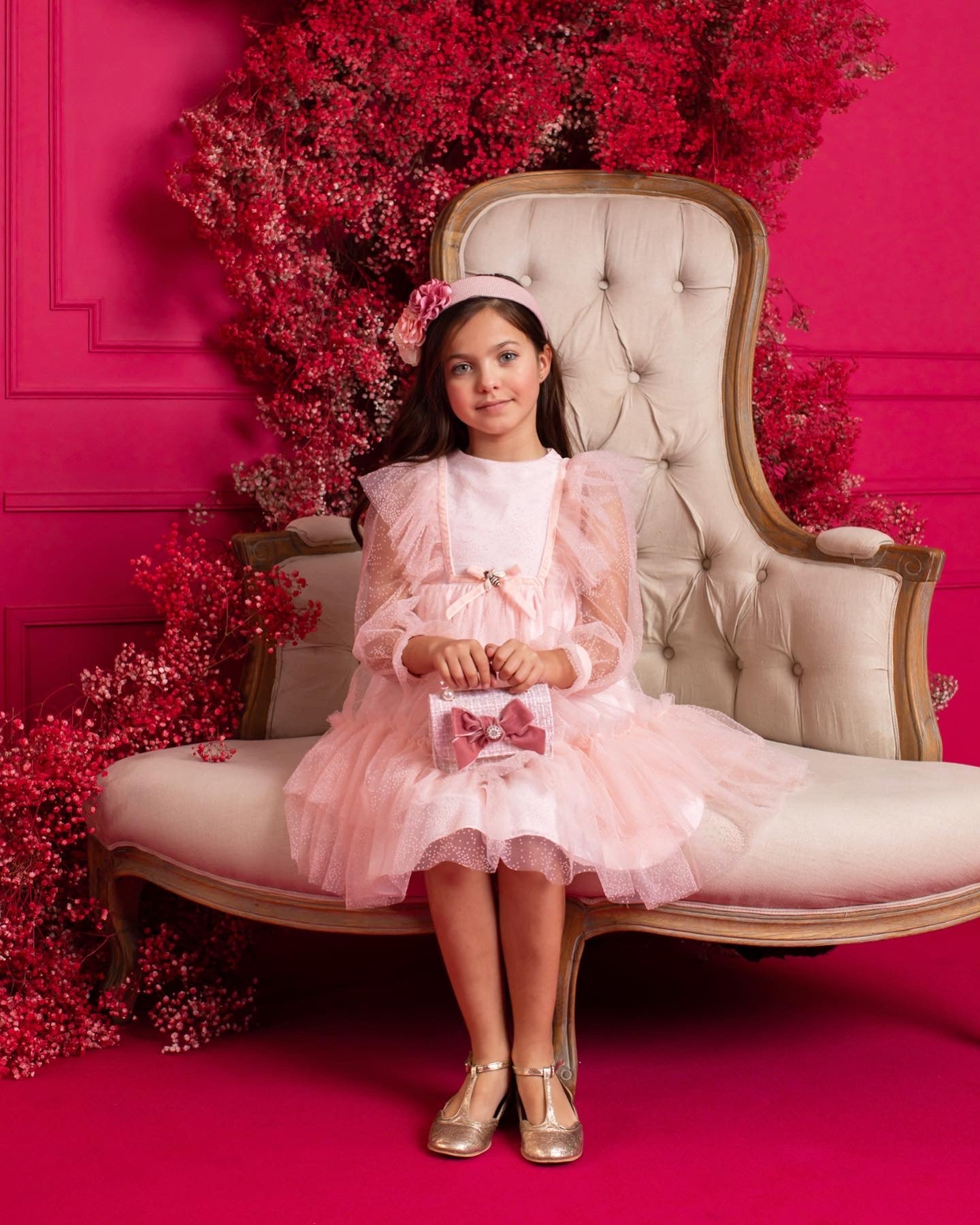 Beautiful Pink chiffon dress with ruffle and Bow details.