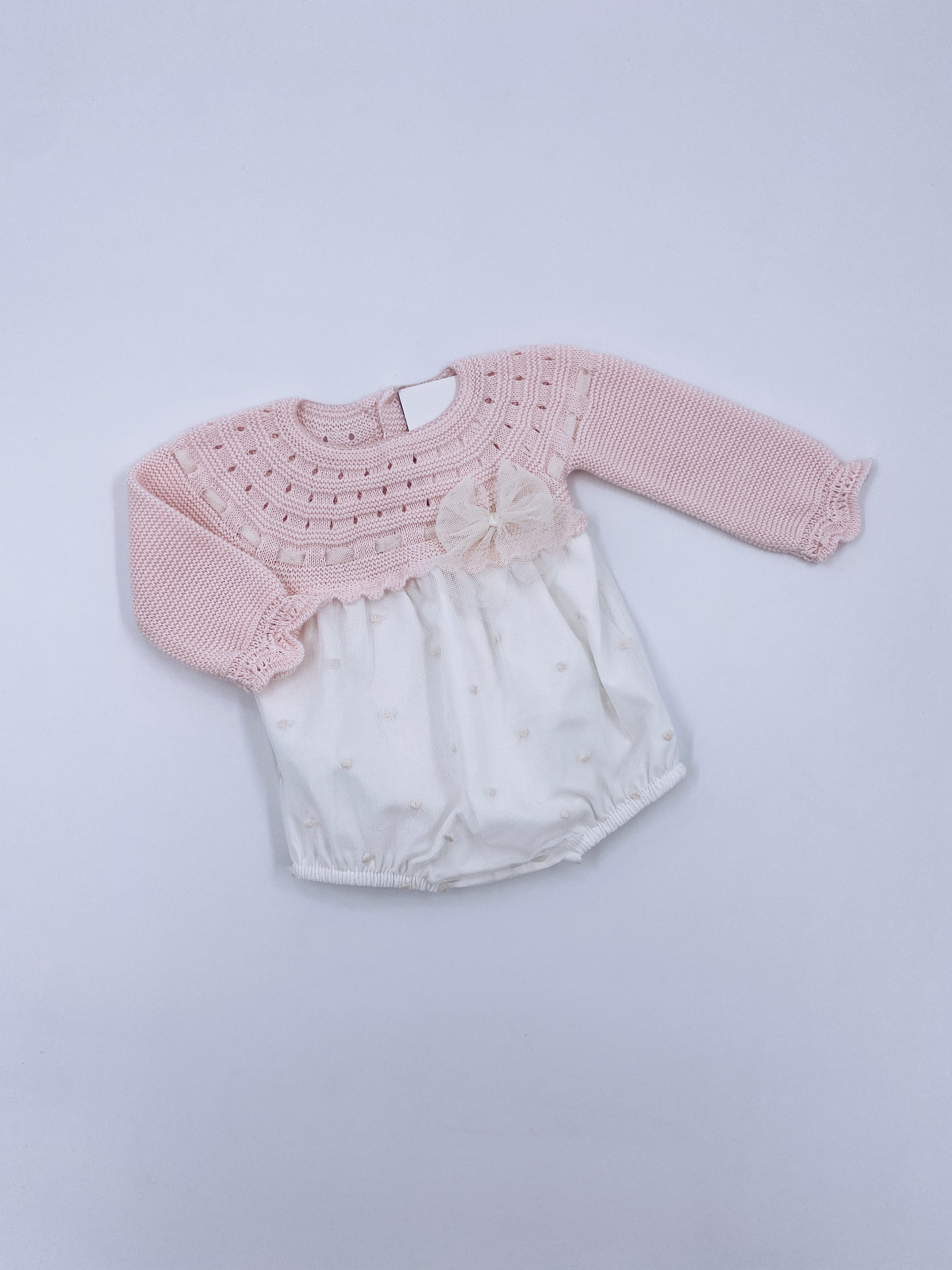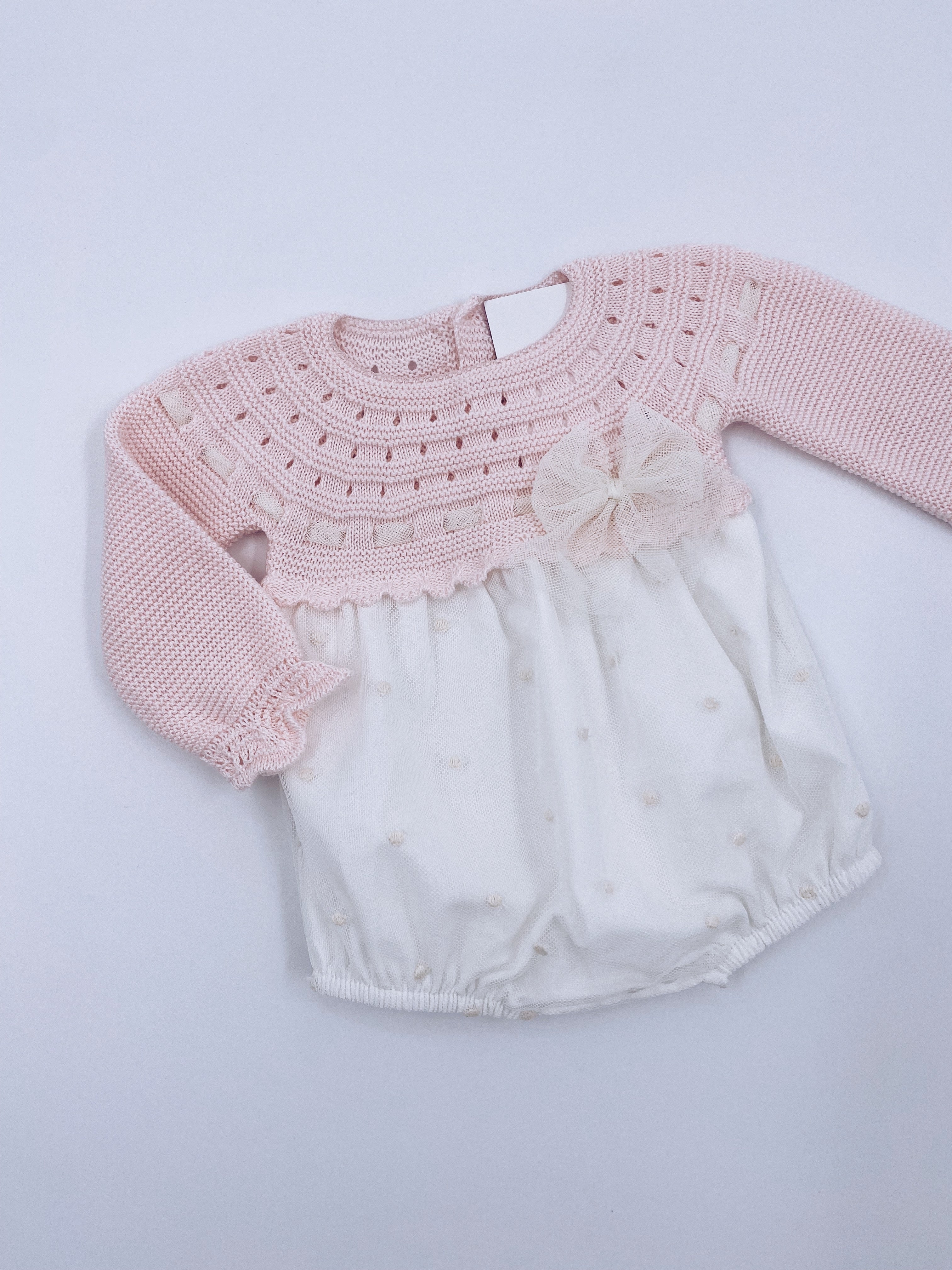 Beautiful Pink/Ivory Baby Romper with bow details