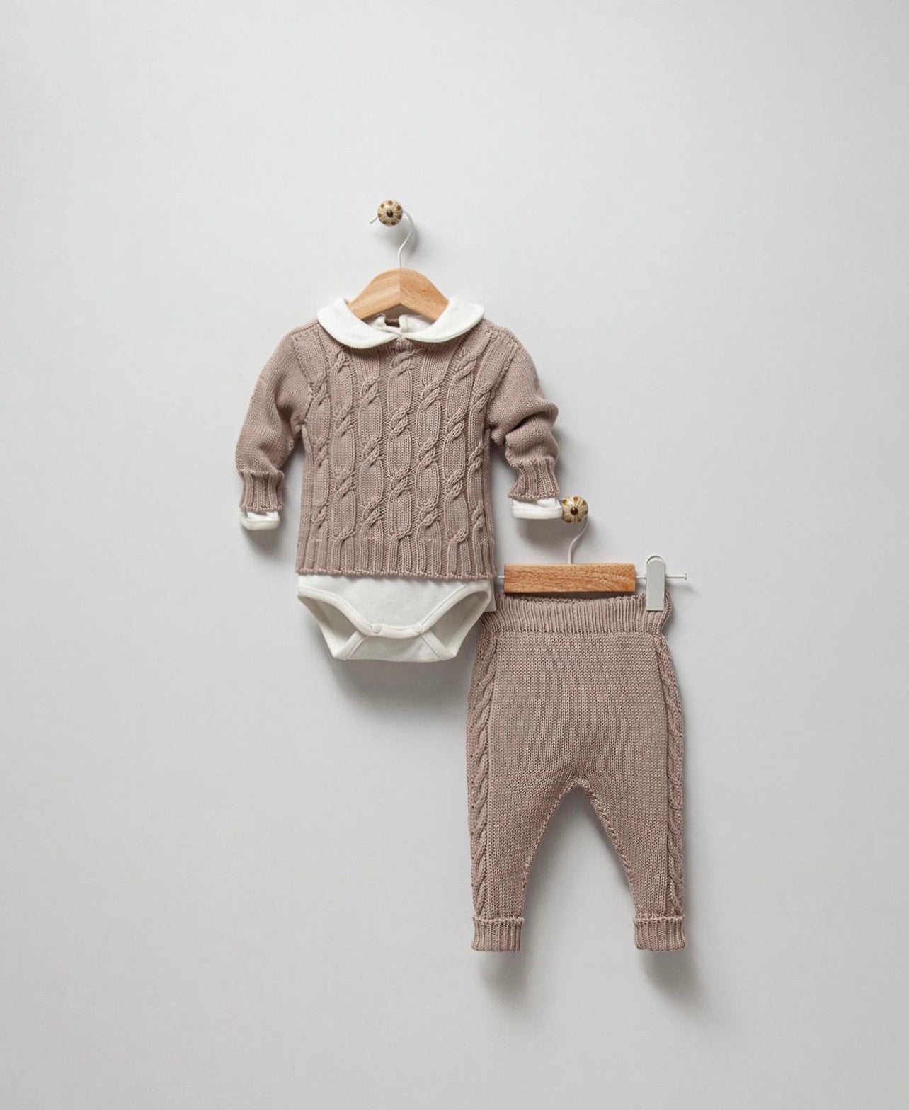 Beautiful Stone Knitted Baby 3 piece set(Jumper/Trousers/Bodysuit)