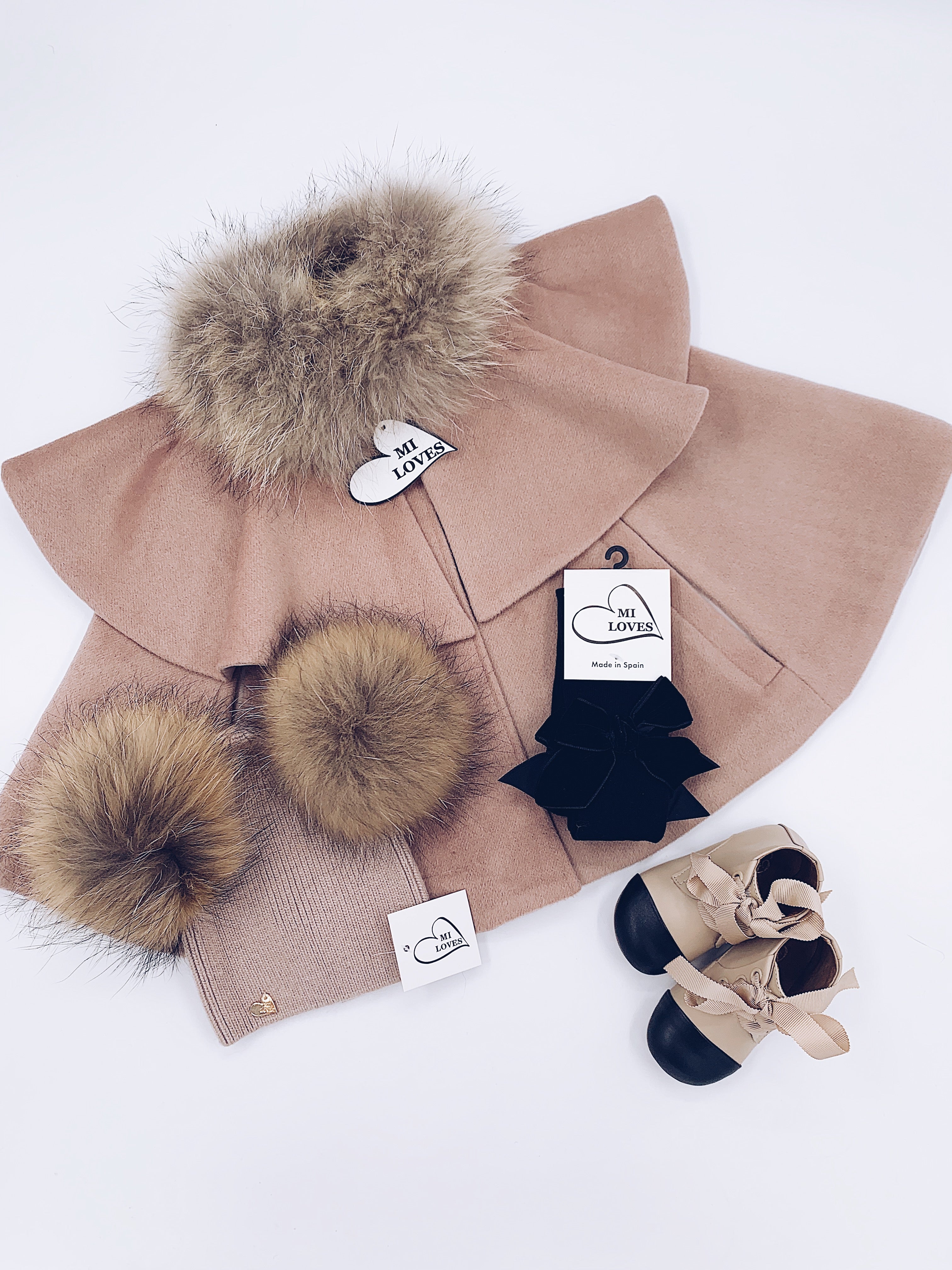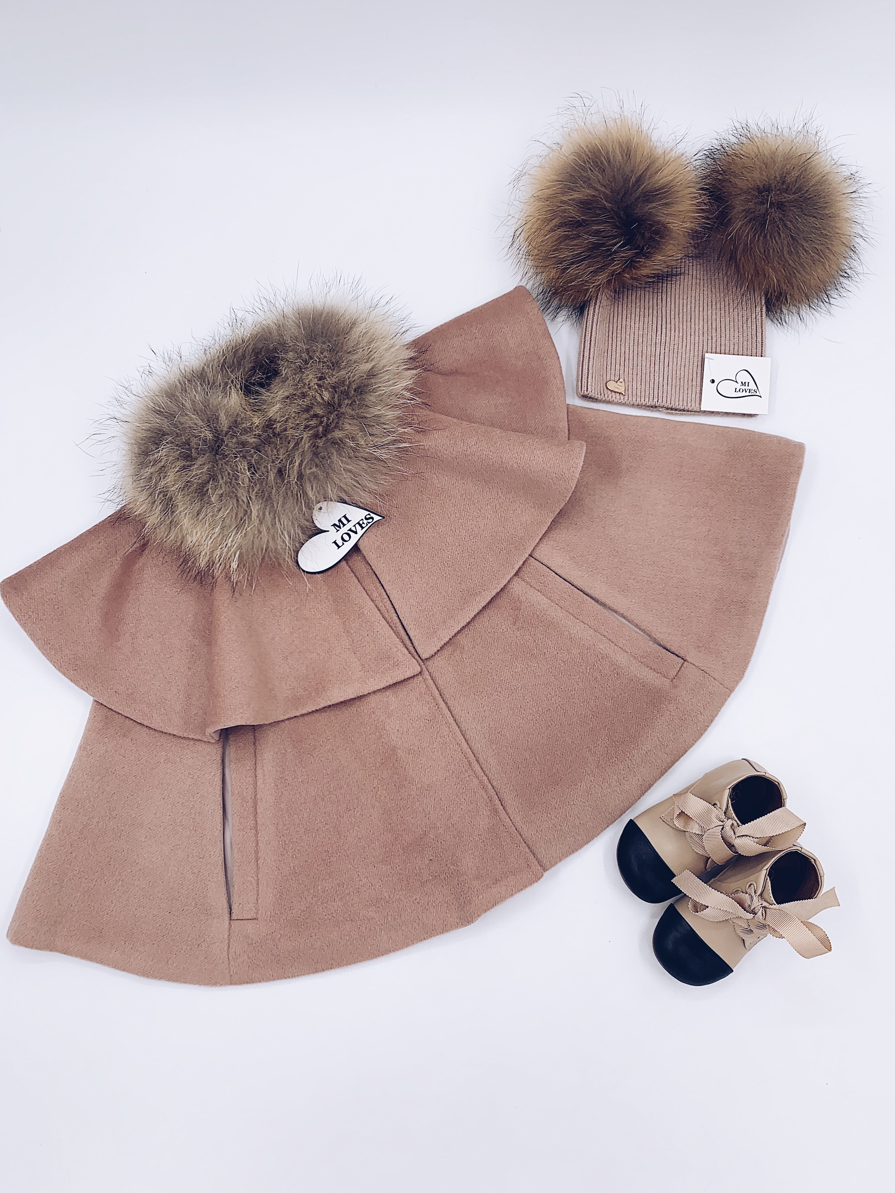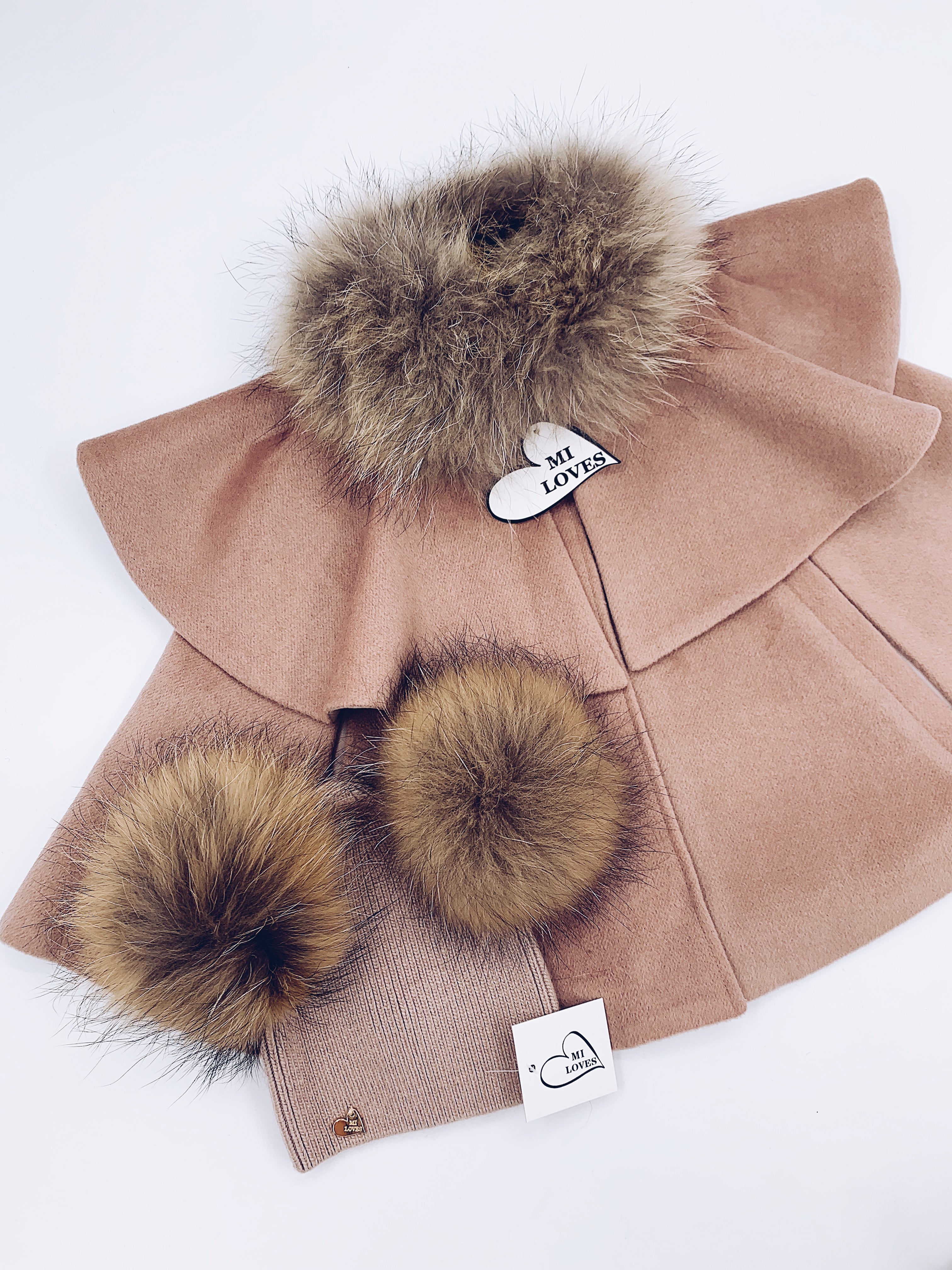 MI LOVES SIGNATURE LUXURIOUS CASHMERE CAPE WITH RACOON FUR TRIM in our Signature Cappuccino colour !!