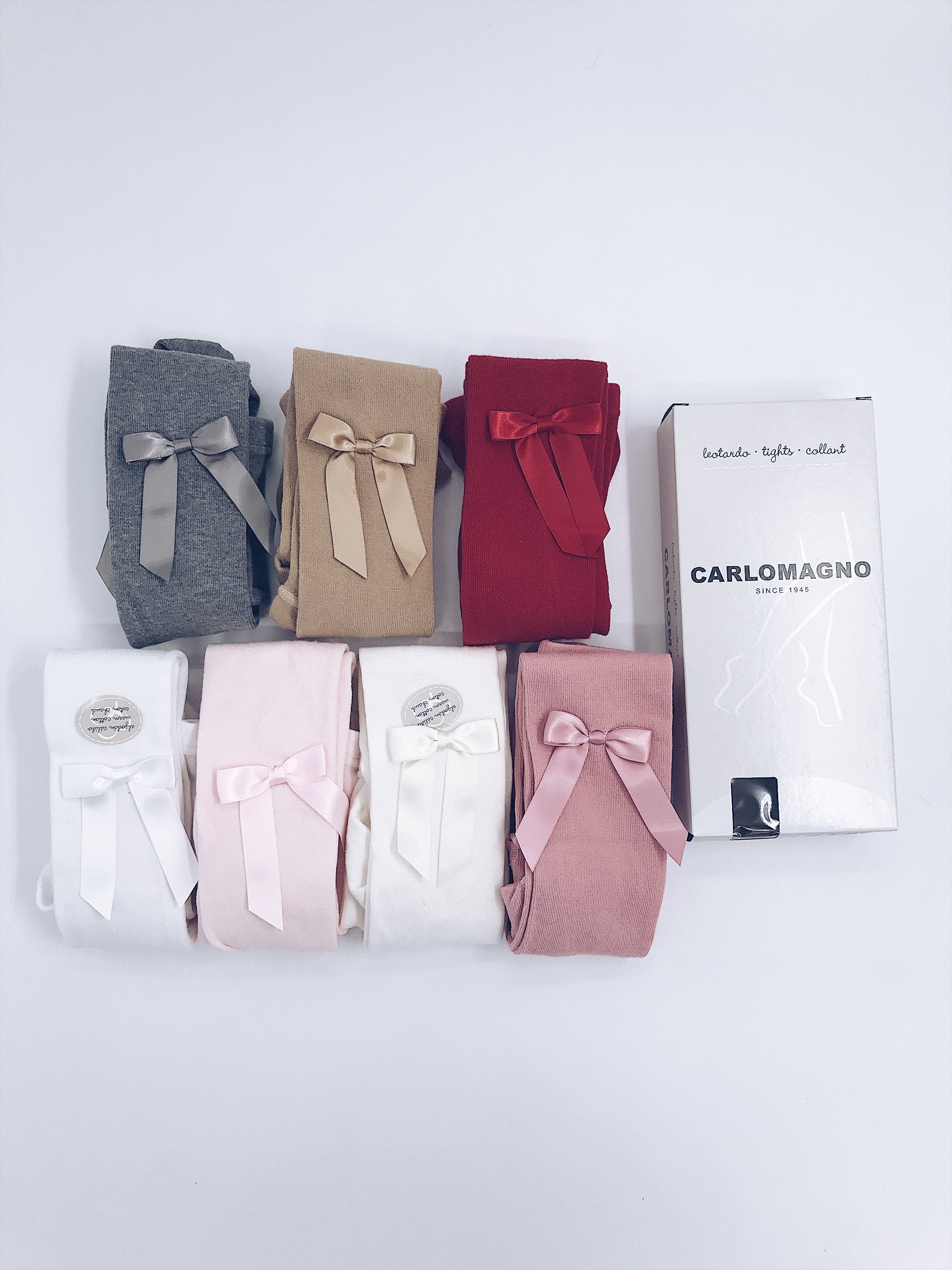 Carlomagno tights with atlas bows is must have item for little princesses.This tights is pretty but also soft and warm ,perfect for Autumn/winter season!!
