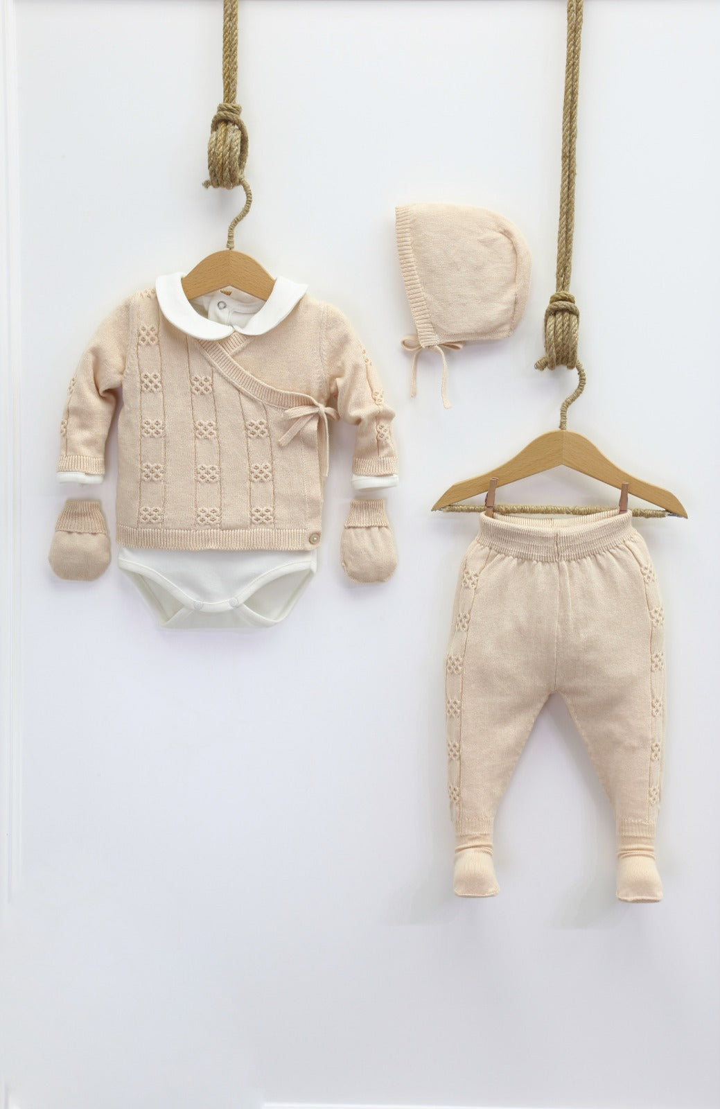 Beautiful Cappuccino Knitted Baby 5 piece set(Jumper/Trousers/Hat/Bodysuit/Mittens)