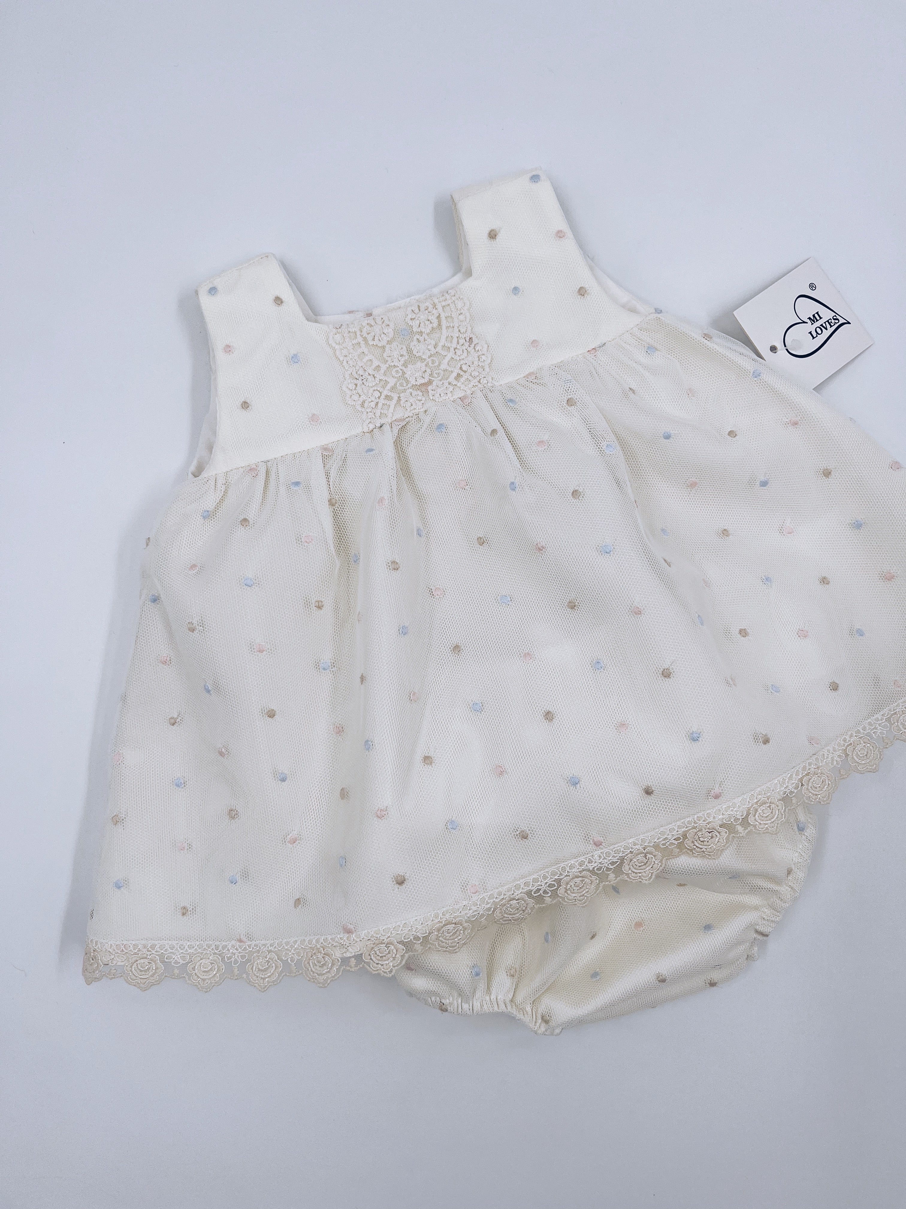 Beautiful Dress/Bloomers 2 piece set with lace details.
