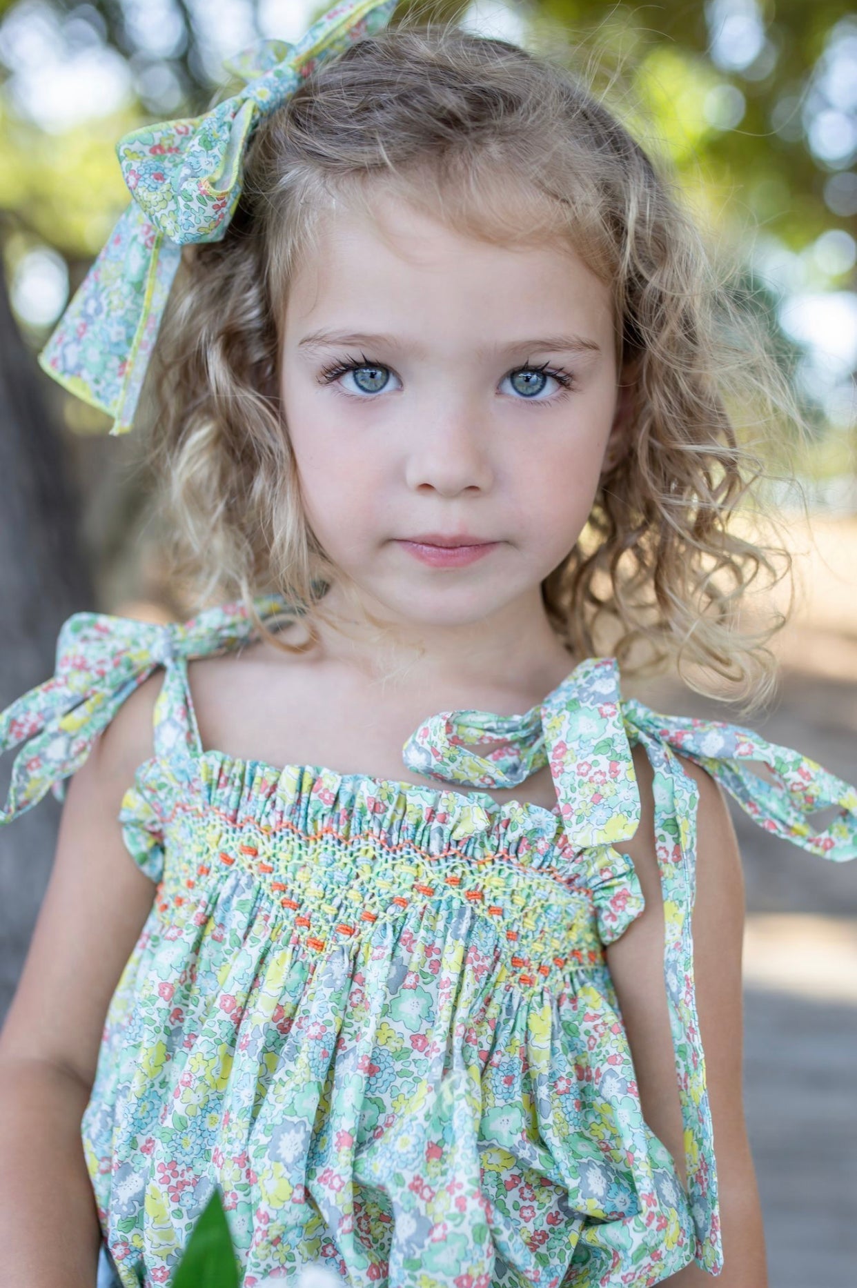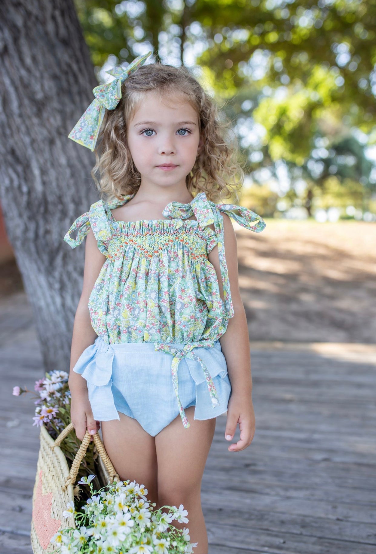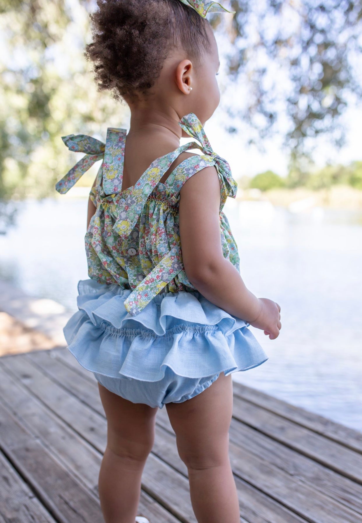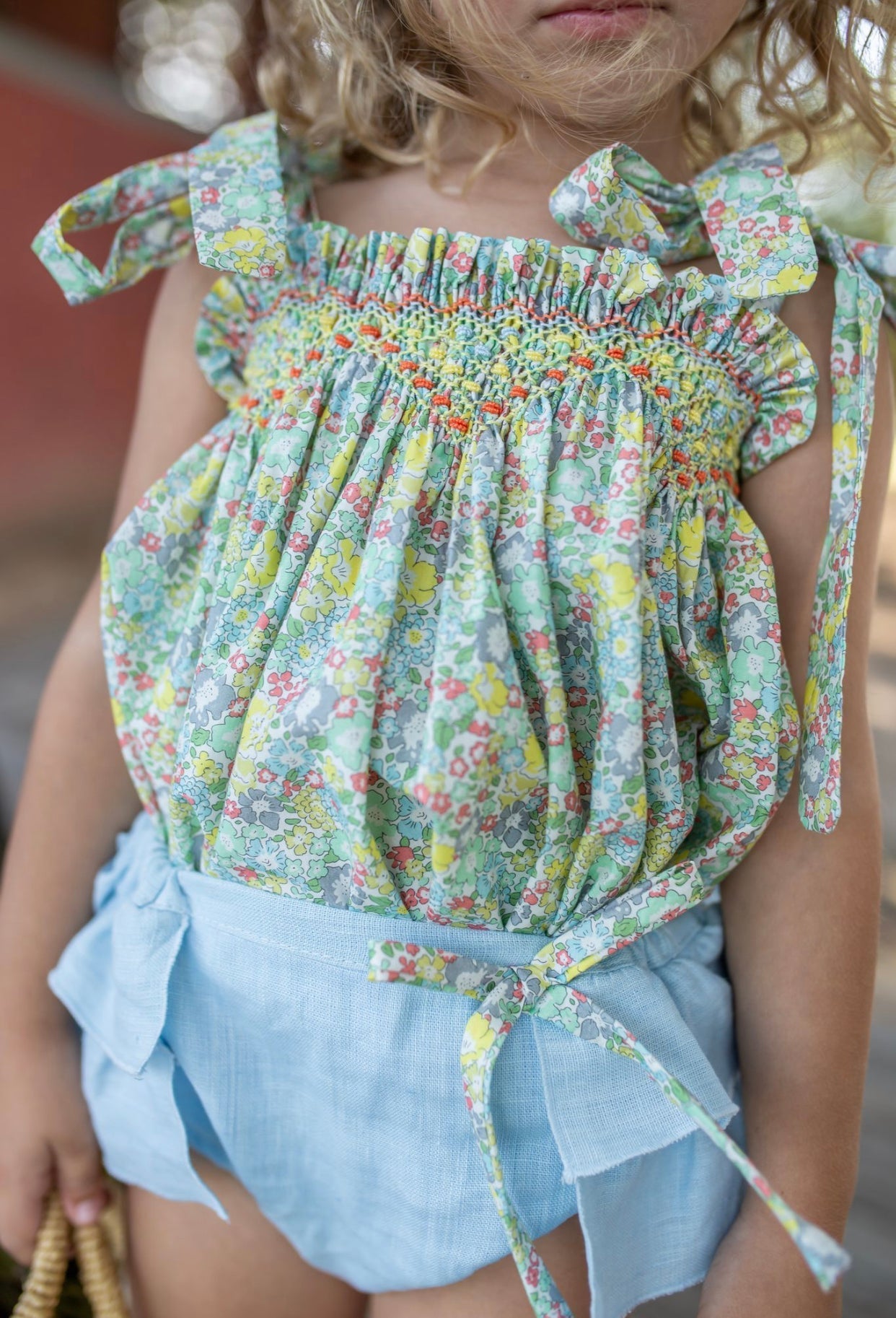 Beautiful Floral print Top and bloomers 2 piece set with Hand Smoked details.