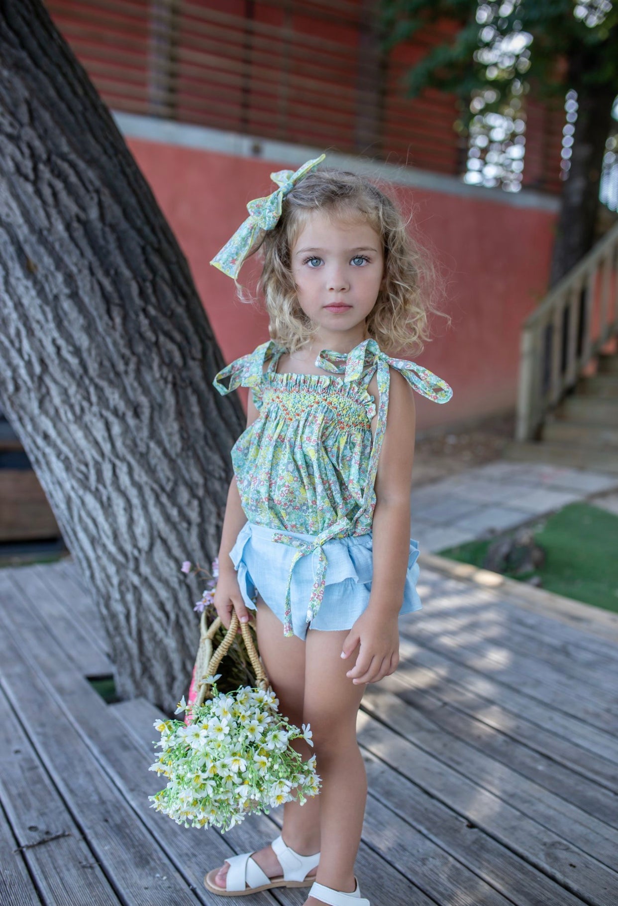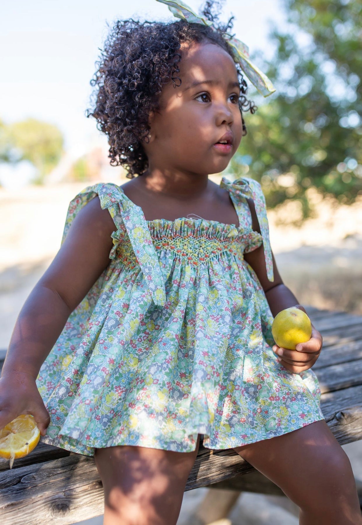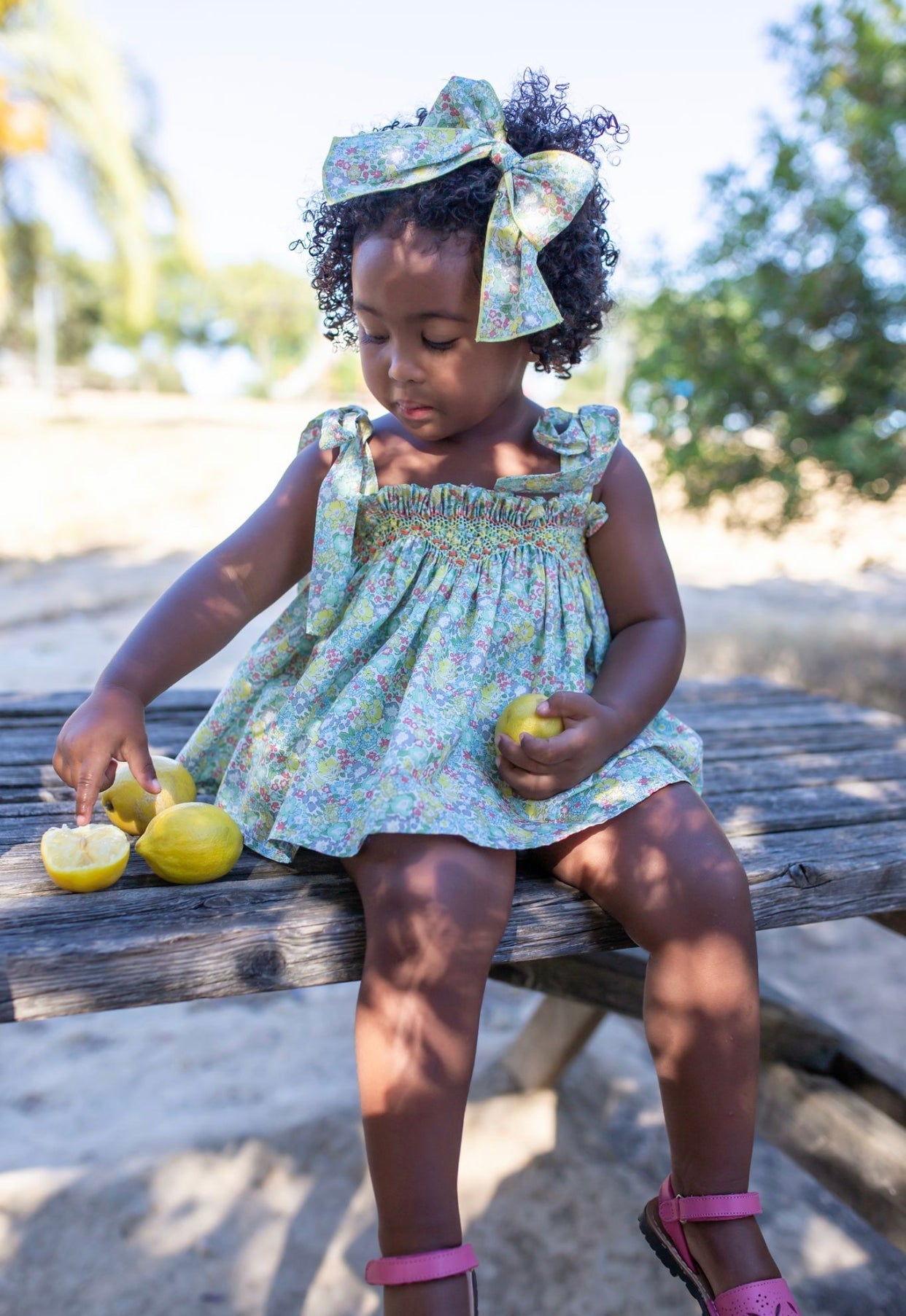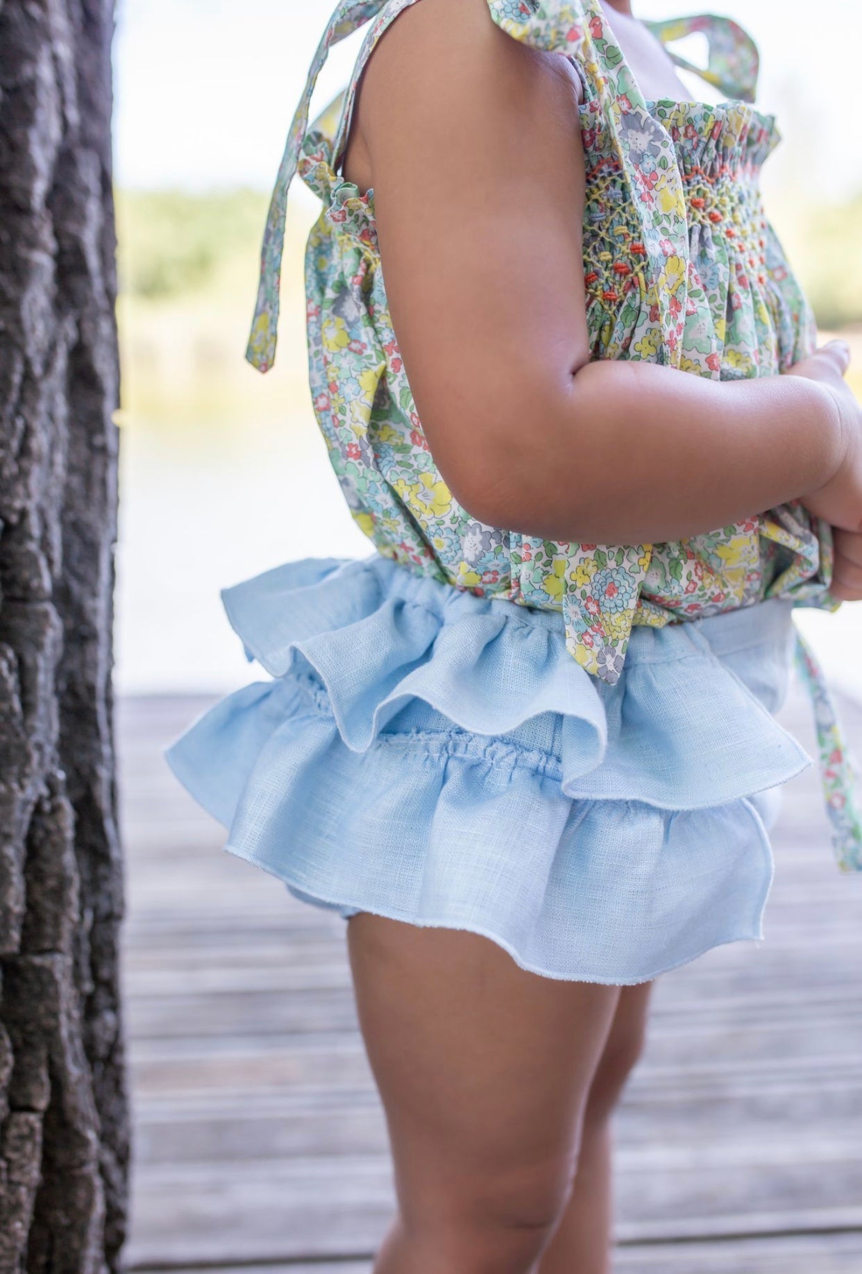 Beautiful Floral print Top and bloomers 2 piece set with Hand Smoked details.