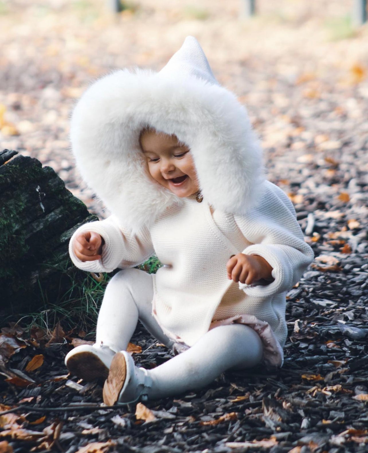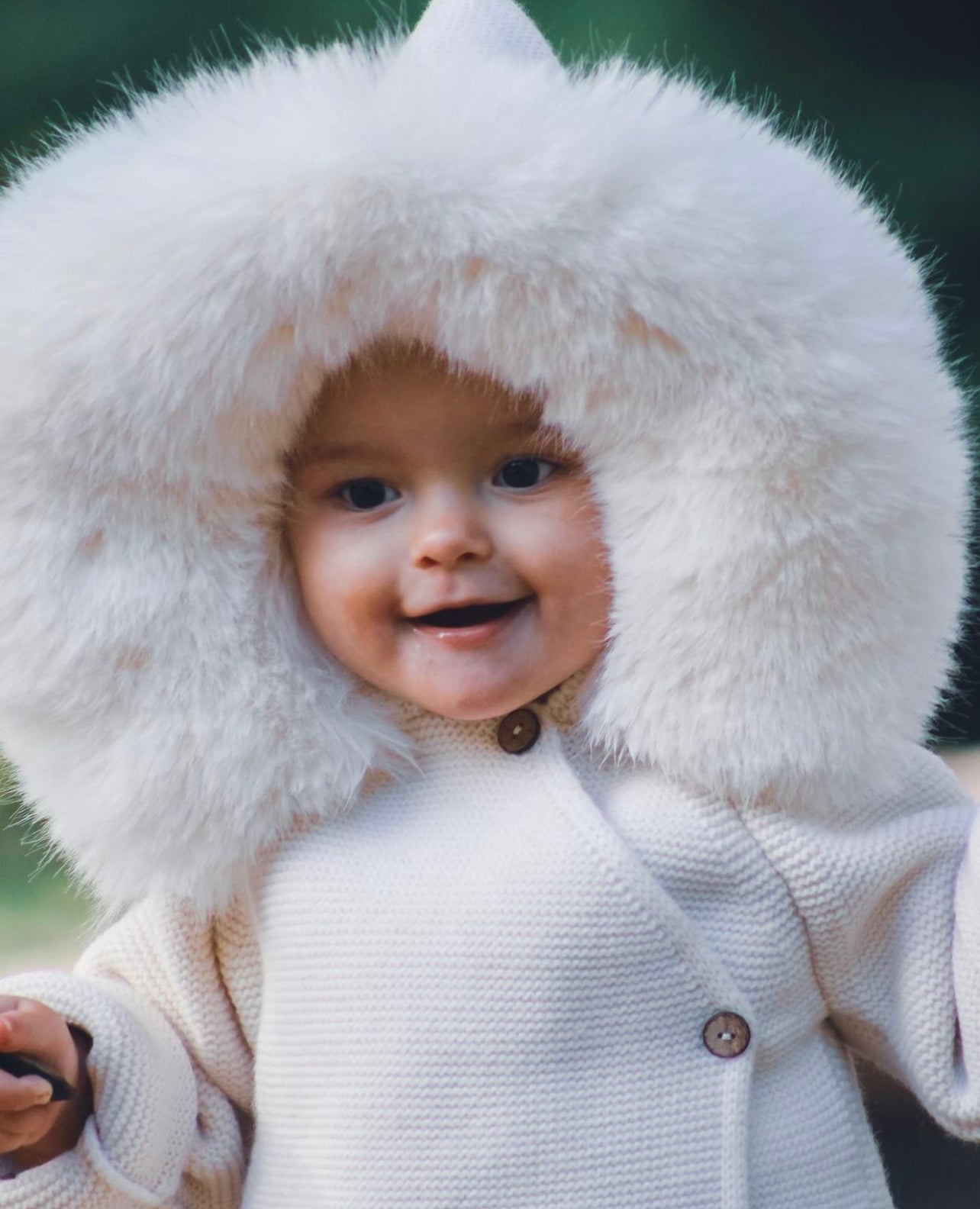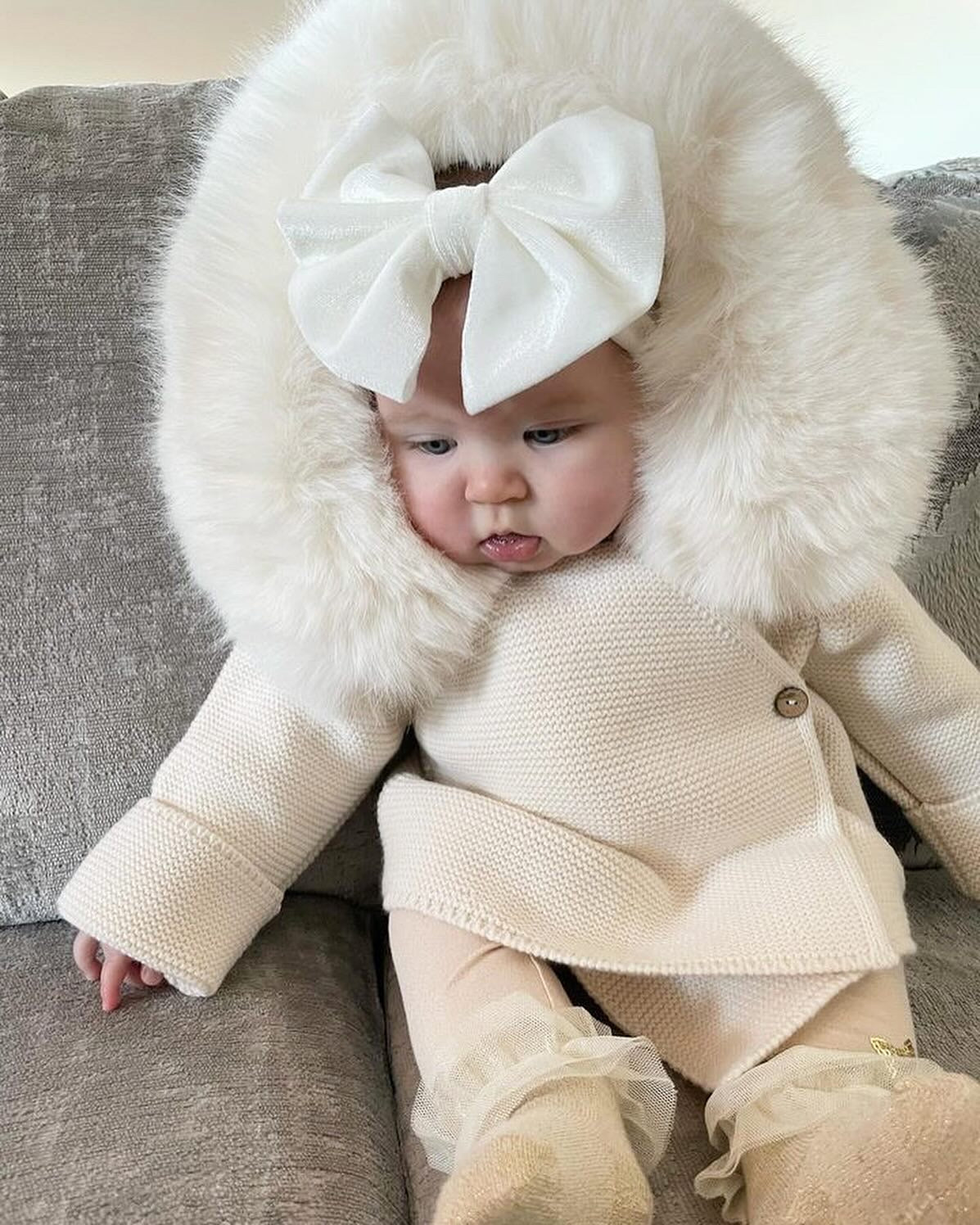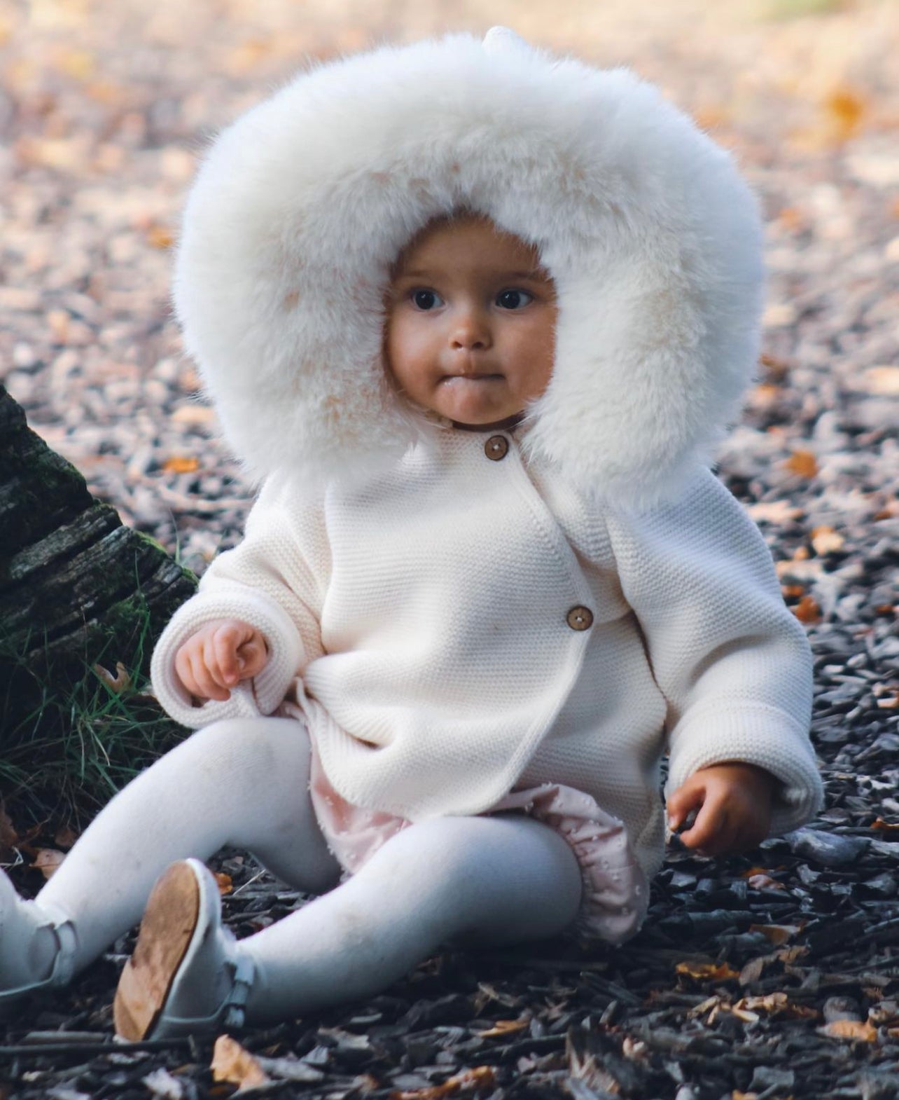 Beautiful Light Cream Knitted Cardigan with Synthetic fur trim.