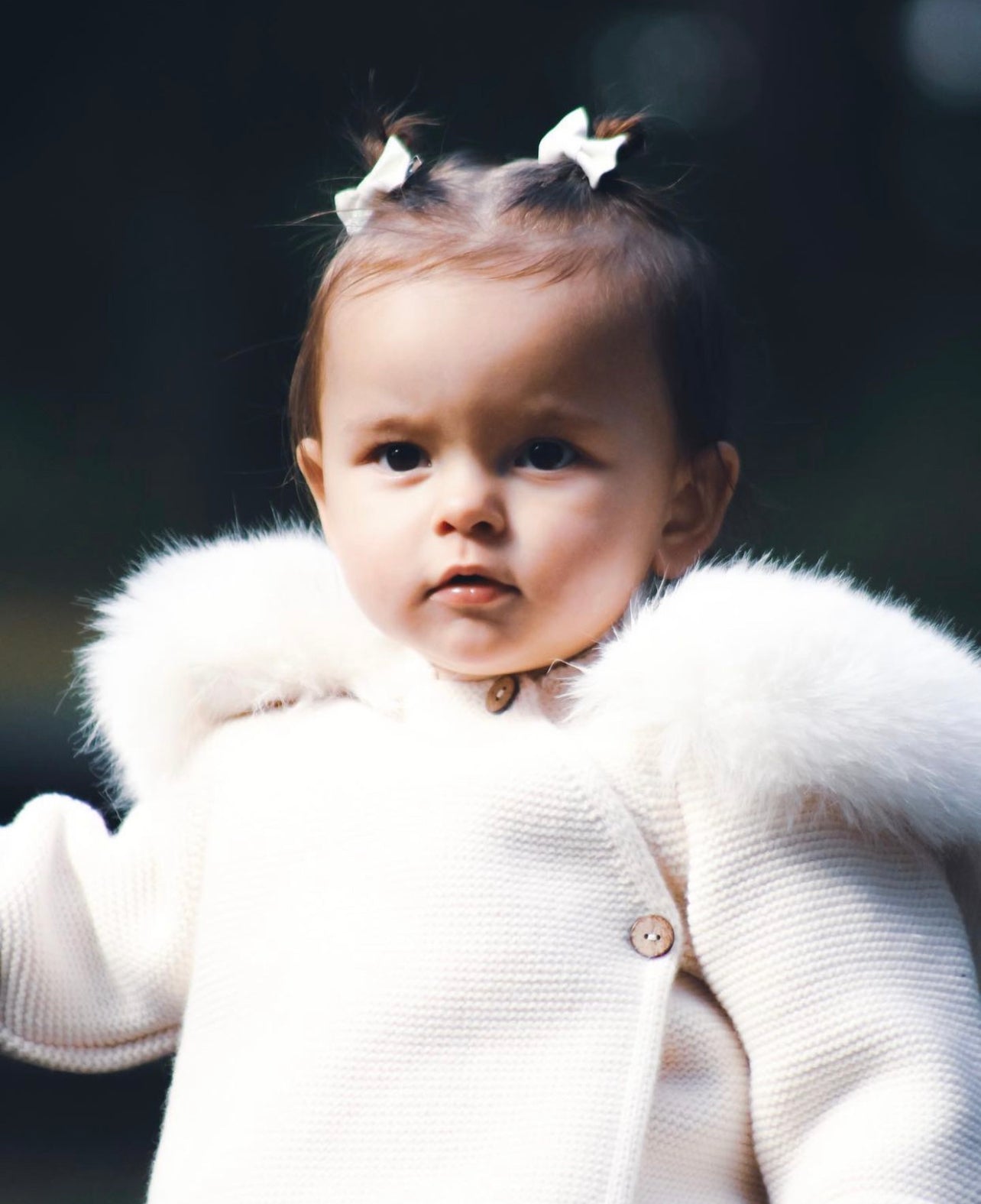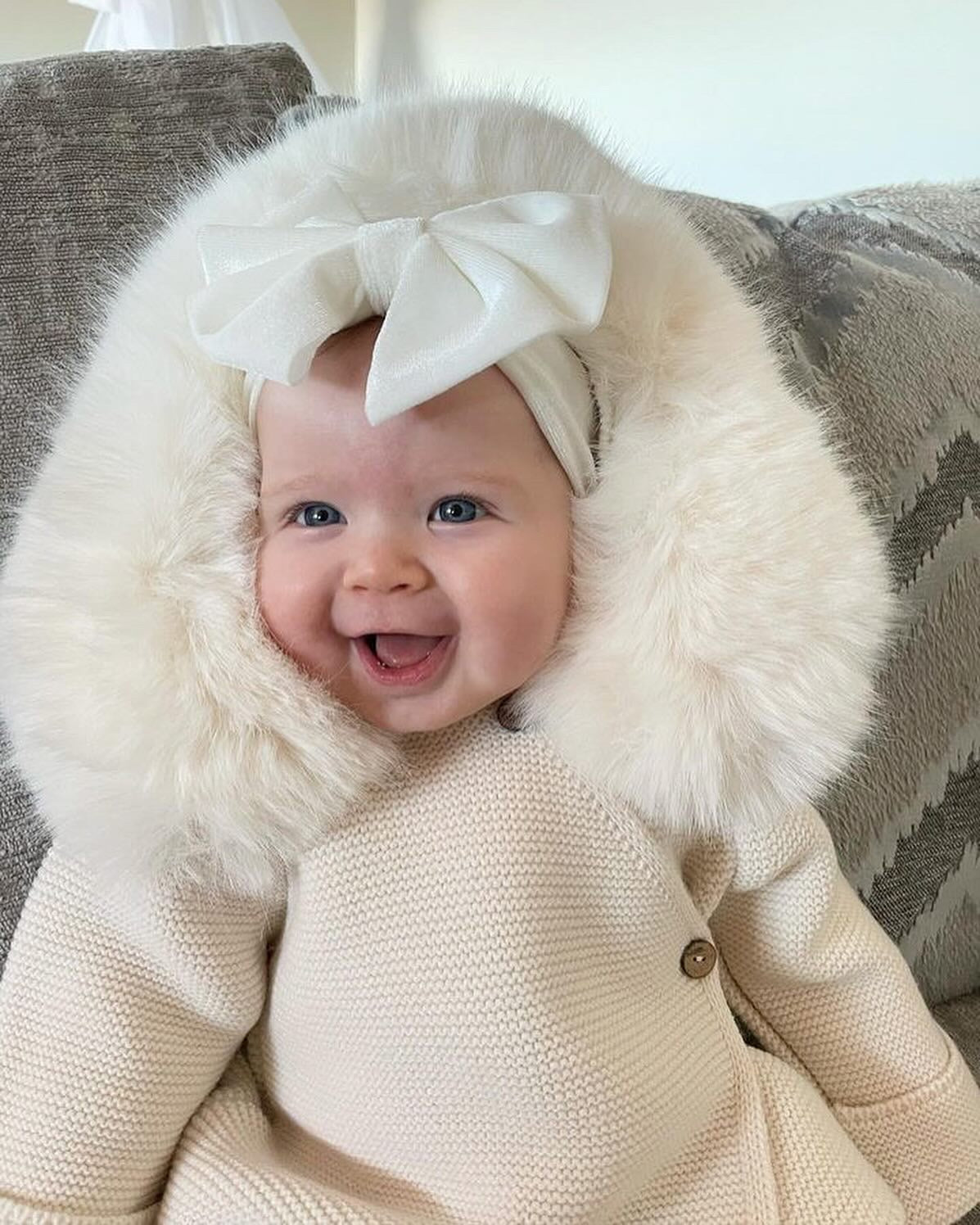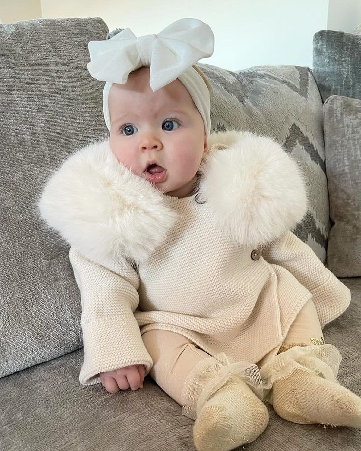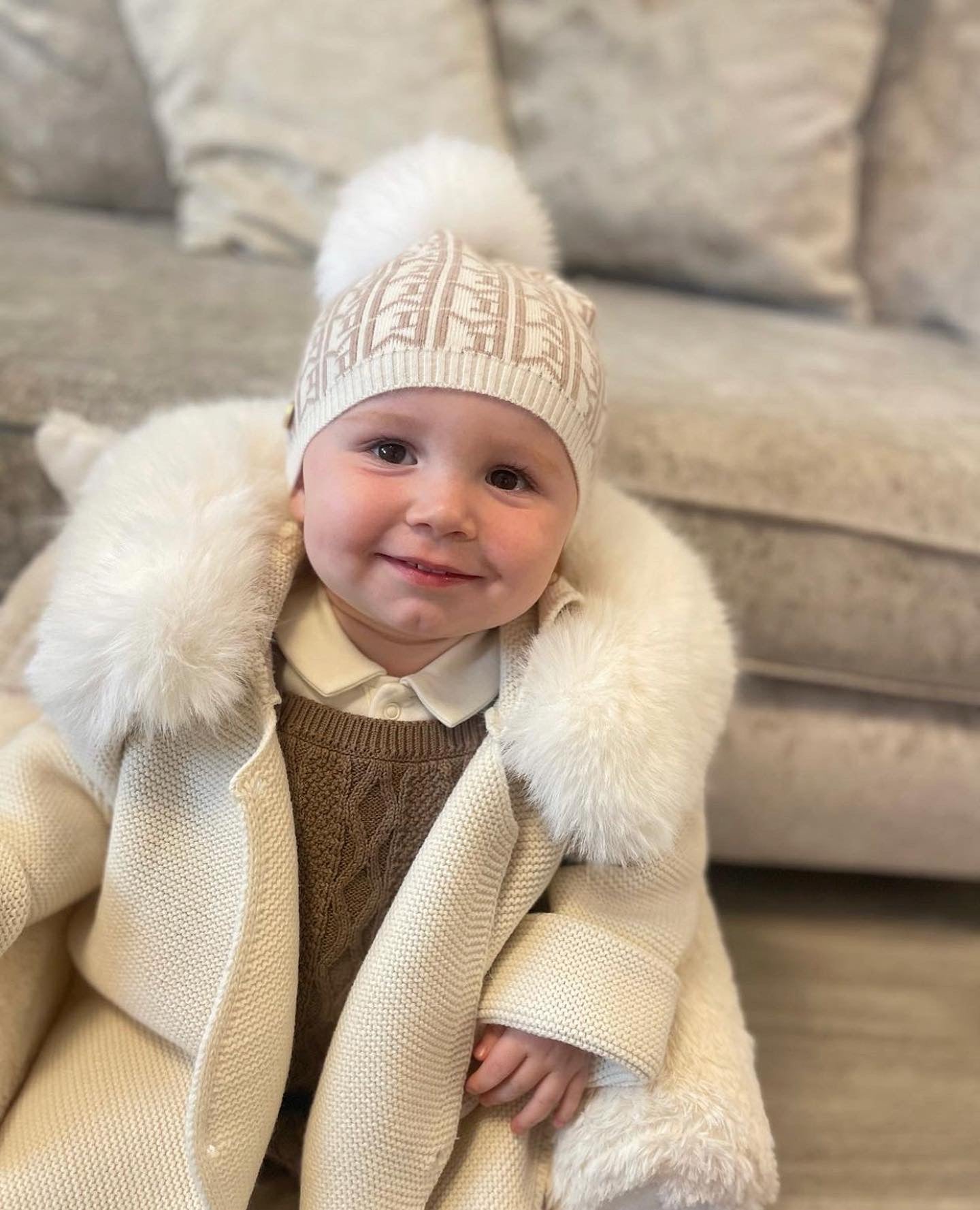 Beautiful Light Cream Knitted Cardigan with Synthetic fur trim.