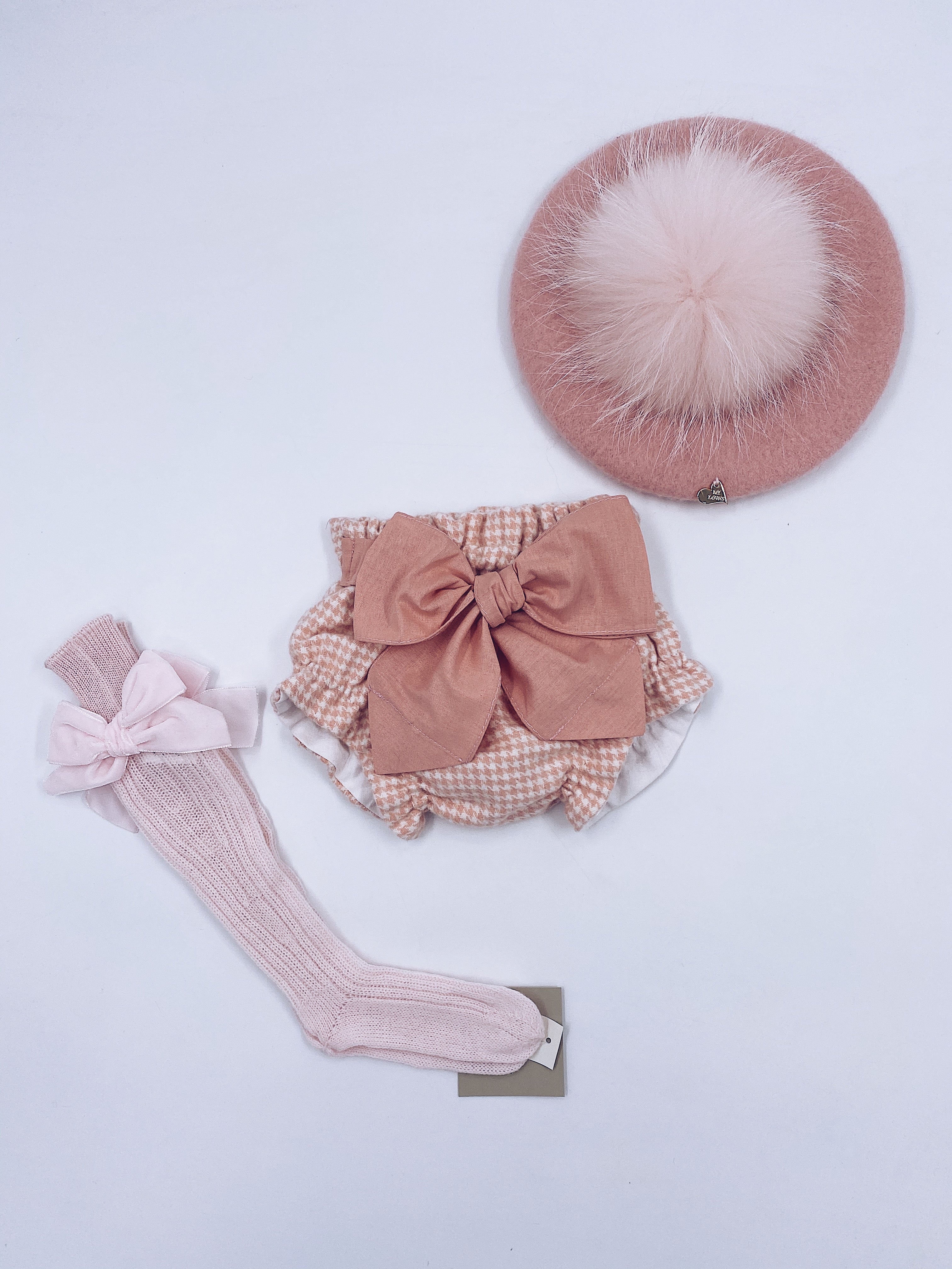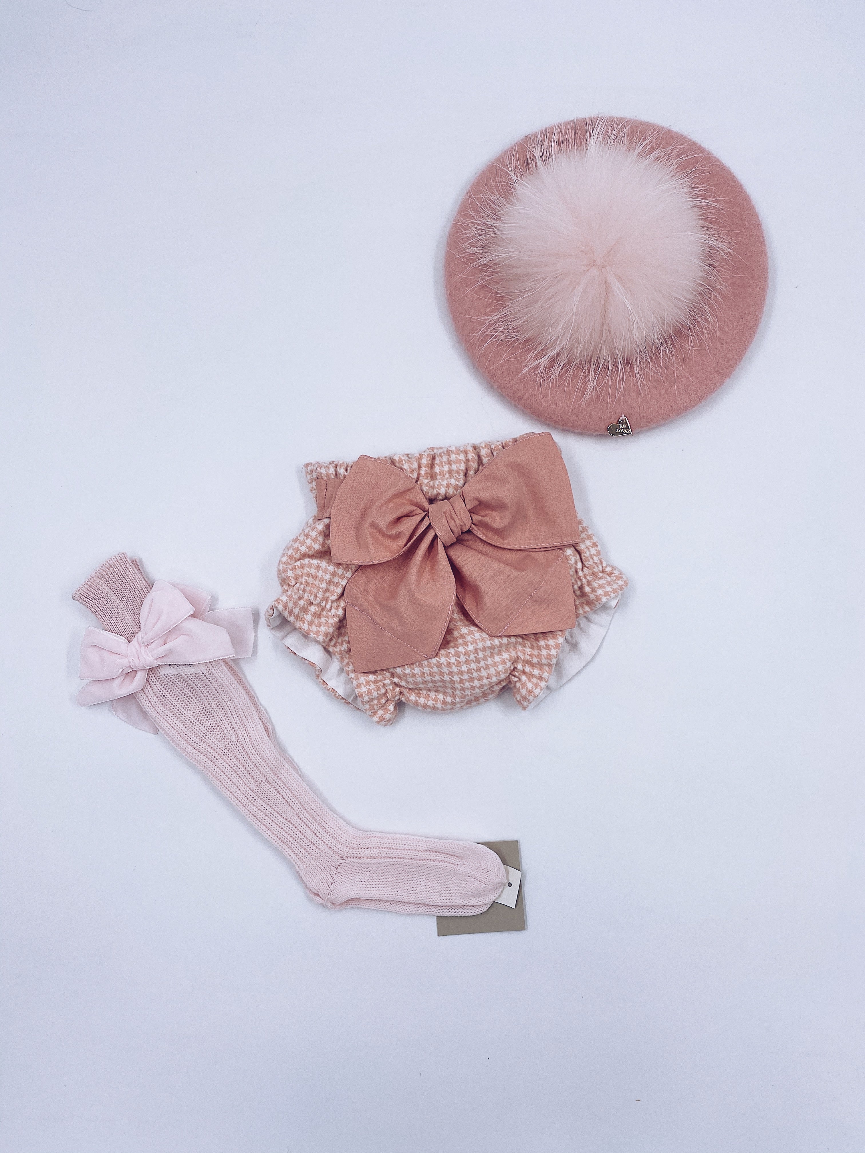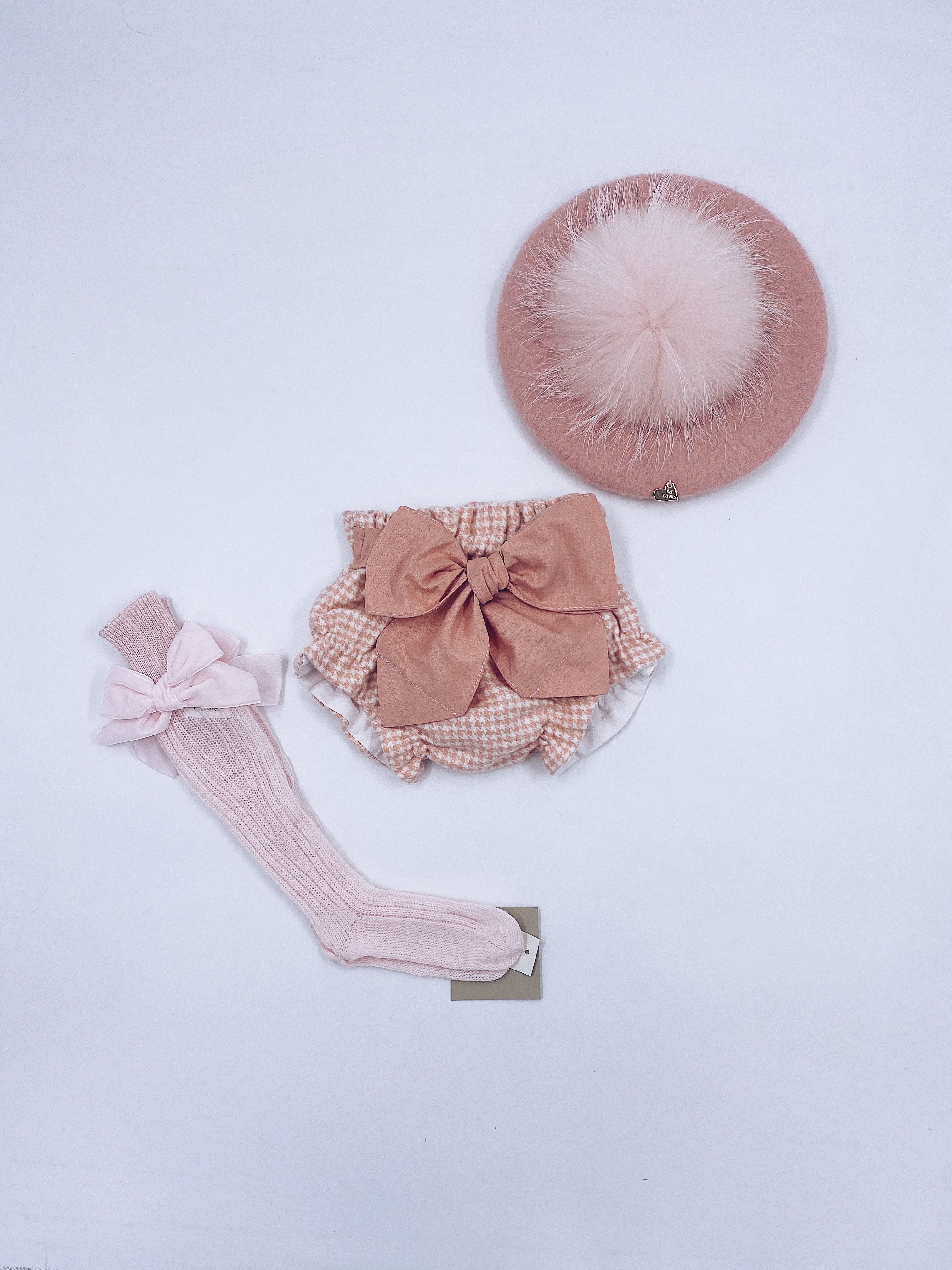 Pink knitted socks and Pompom beret (sold separately) also available on the website