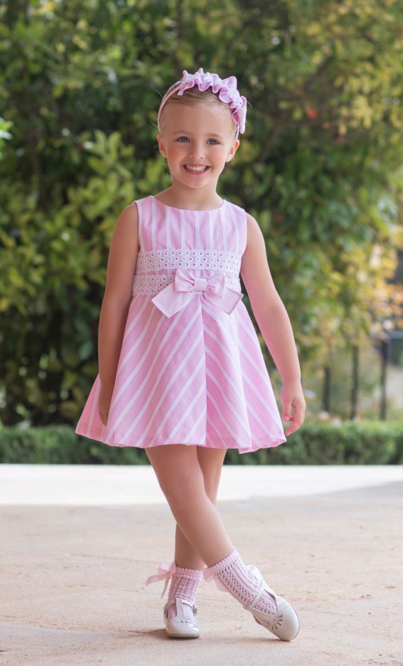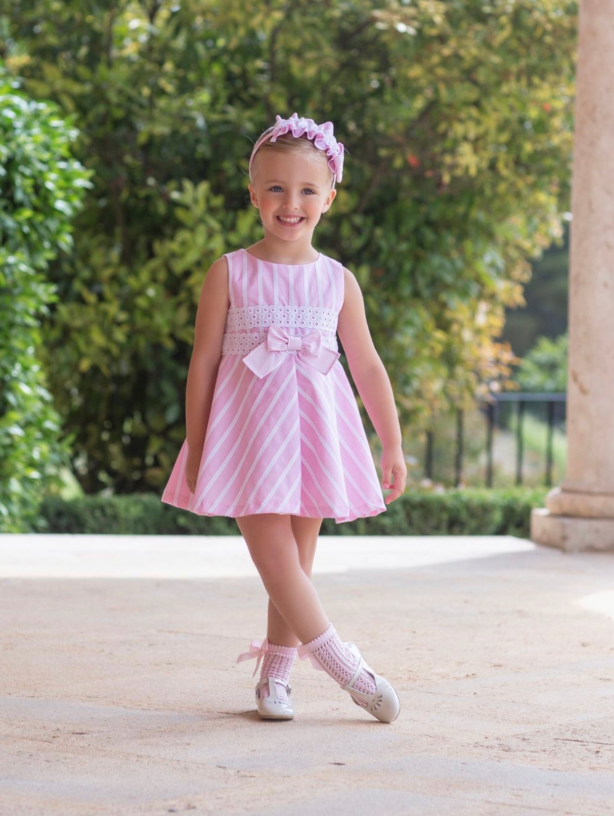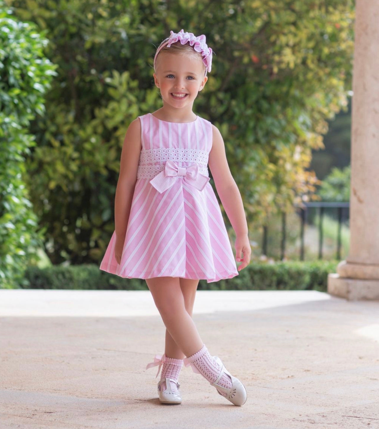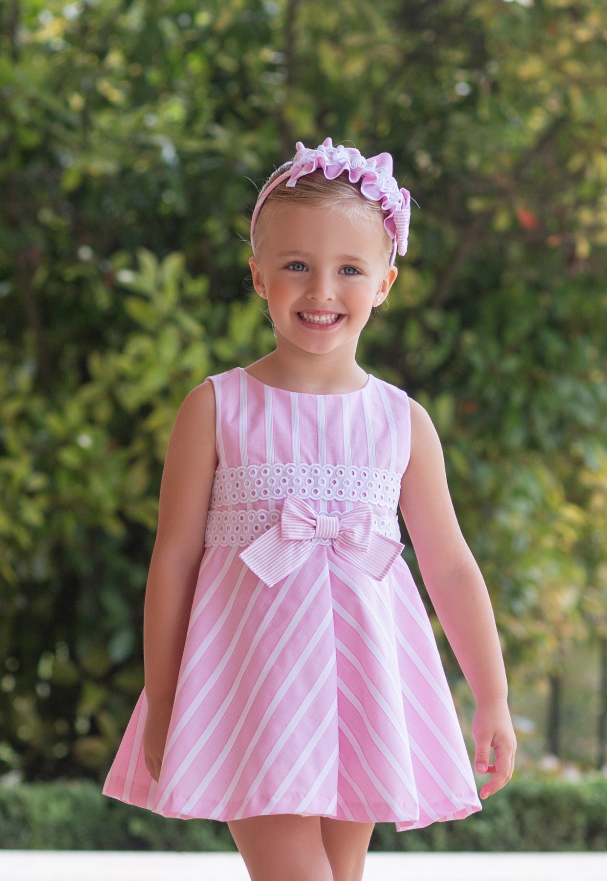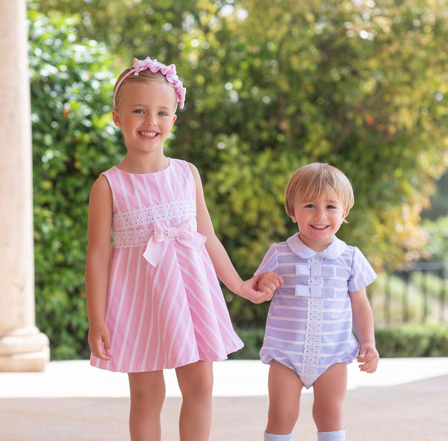 Beautiful pink Candy Stripe dress with bow details.