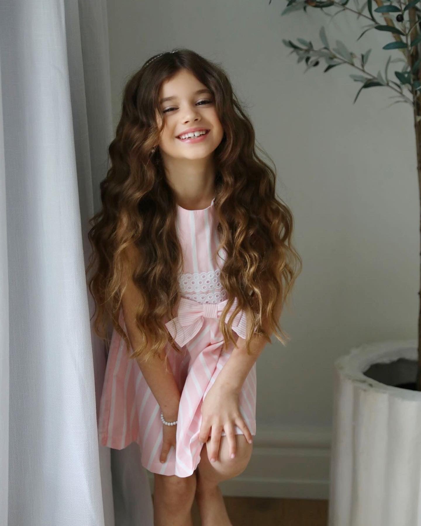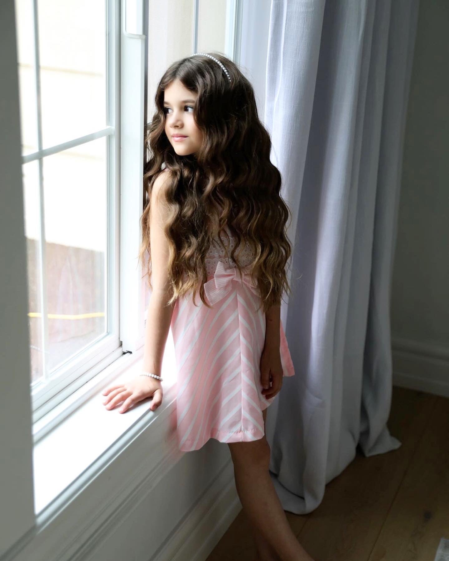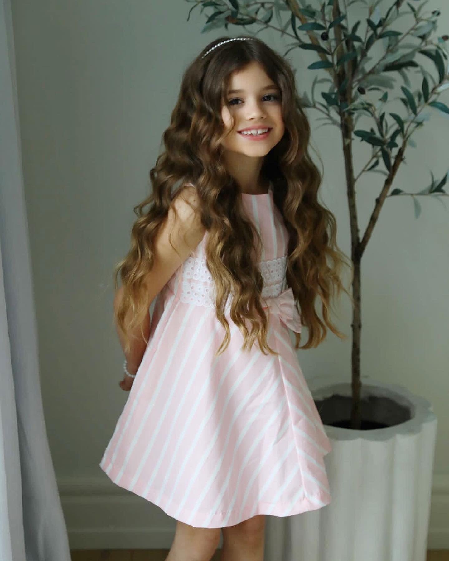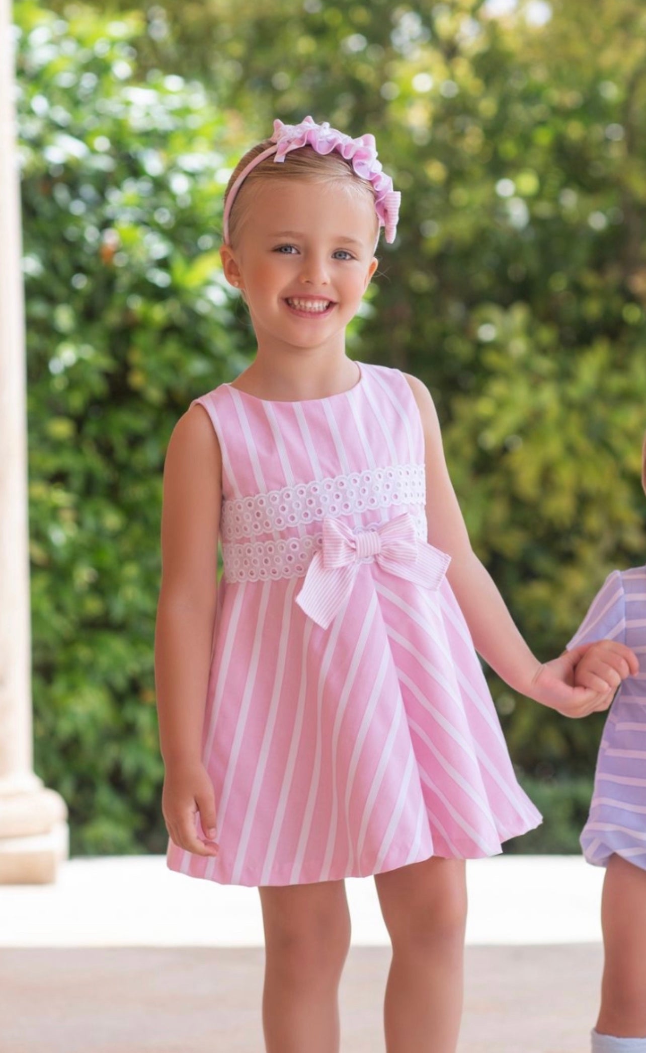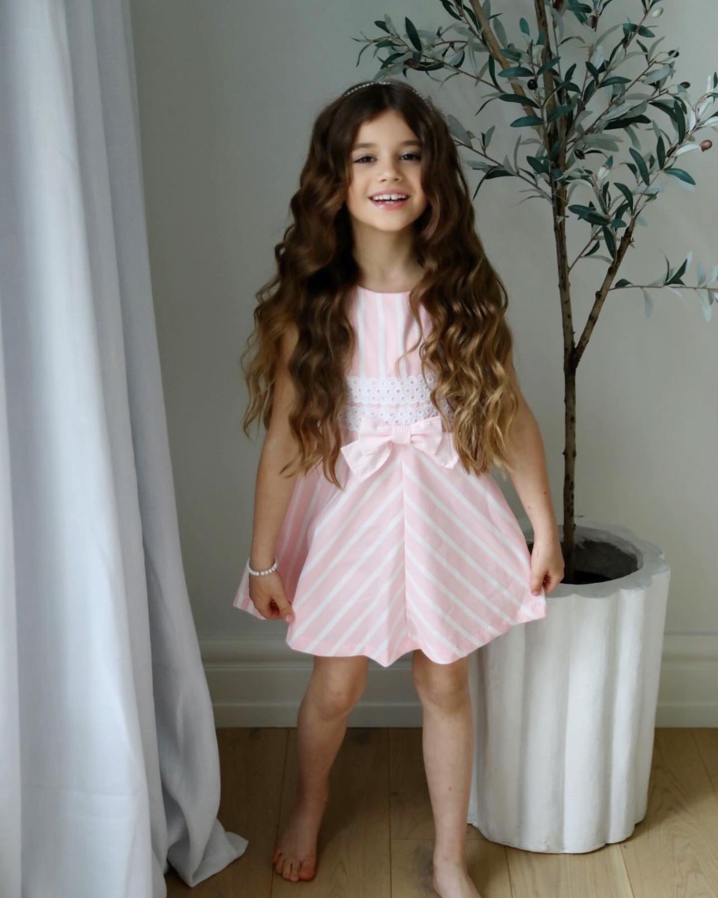 Beautiful pink Candy Stripe dress with bow details.