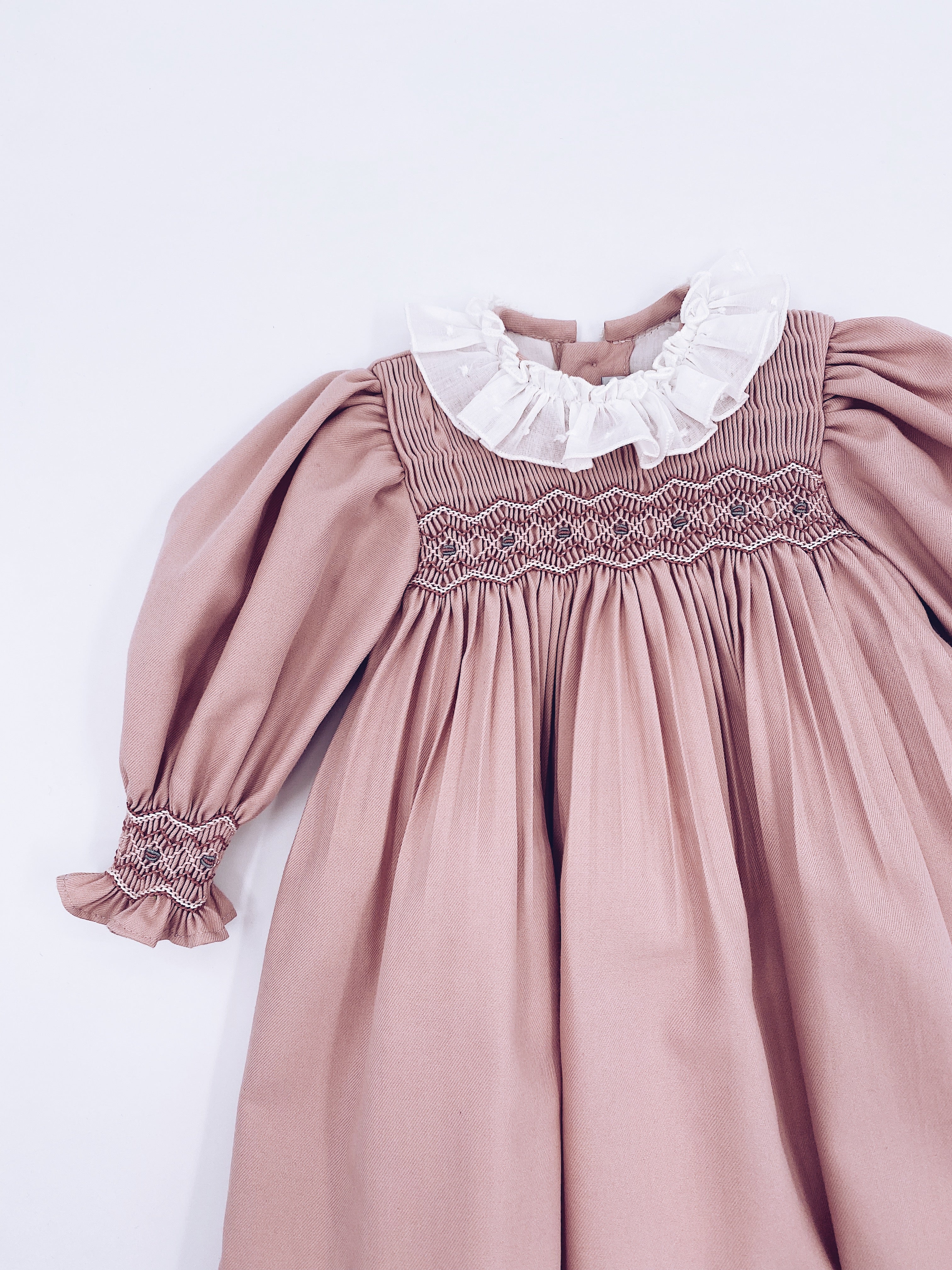 Beautiful ROYAL dusty pink dress with hand smoked details.