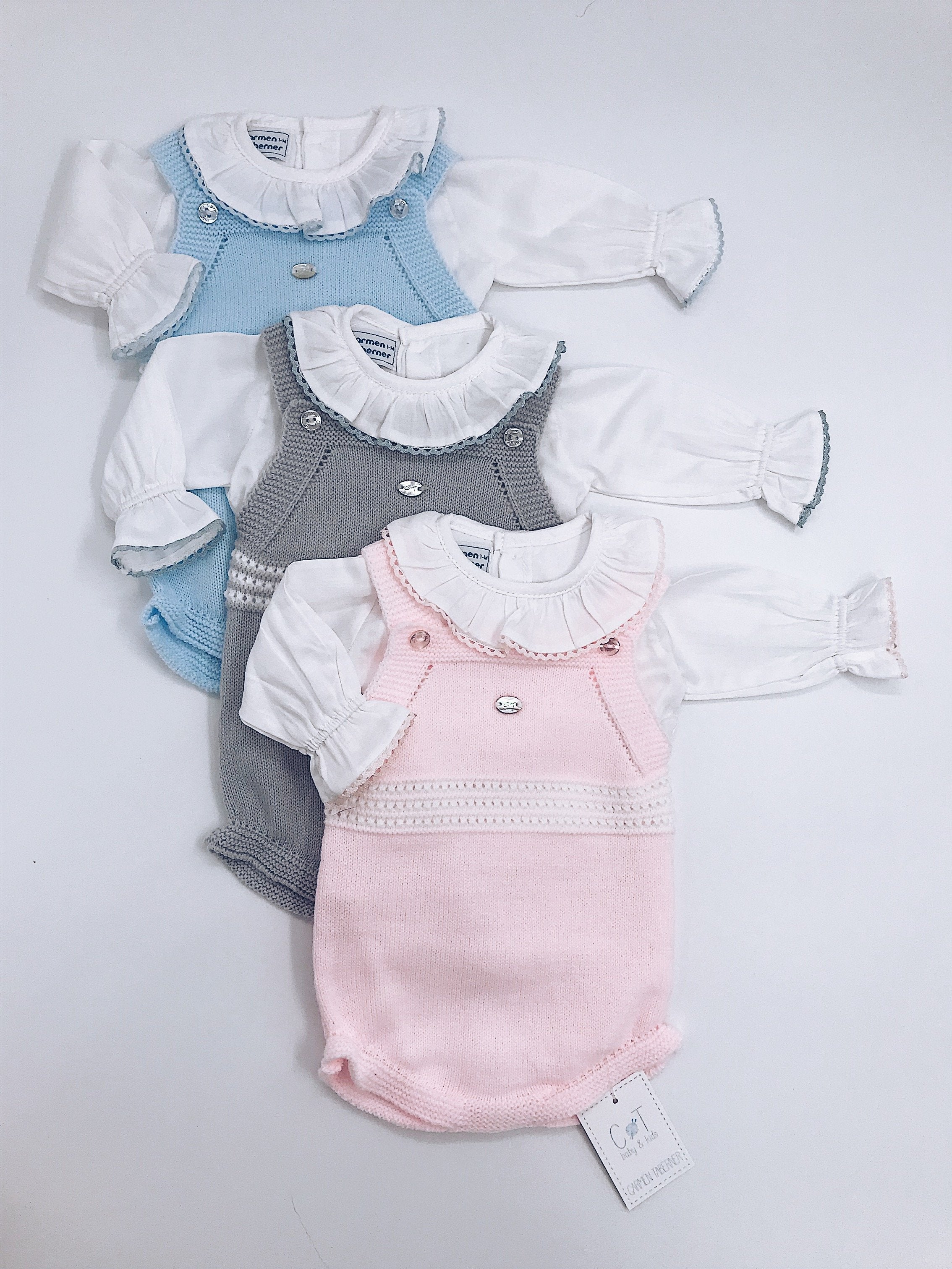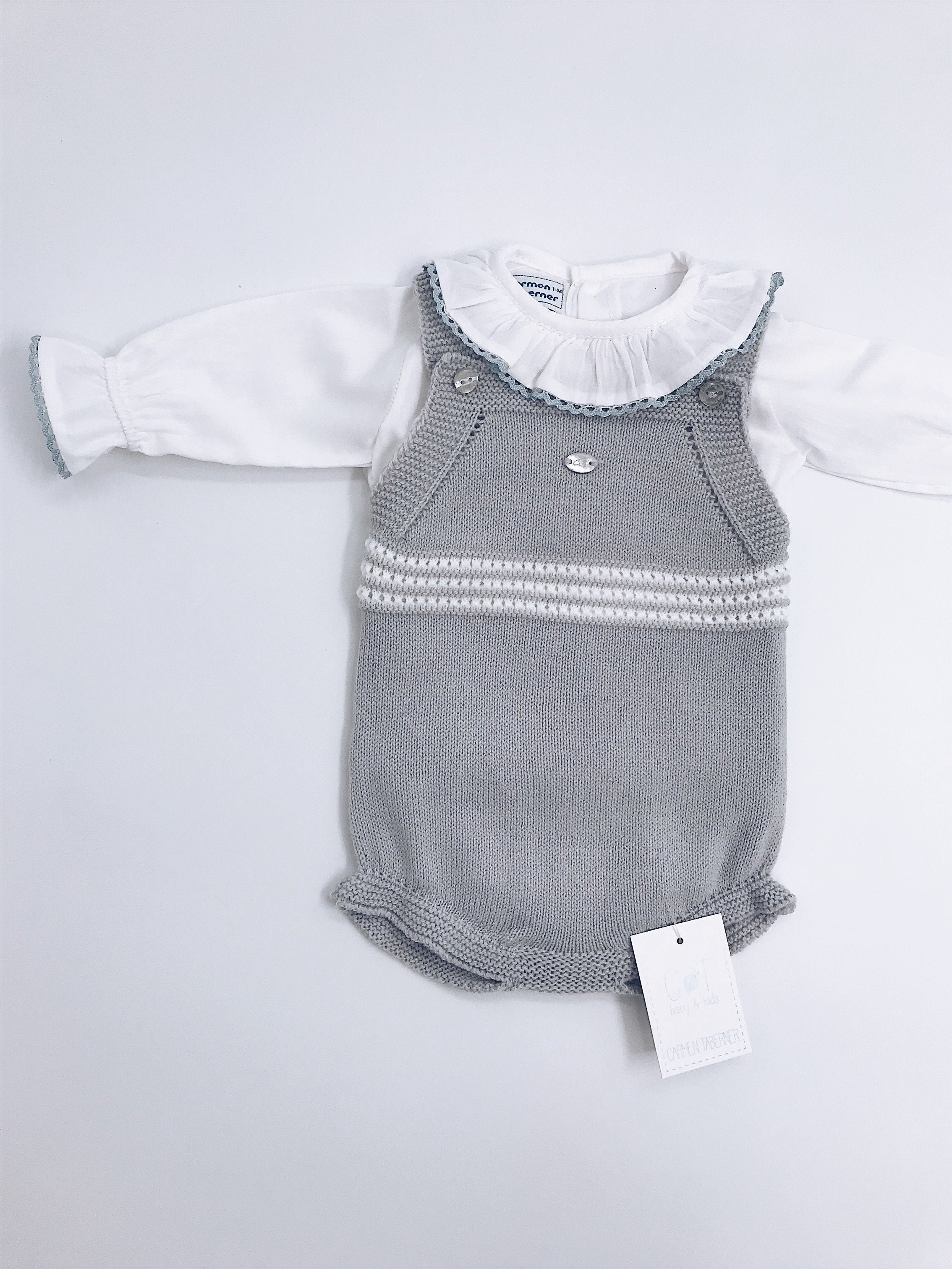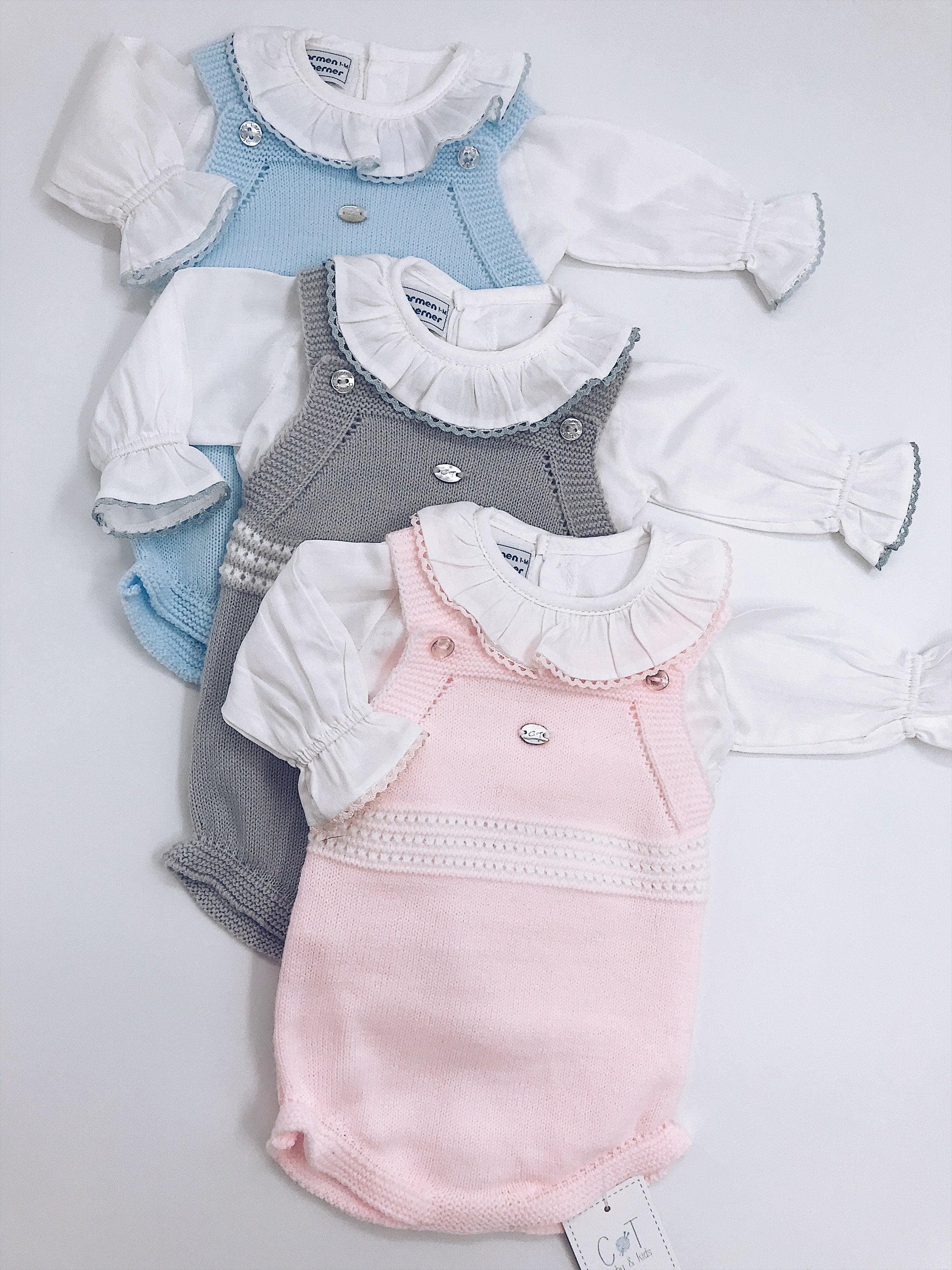 Carmen Taberner Knitted romper and Bodysuit/Blouse set.Beautiful ,silky smooth and soft set from one of the Best Spanish brands Carmen Taberner,if you are looking the Best quality items for your little bundle of joy look no further.