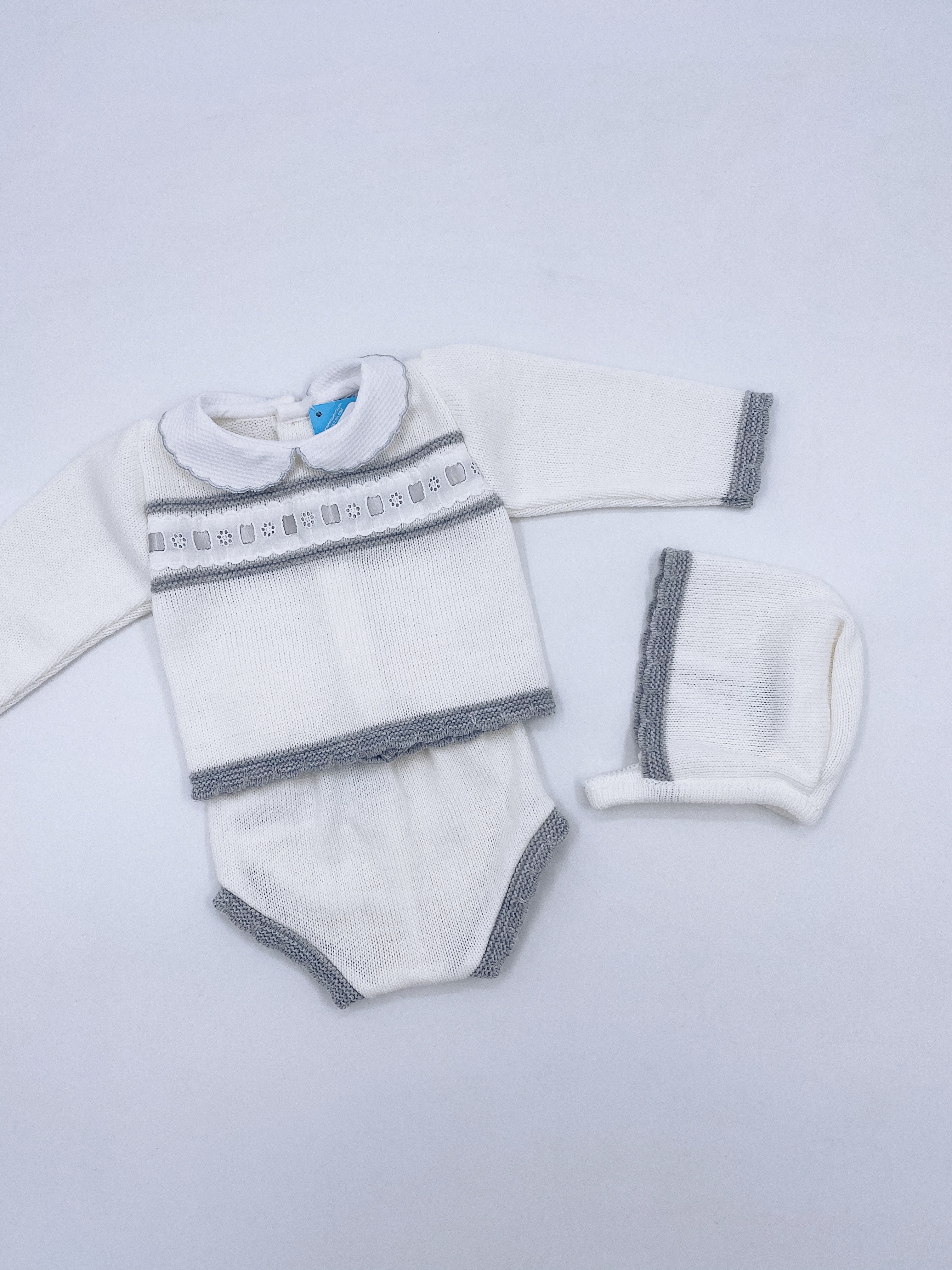 Knitted 3 piece baby set Top/Shorts/Bonnet (N154)