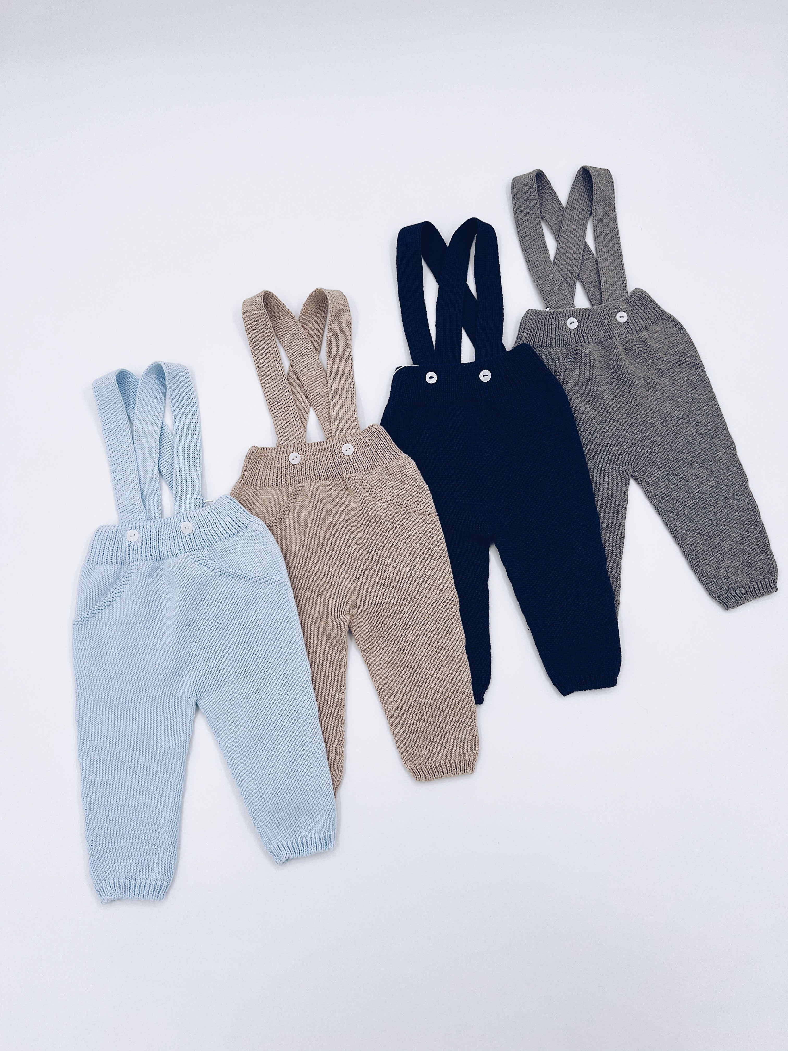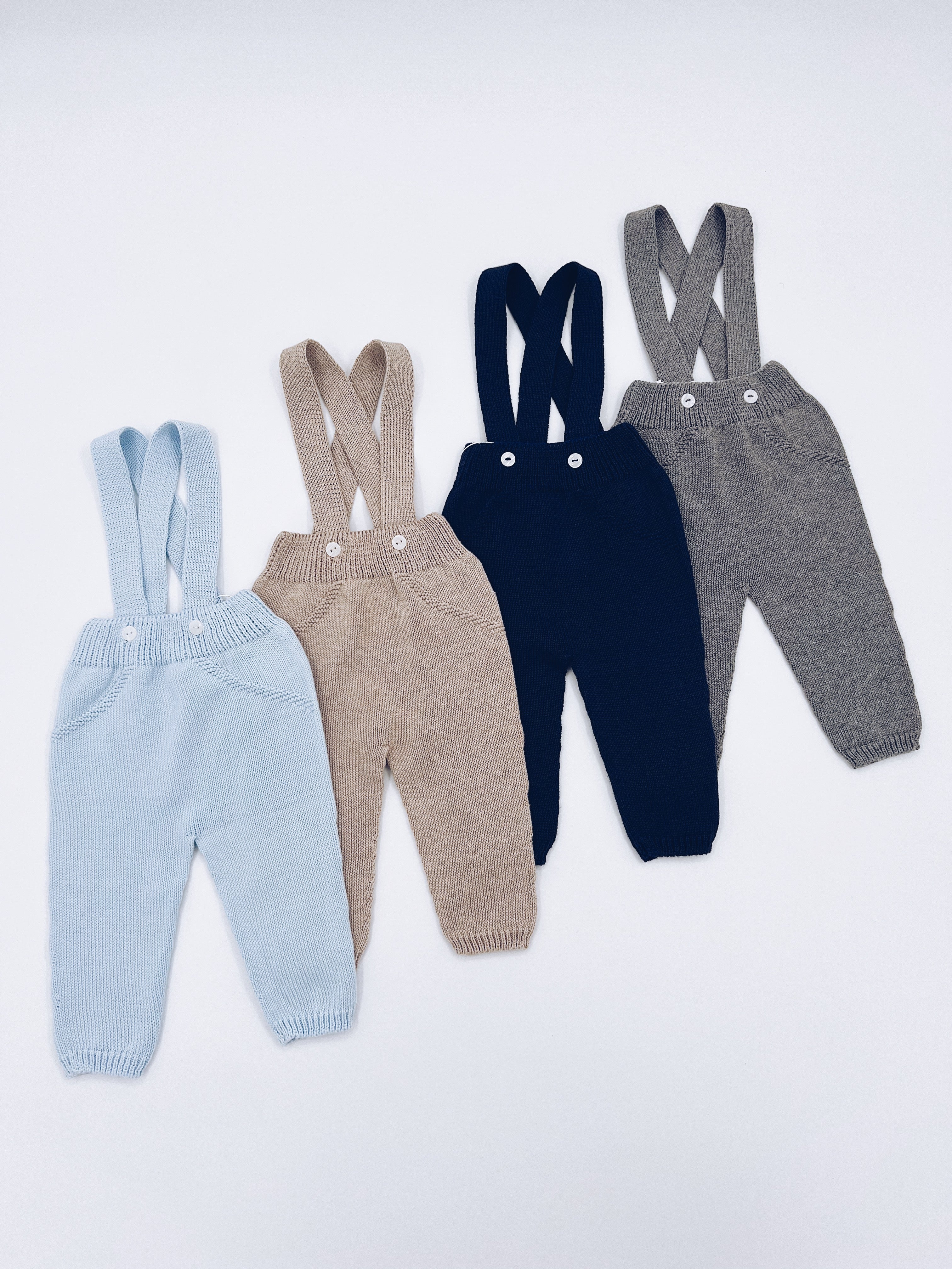 Knitted Dungarees.Very soft and comfortable, knitted dungarees have faux pocket detail on the front and button-fastening shoulder straps.