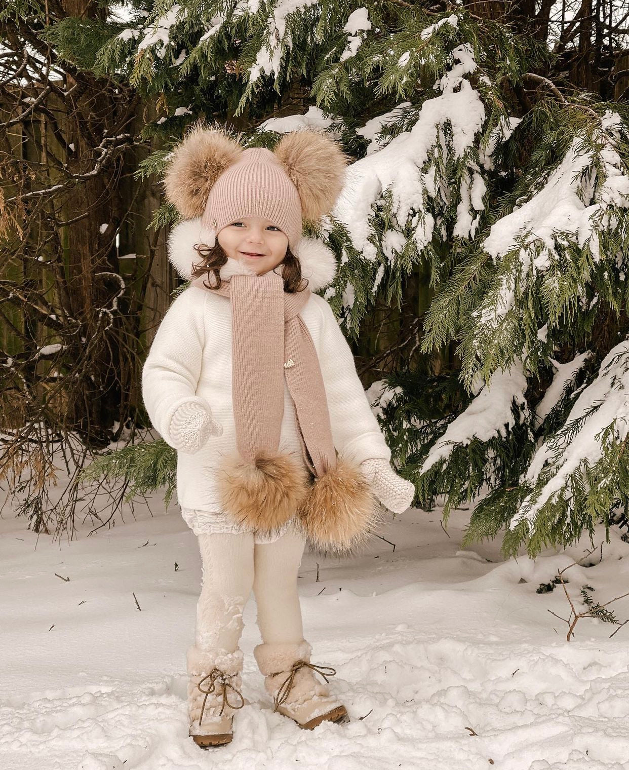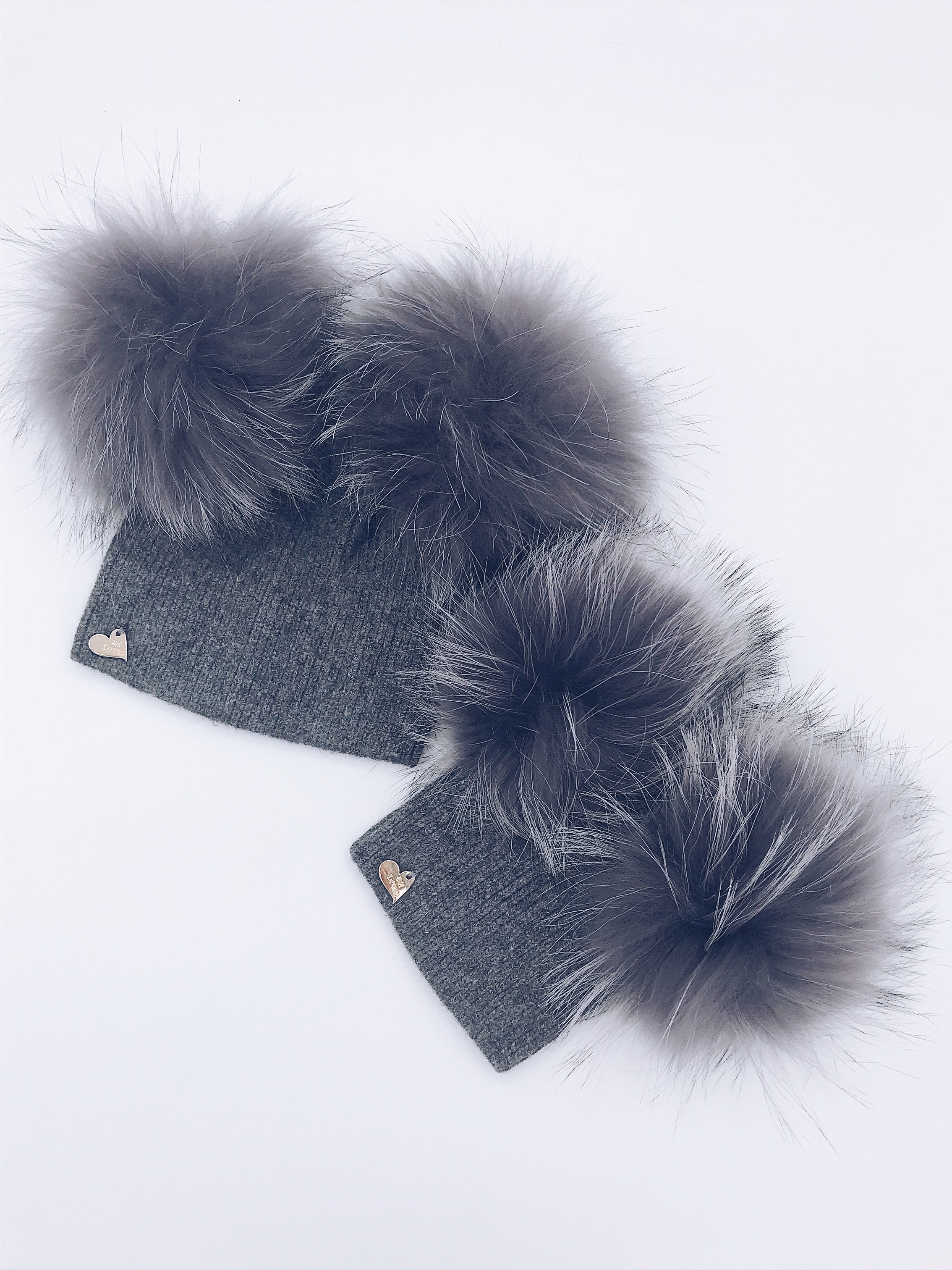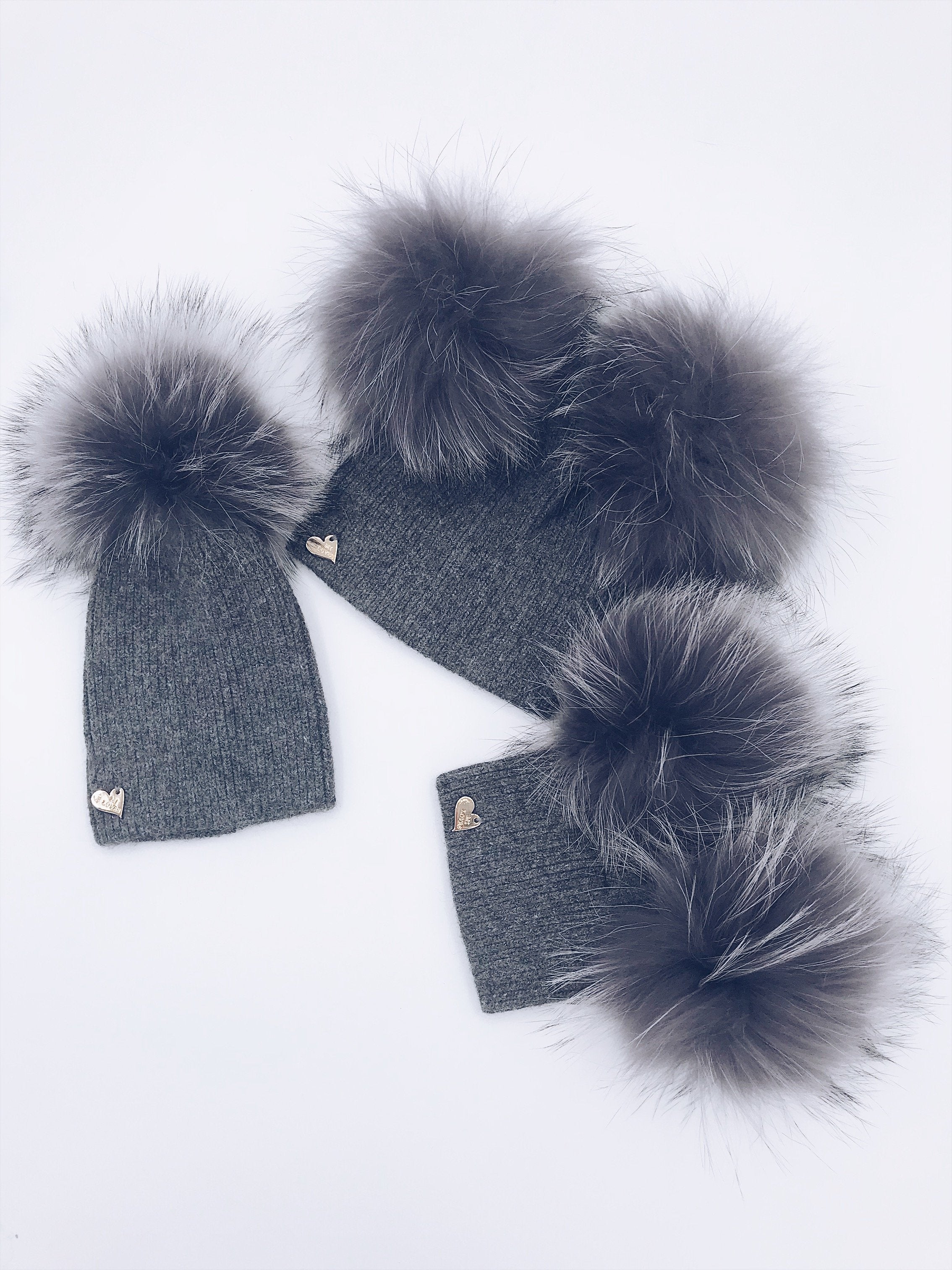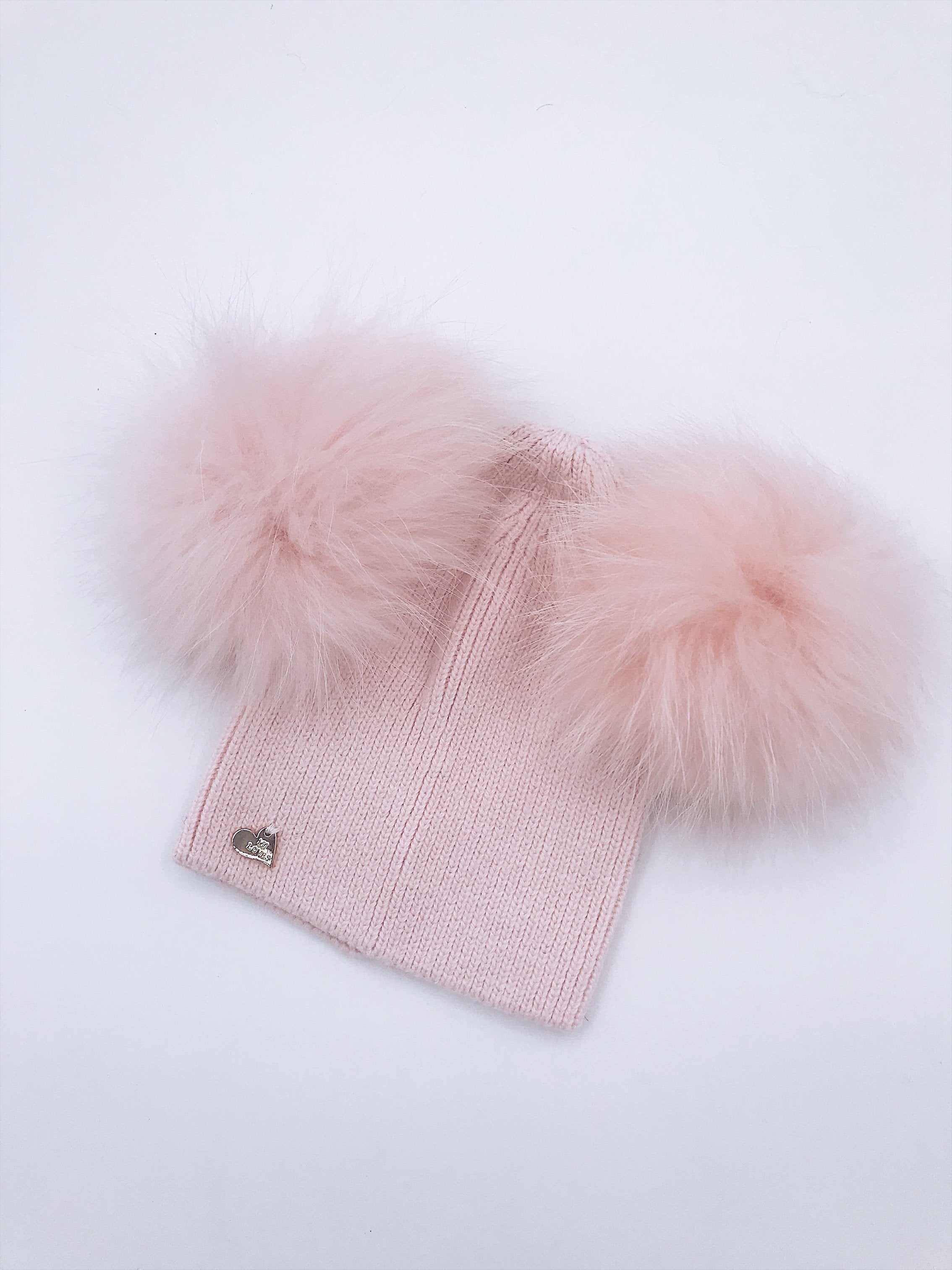 MI LOVES Signature Kids Angora Double pompom hat .Super Soft and warm ,perfect for winter days.