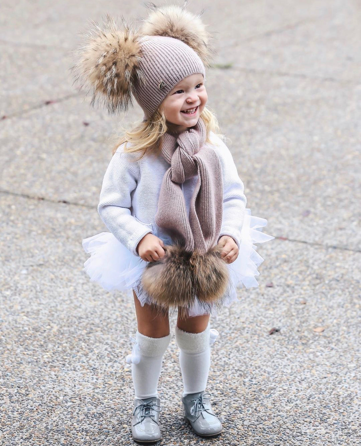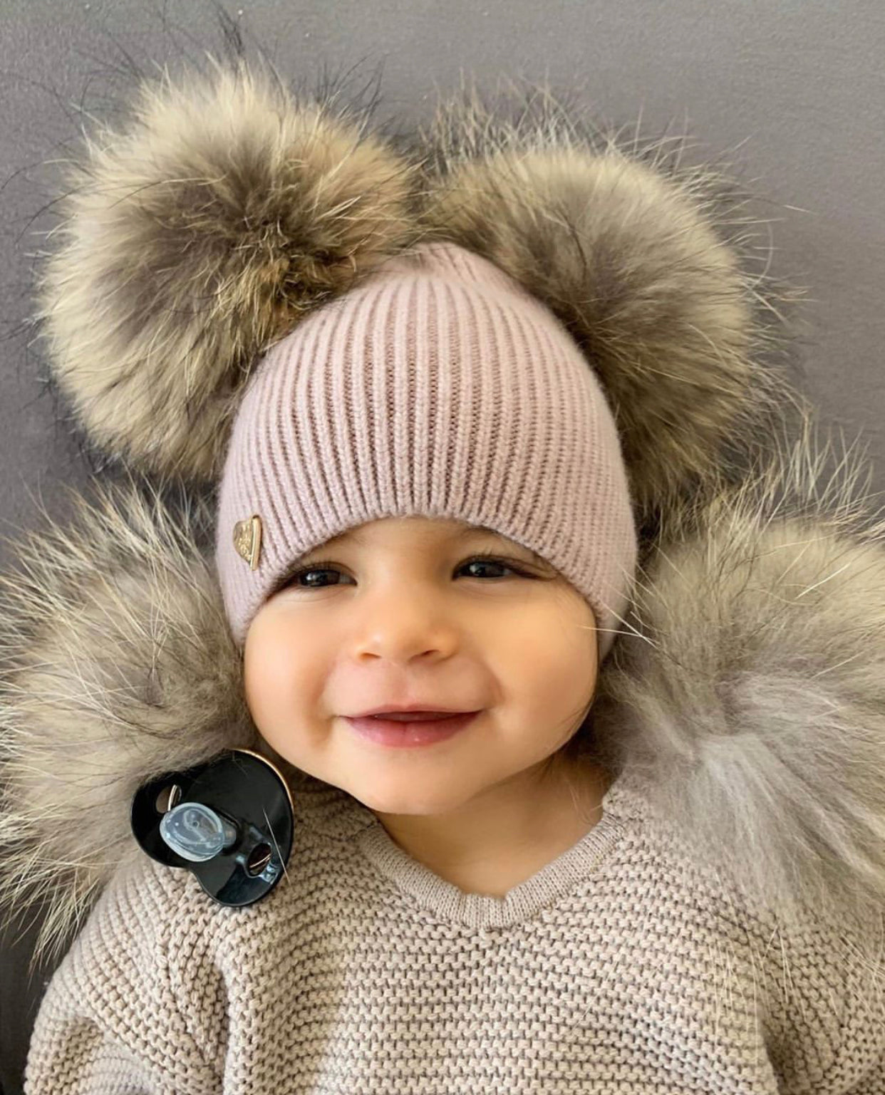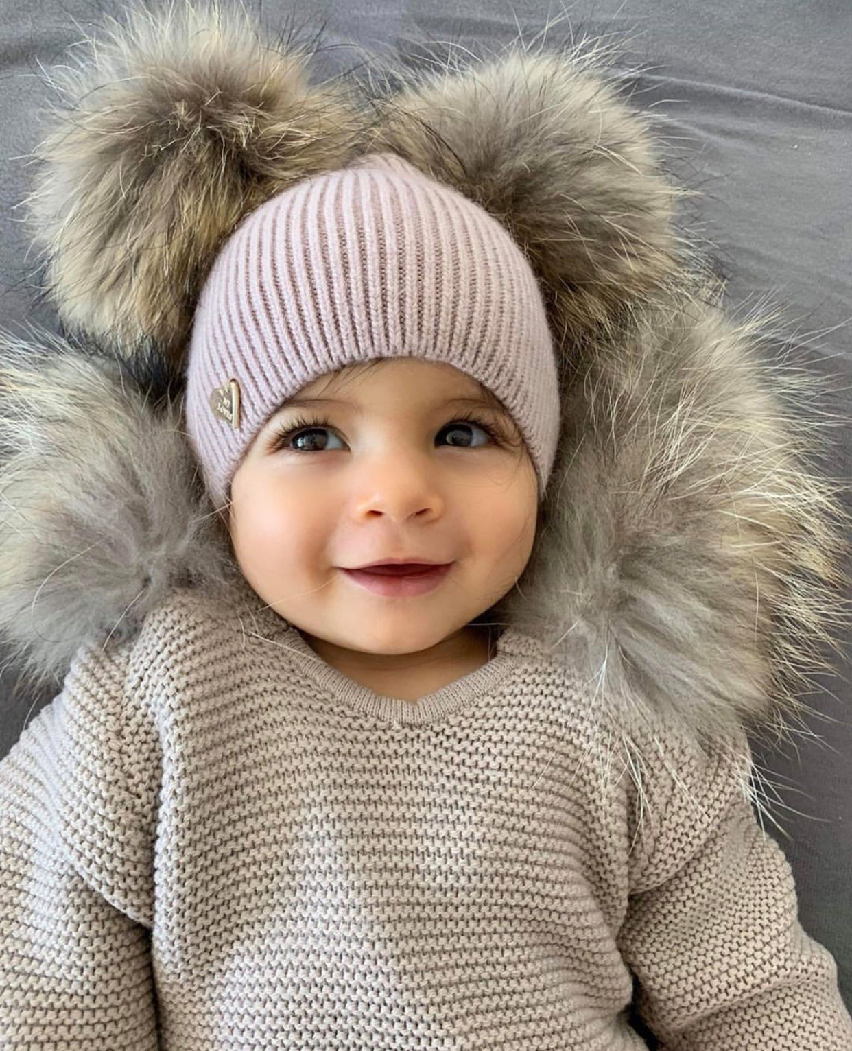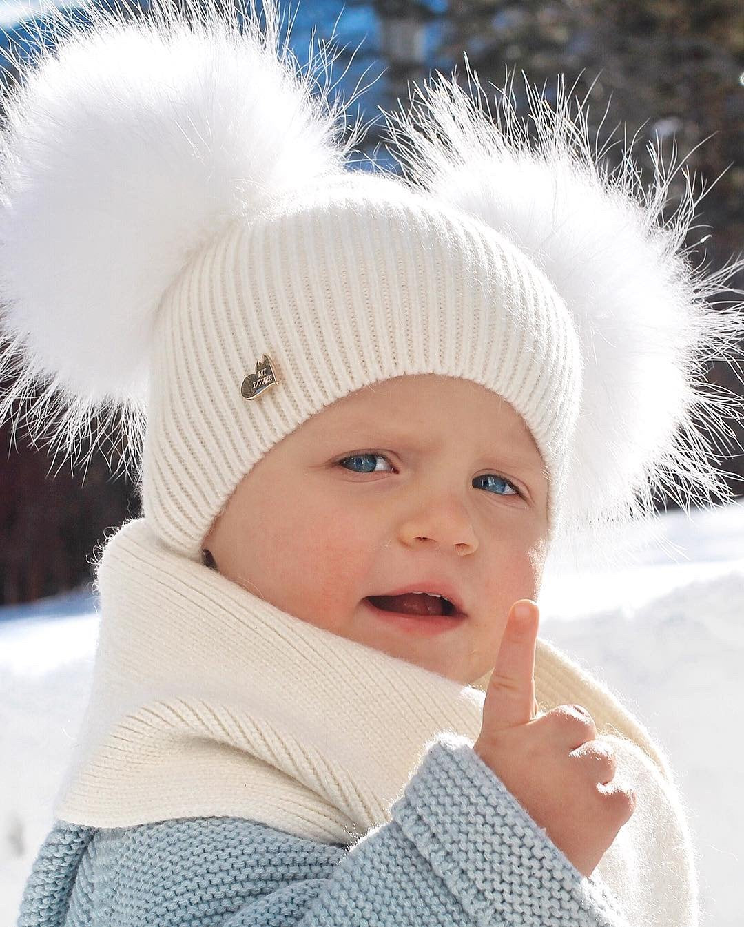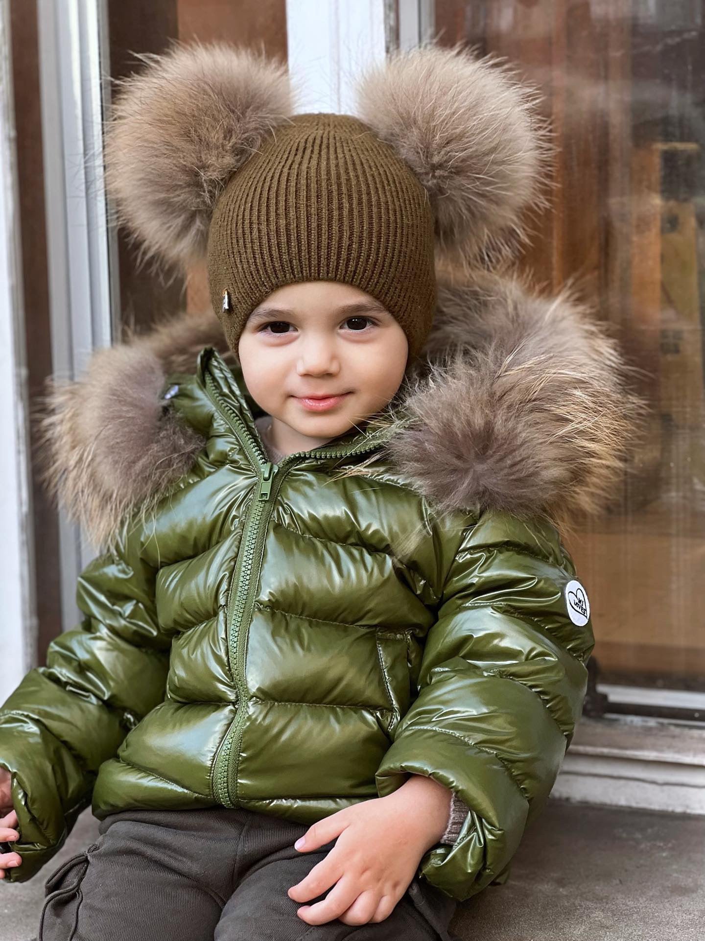 MI LOVES Signature Kids Angora Double pompom hat .Super Soft and warm ,perfect for winter days.