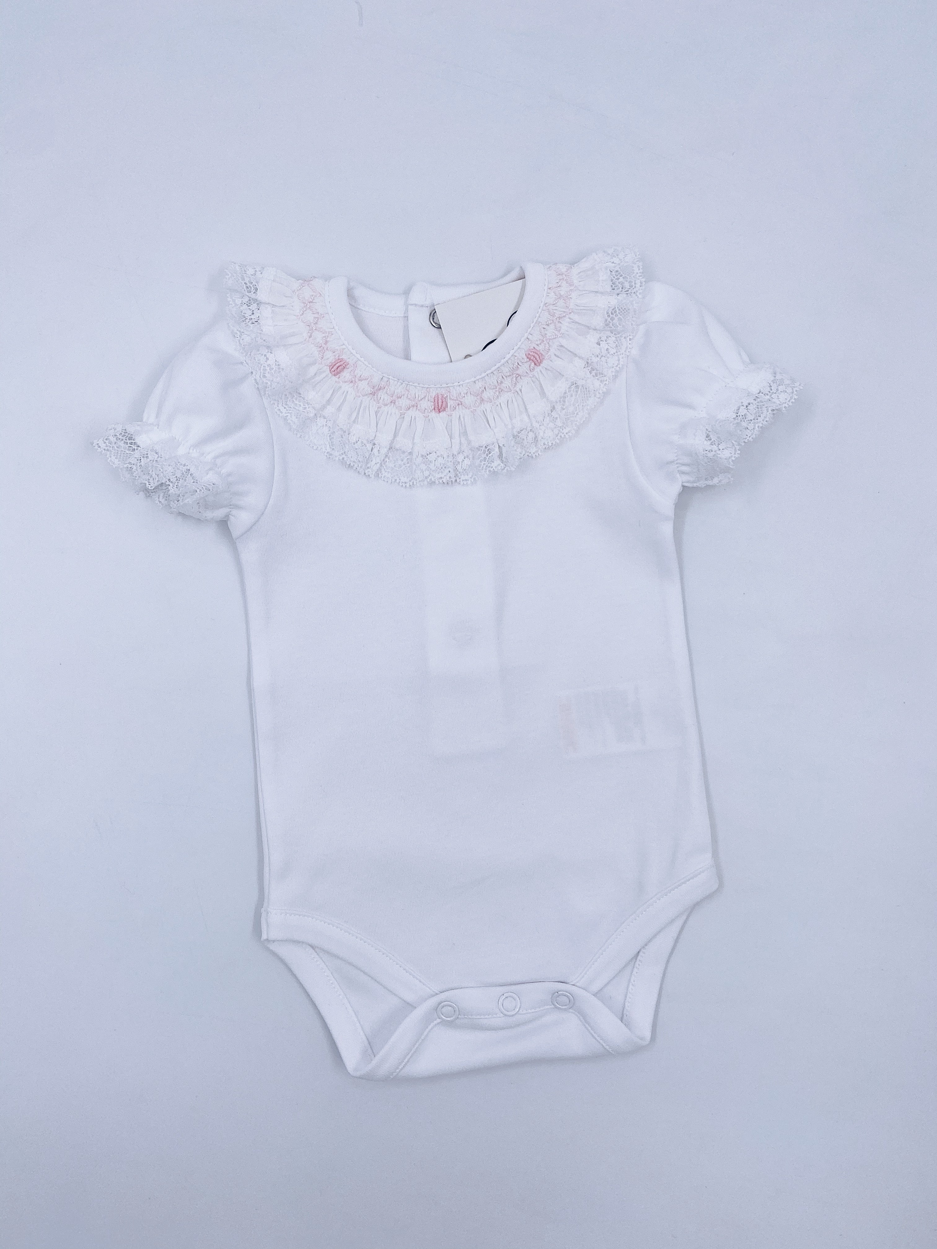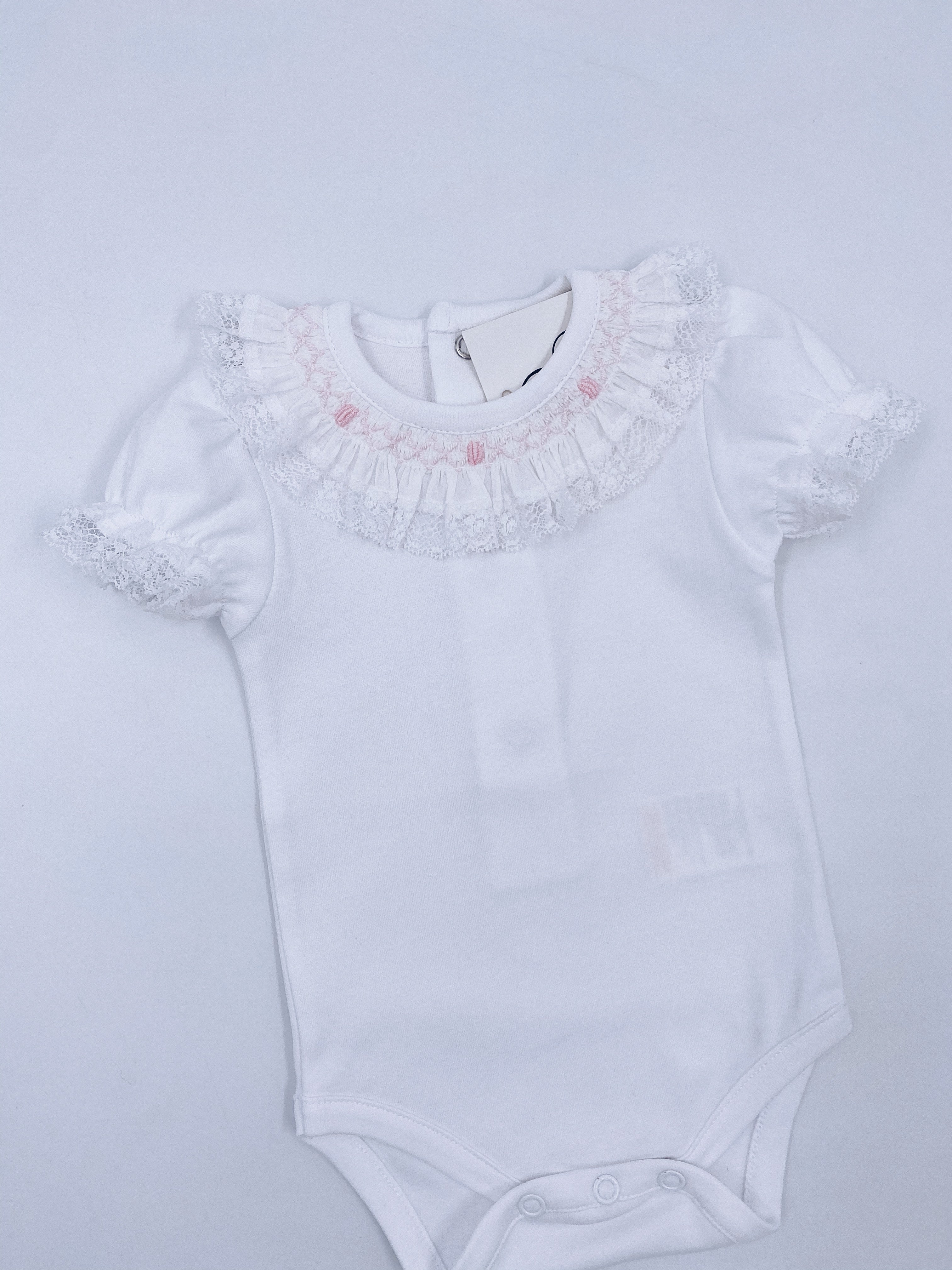White Short sleeves bodysuit with Smoking details on the neck.