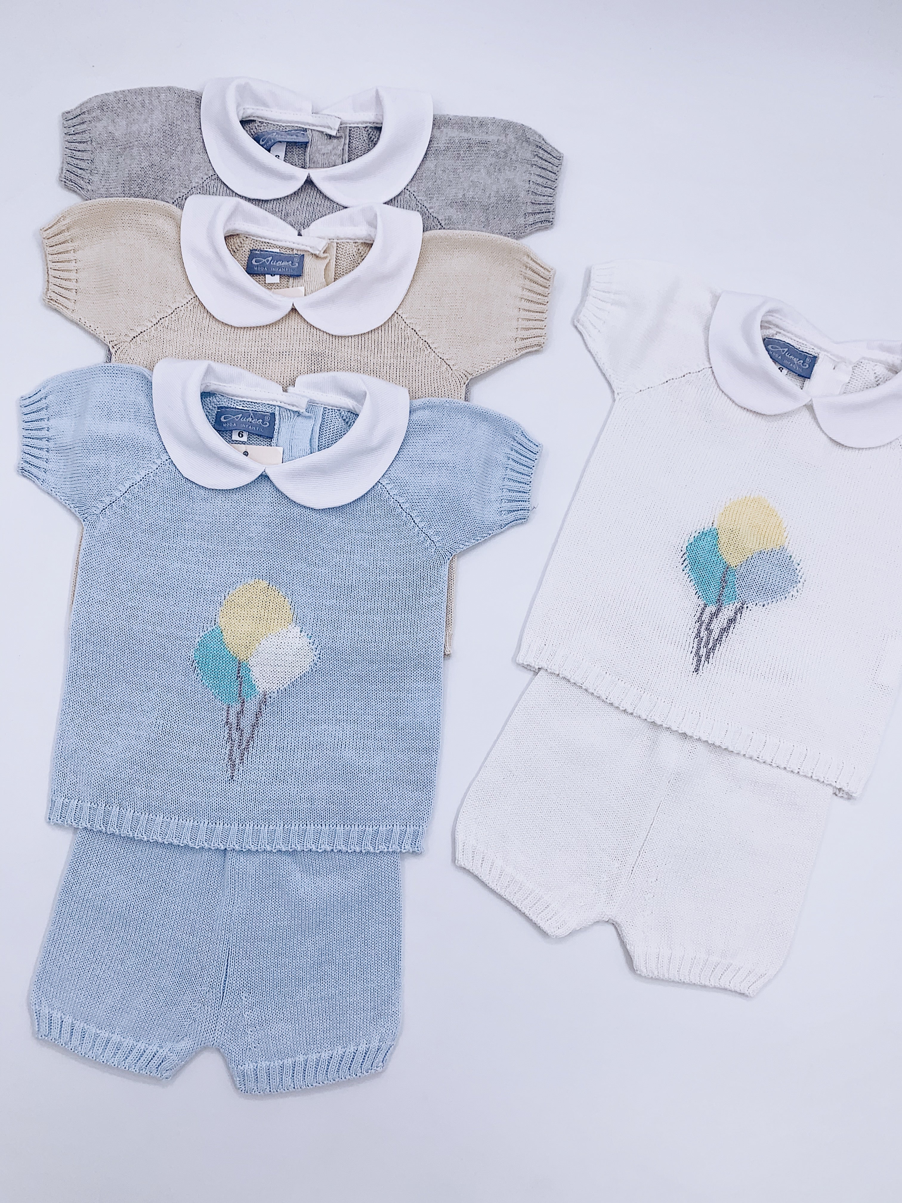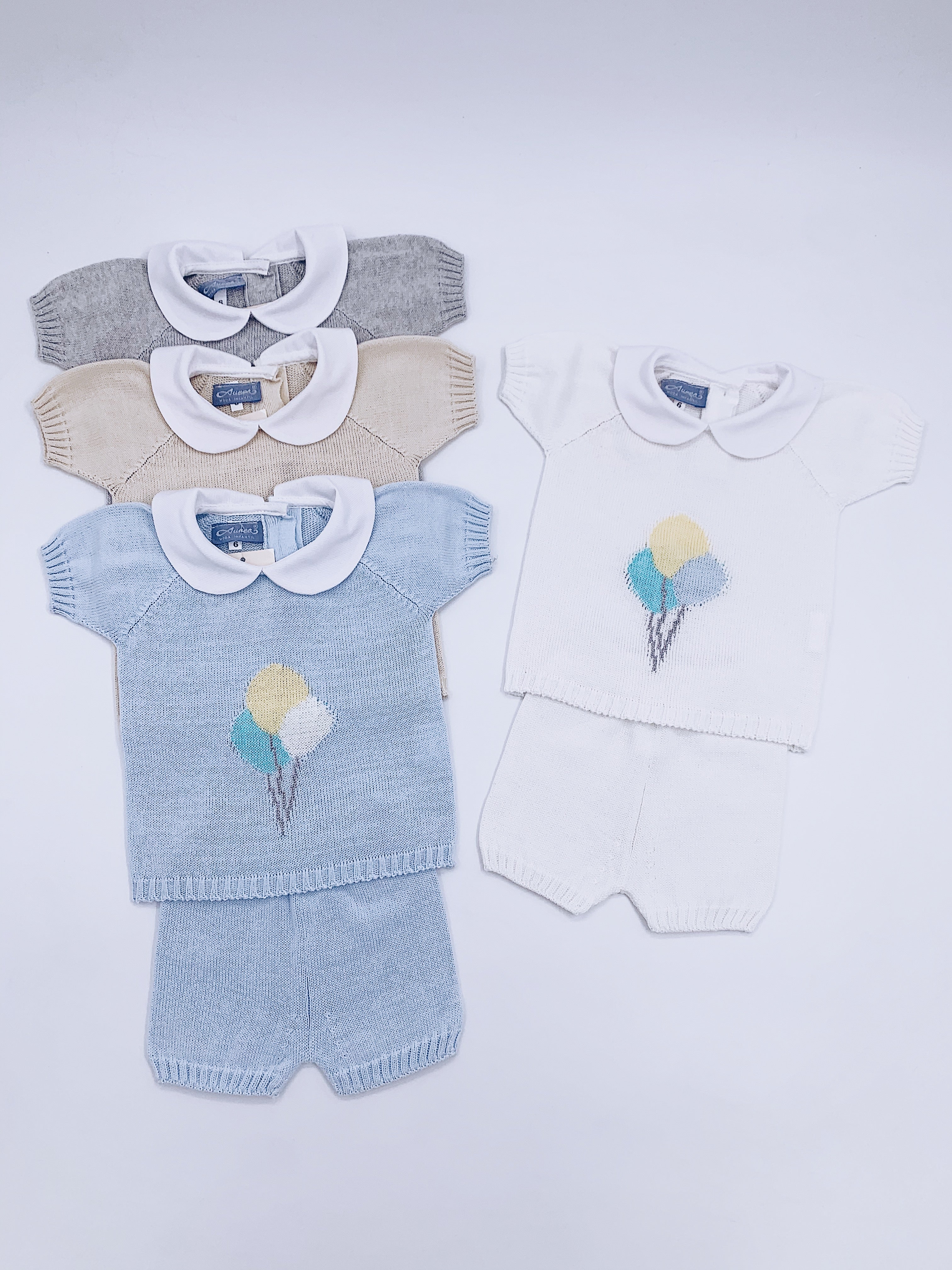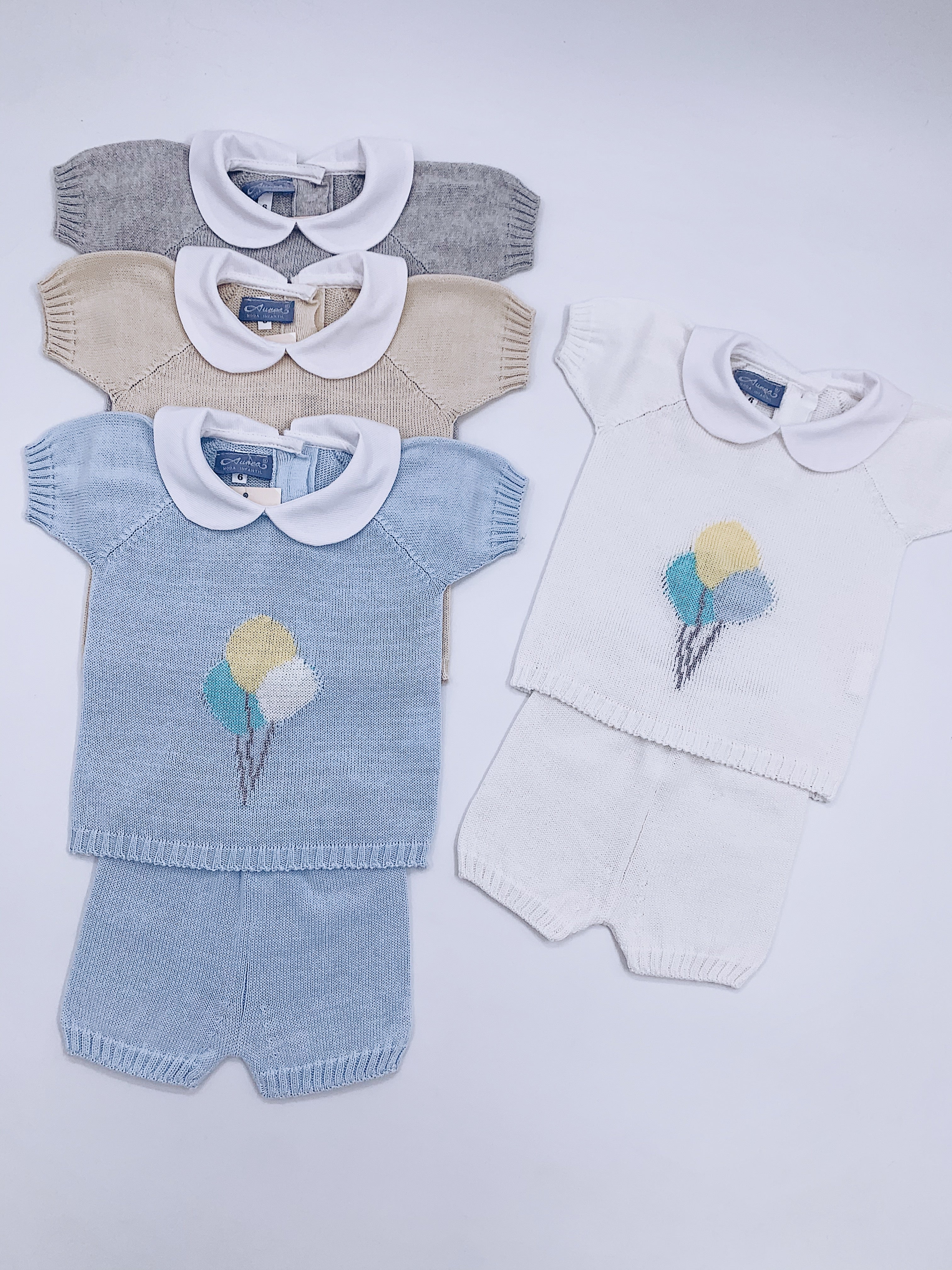 Fine knit Summer set with Balloons details and Peter Pen collar.