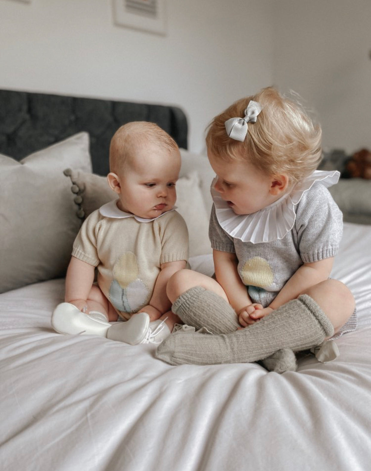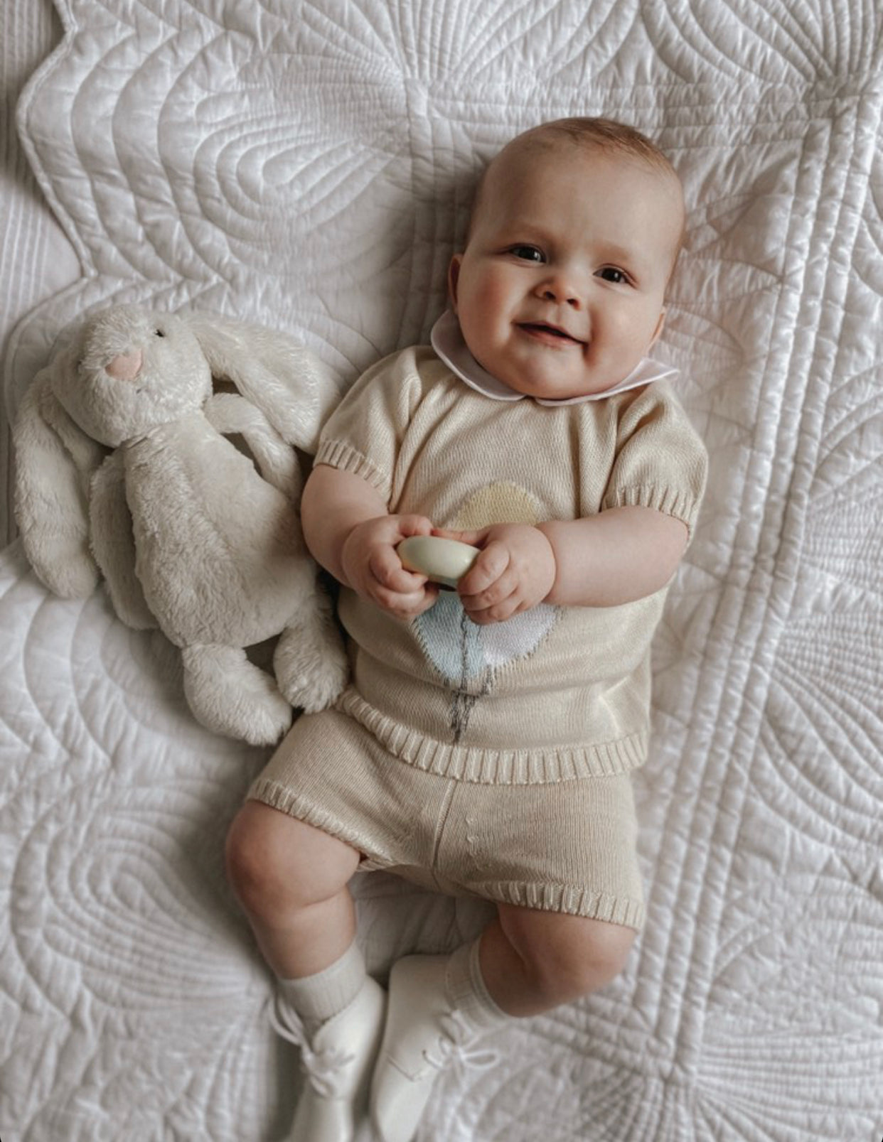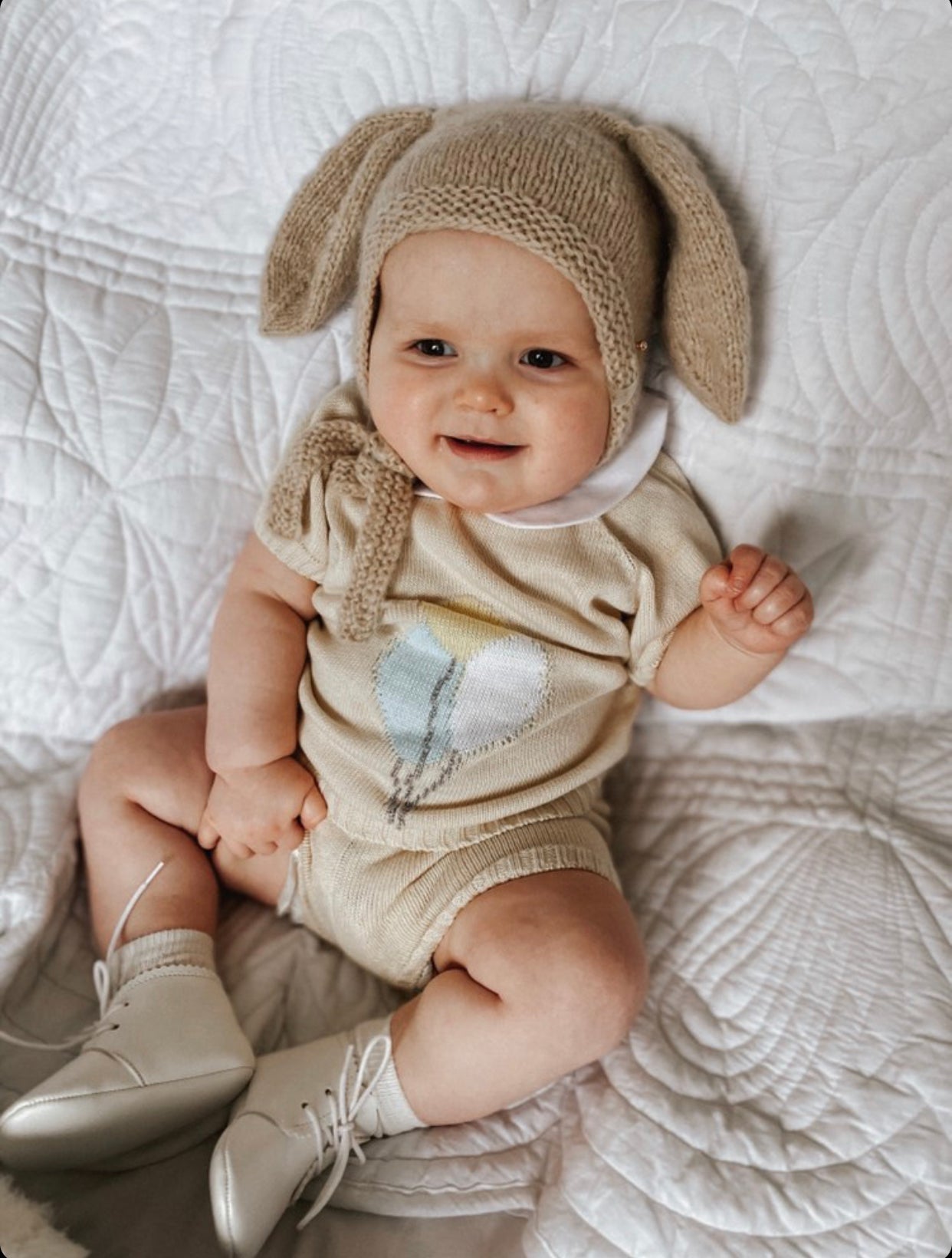 Fine knit Summer set with Balloons details and Peter Pen collar.