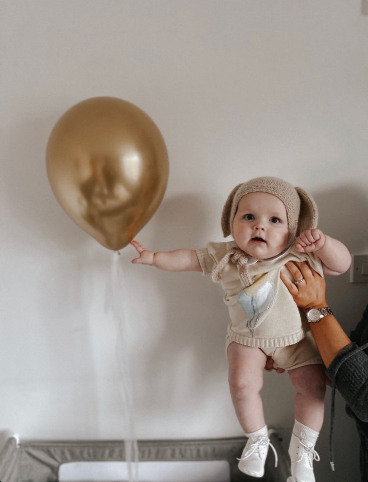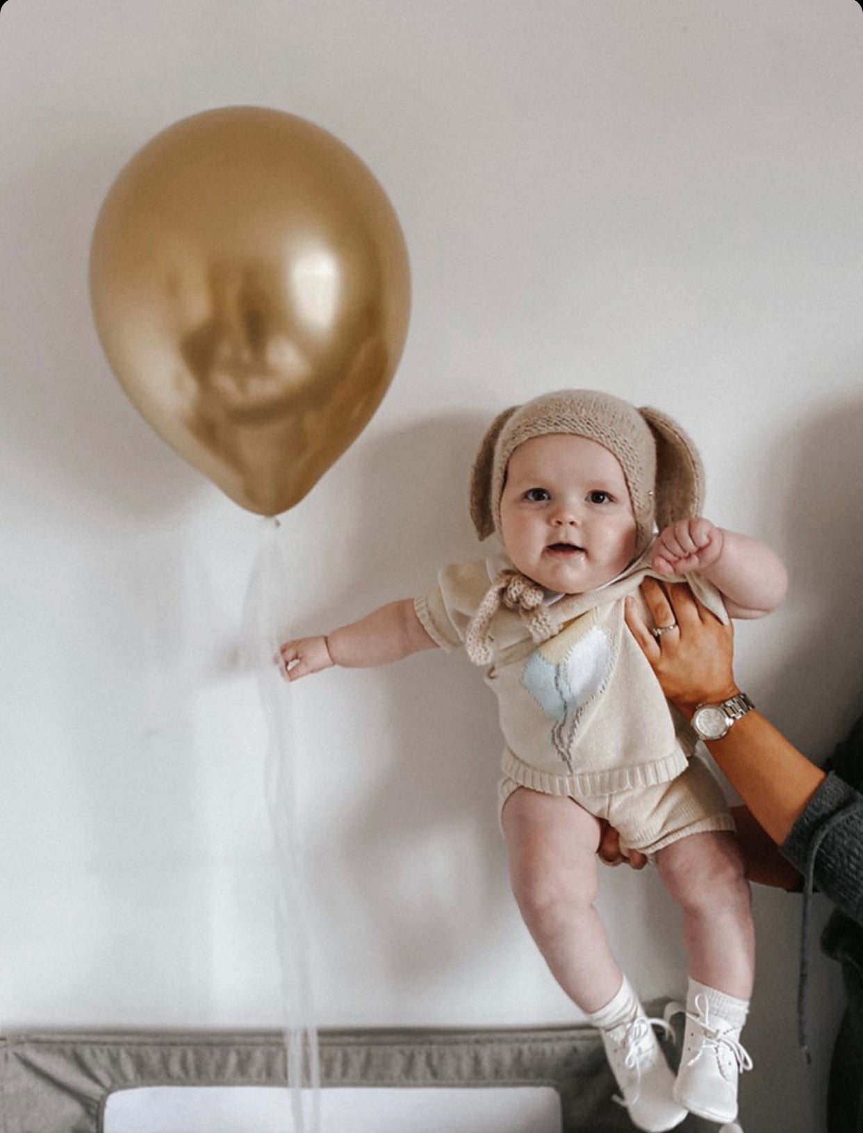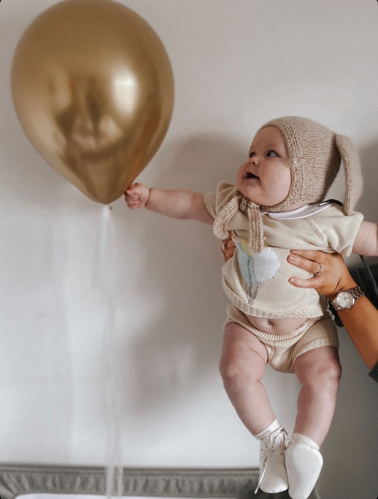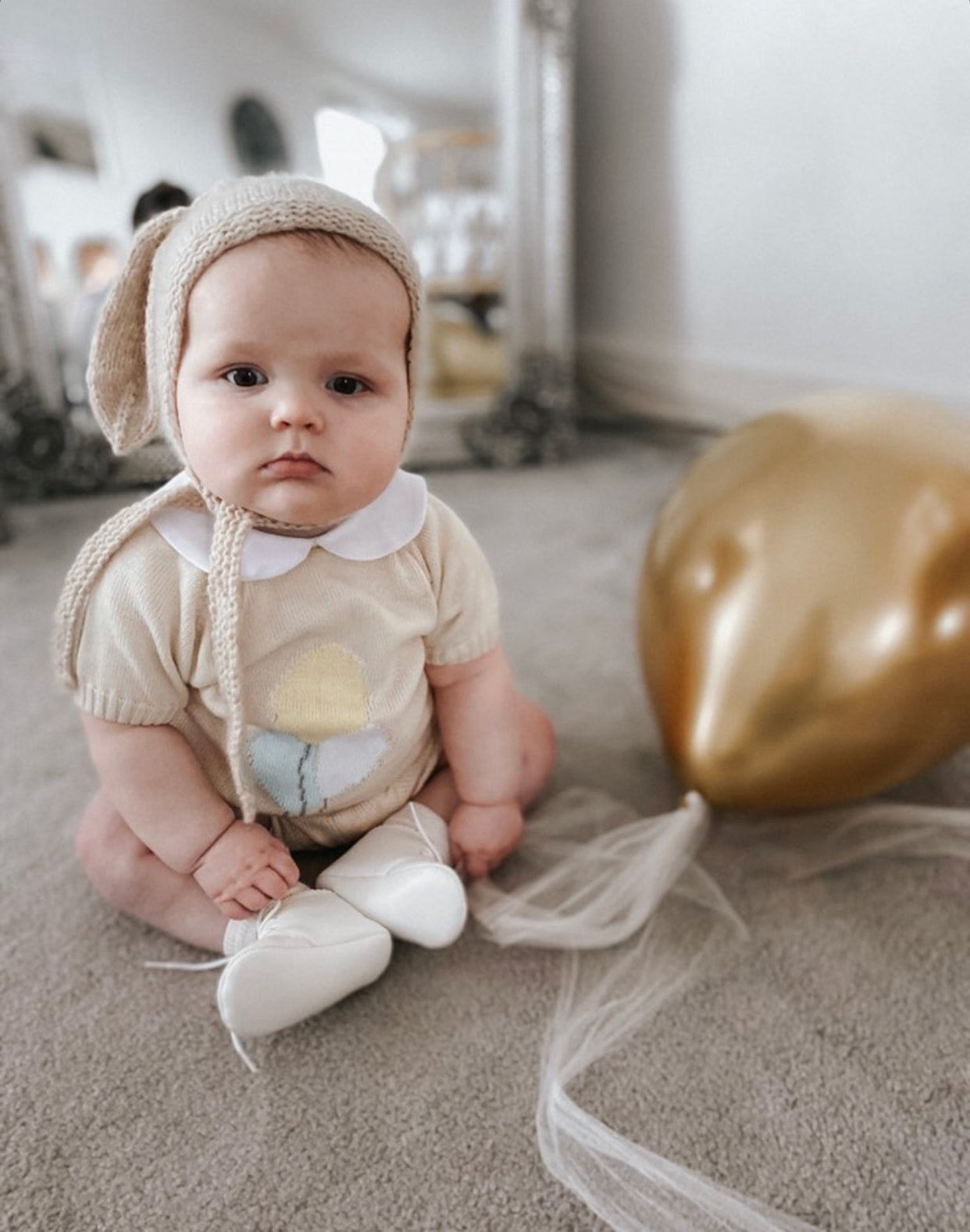 Fine knit summer set with Balloons details and Peter Pan collar.